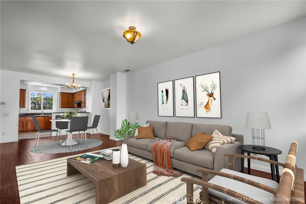 Discover the perfect blend of convenience and comfort in this stunning 3 bedroom, 3.5 bathroom home featuring 1847 sf in the gated Bella Vita Community! Ideally situated near a high school, shopping centers, restaurants, grocery stores, and easy freeway access, this home is a true gem featuring carpet in all bedrooms and a thoughtfully designed layout across three levels. The first floor boasts a junior master suite with its own private bathroom and walk in closet, offering great space for guests or an office. The second floor is an entertainer’s dream, featuring an open concept living room with a cozy fireplace, an elegant dining area, and a modern kitchen with a stove, maple wood cabinets, tile flooring, granite counters, and stainless-steel appliances. This level also includes a private deck and a half bathroom conveniently located for guests. On the third floor, you will find two generously sized bedrooms including a primary suite complete with a pristine bathroom and a walk-in closet. This level also features double pane windows for superior noise reduction and temperature control along with a laundry closet including a washer and dryer. This beautifully maintained home in an unbeatable location will not last long on the market!