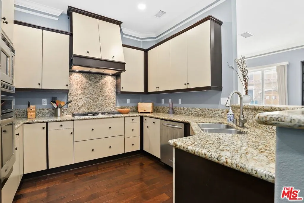 Welcome to the Vistas at Indian Oaks, where privacy and elevated living come together in one of the community's best-positioned end units. Tucked toward the rear, this 3-bedroom, ~1,910 sq. ft. residence offers a quiet setting with open hill views and a true sense of separation. Inside, the layout is open and well-proportioned, with 9-foot ceilings, a central fireplace, and natural light coming through oversized dual-pane windows. Thoughtful details like crown molding, built-ins, and recessed lighting give the home a polished, finished feel without trying too hard. The kitchen is functional and cleanly designed, featuring granite countertops, custom cabinetry, stainless steel appliances, and a 5-burner gas range. It connects seamlessly to both a casual dining area and a private patio, creating an easy indoor-outdoor flow.Upstairs, all three bedrooms are well-sized, including a primary suite that feels like a proper retreat with dual vanities, a walk-in shower, and a soaking tub. A second-floor laundry room adds convenience where it matters. Additional highlights include a direct-access two-car garage and access to a community pool and spa with sweeping valley views. Located near the Chatsworth Nature Preserve, Stoney Point Park, and the Vineyards at Porter Ranch, this is a strong combination of privacy, access, and everyday livability.