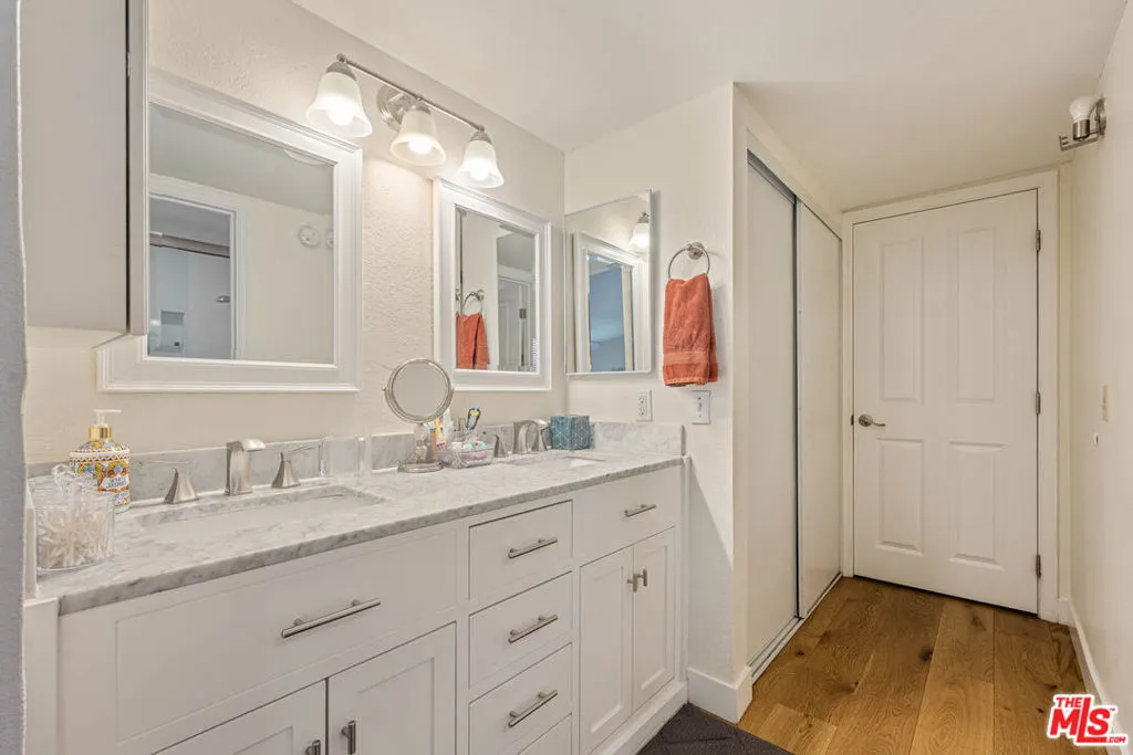 Rare 3 Bedroom 2.5 Bath condo opportunity just outside of the desirable Beverlywood HOA! This lovely unit in an amenity-filled building has it all, starting with a spacious Living Room that features a gas fireplace for extra charm, and leads you to the patio that spans from the Living Room down to the Dining Room, both of which have sliding doors, making outdoor access easy. The home's kitchen features stainless steel appliances, granite counters and plenty of storage! The Primary Bedroom features two closets and a Primary Bathroom with double vanity sinks. The 2 Secondary Bedrooms share the convenient hall Bathroom. The unit additionally features new hardwood floors, electric car charger, a powder room and extra closets, where buyer can install their own Washer/Dryer. Amenities in the building include pool, sauna exercise room, library, meeting room, secure garage and Earthquake Insurance. Just down the road from the wonderful shops, cafes, grocery stores and shops of Beverly Drive, yet 1 block from the quiet Beverlywood neighborhood, this conveniently located unit is not one to miss! Call/text/email LA1 for showings.