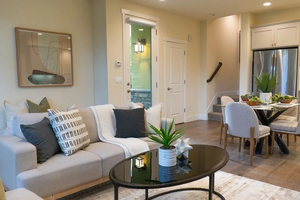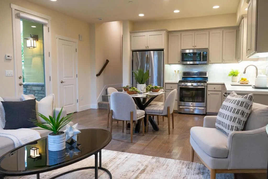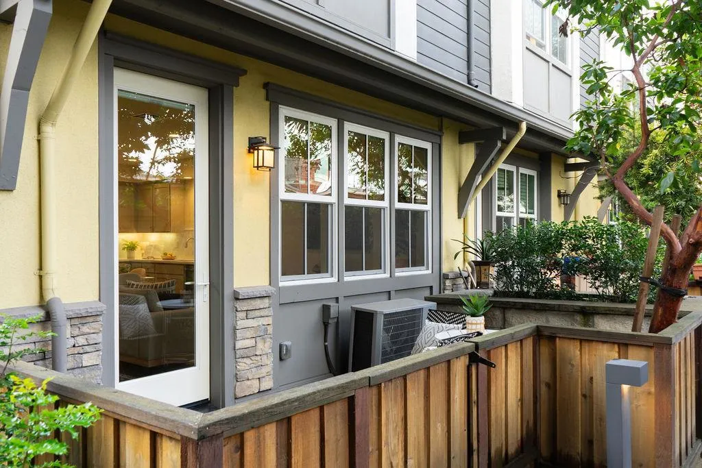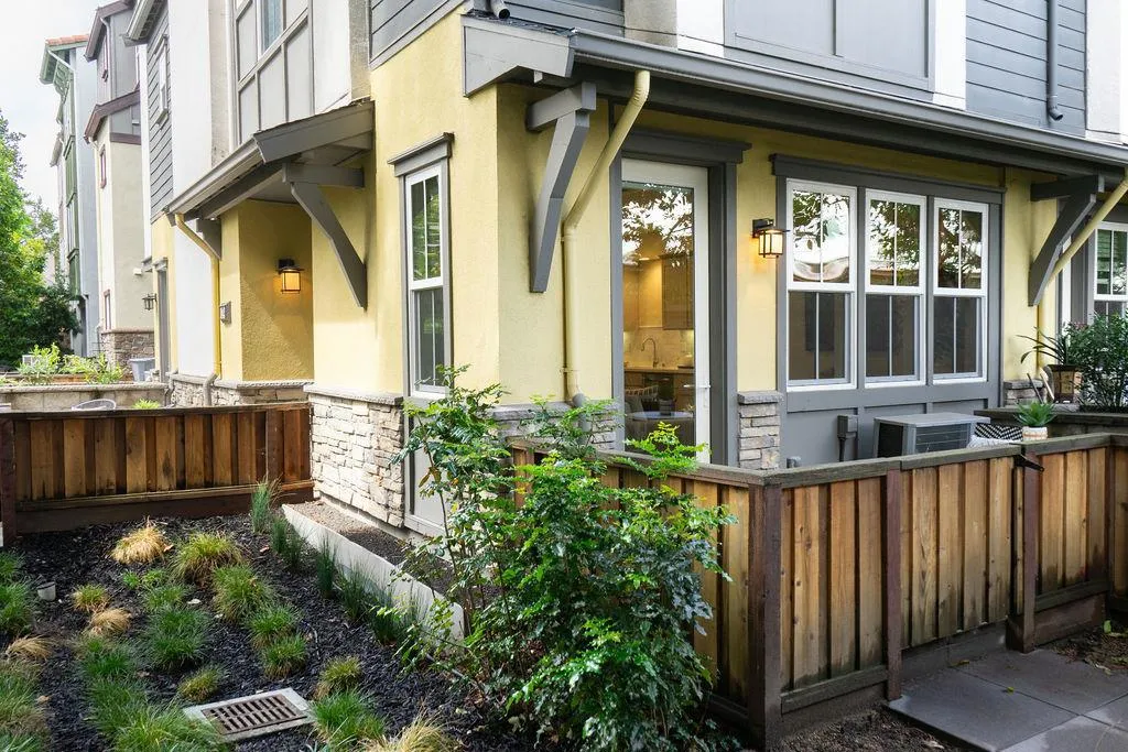 Located at the rear of the community at Midtown Place in San Mateo, this corner model contemporary townhome offers the utmost in privacy and tranquility. Enjoy a graciously sized gated landscaped patio as you enter into the open concept floor plan with living area, dining and kitchen perfectly arranged for entertaining as well as everyday living. The kitchen offers high quality G.E. Profile appliances including gas range/oven, dishwasher, and microwave, stylish shaker style cabinetry with soft close drawers, quartz counter with full tile backsplash. A second gated landscaped patio is accessible from the living area. The second level offers a full bathroom and two bedrooms, one with a walk in closet. The owner's suite and laundry occupy the entire third level. This well sized private suite has plenty of windows, a spa-like bathroom and large walk in closet. Enjoy being walking distance to Caltrain, and all that Downtown San Mateo offers, as well as minutes to SFO and everything else on the magnificent San Francisco Peninsula!