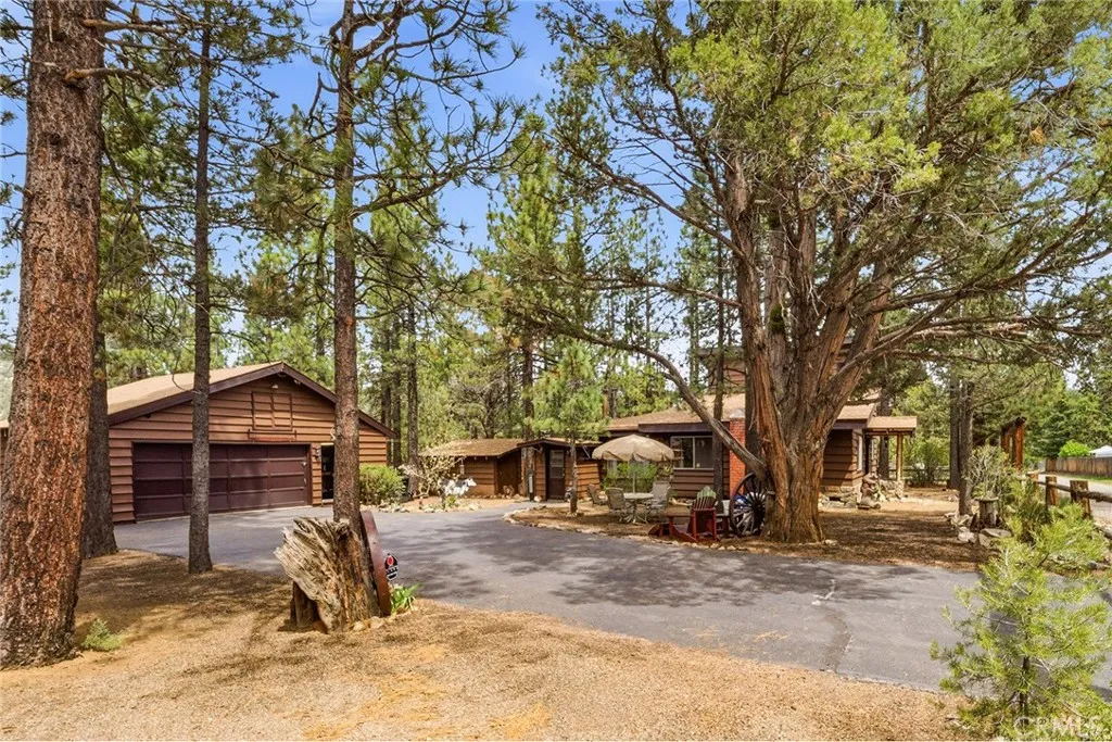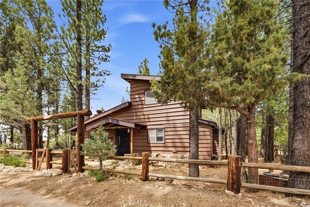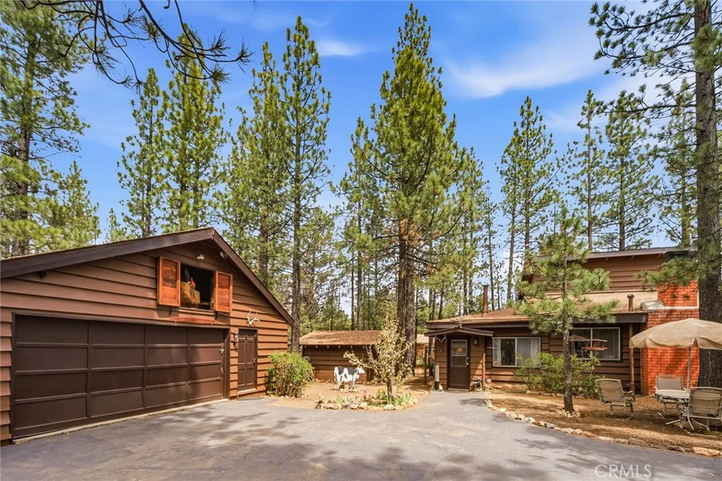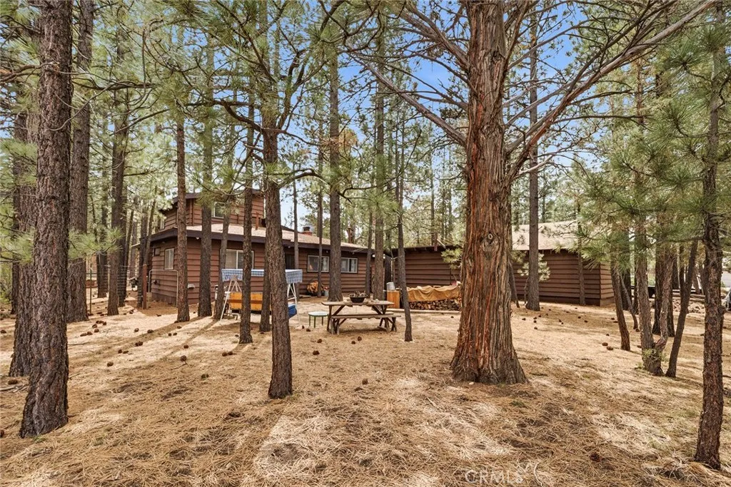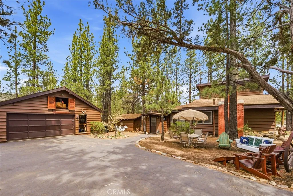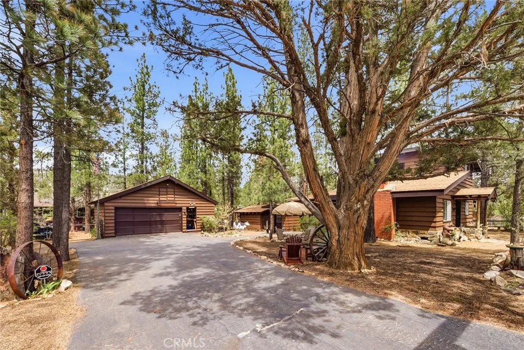 Welcome to this whimsical, traditional Bear Bear Home on an expansive flat. The lot that the house sits on is corner to corner, incorporating much of the entire block. The spacious great room features lots of light from the many windows and a large wood burning fireplace that sets the tone for that cabin feeling. This 3 bedroom, 2 bath home also has a den or family room that is entered by the side door with a vestibule for those snow covered boots and jackets. The home comes fully furnished, including all appliances and the antique stove in the kitchen which was purchased when the owners built the house in 1963. The oversized two car garage was built at the same time along with a separate work shop. Also included in the sale is snow play equipment, bikes and numerous power and mechanic tools. There are two bedrooms downstairs. The primary bedroom has a separate bathroom and the second bedroom utilizes the hallway bathroom. The upstairs bedroom has been furnished as a dormitory style room that was able to accommodate all of the grandchildren. It could easily be divided into two bedrooms or office and bedroom. As the house sits close to the corner, the effect is a sweeping lot with several uses. There is an area next to the garage for a boat or motor home. There is also a small out building that is used for storage. The lot is completely fenced with over 100 pine trees which creates the feeling of a private forest and adds to the privacy. It's just a short drive to the Lake Erwin recreational area, Snow Summit and Big Bear Lake. And the lake is so full and beautiful this time of year! This is an ideal spot to enjoy all the activities of this beautiful area. Must see to appreciate all of the charming details of this home.