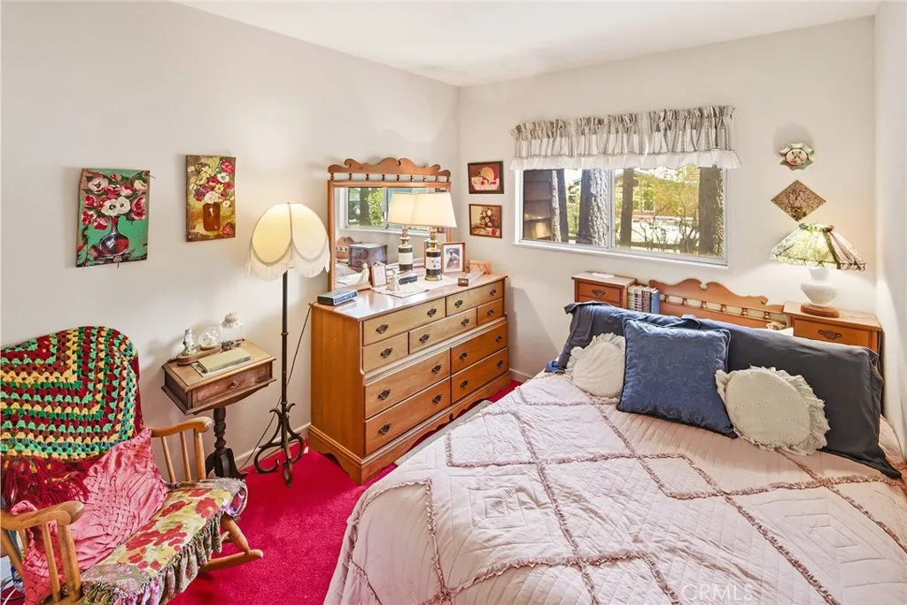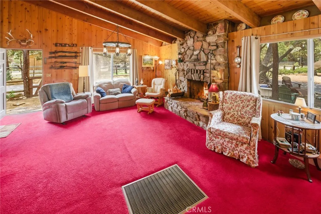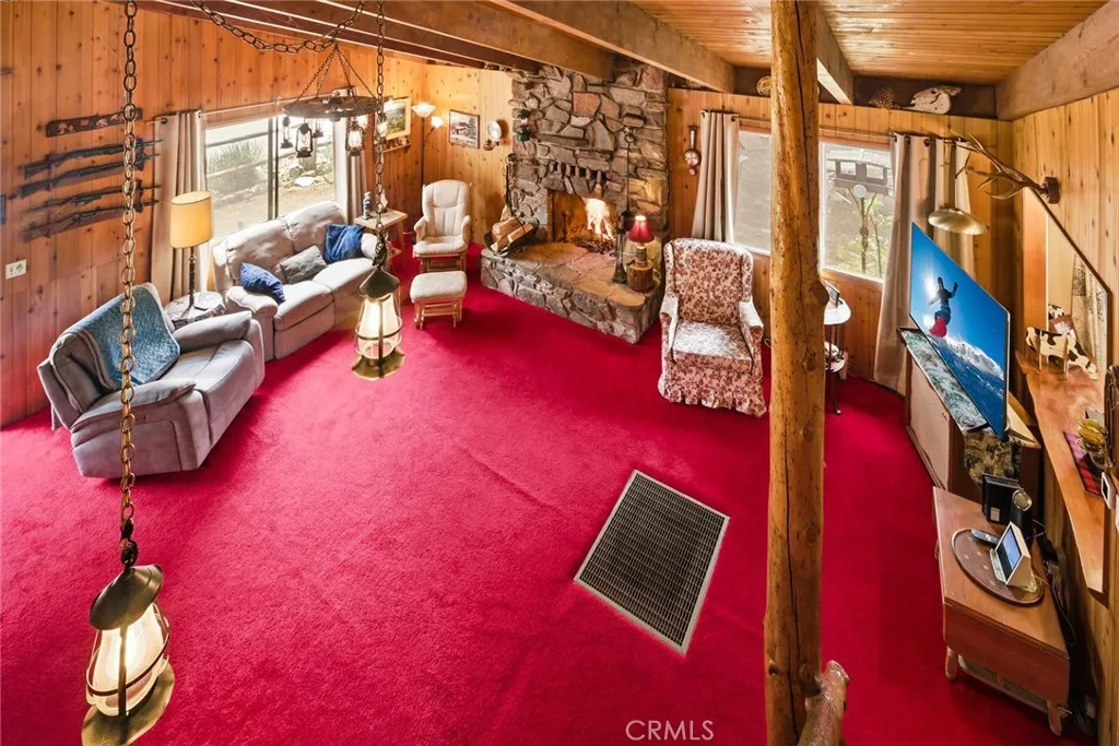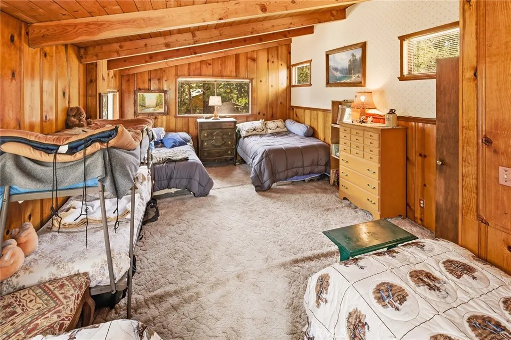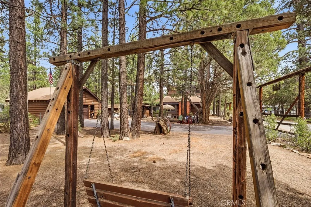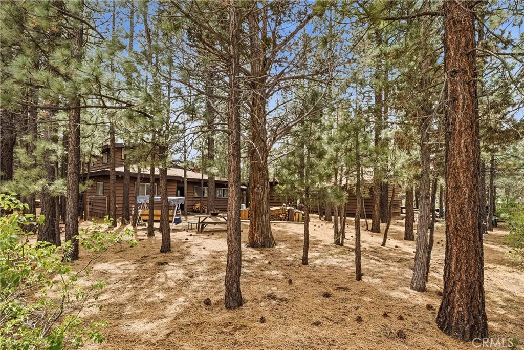 Welcome to this whimsical, traditional Bear Bear Home on an expansive flat. The lot that the house sits on is corner to corner, incorporating much of the entire block. The spacious great room features lots of light from the many windows and a large wood burning fireplace that sets the tone for that cabin feeling. This 3 bedroom, 2 bath home also has a den or family room that is entered by the side door with a vestibule for those snow covered boots and jackets. The home comes fully furnished, including all appliances and the antique stove in the kitchen which was purchased when the owners built the house in 1963. The oversized two car garage was built at the same time along with a separate work shop. Also included in the sale is snow play equipment, bikes and numerous power and mechanic tools. There are two bedrooms downstairs. The primary bedroom has a separate bathroom and the second bedroom utilizes the hallway bathroom. The upstairs bedroom has been furnished as a dormitory style room that was able to accommodate all of the grandchildren. It could easily be divided into two bedrooms or office and bedroom. As the house sits close to the corner, the effect is a sweeping lot with several uses. There is an area next to the garage for a boat or motor home. There is also a small out building that is used for storage. The lot is completely fenced with over 100 pine trees which creates the feeling of a private forest and adds to the privacy. It's just a short drive to the Lake Erwin recreational area, Snow Summit and Big Bear Lake. And the lake is so full and beautiful this time of year! This is an ideal spot to enjoy all the activities of this beautiful area. Must see to appreciate all of the charming details of this home.