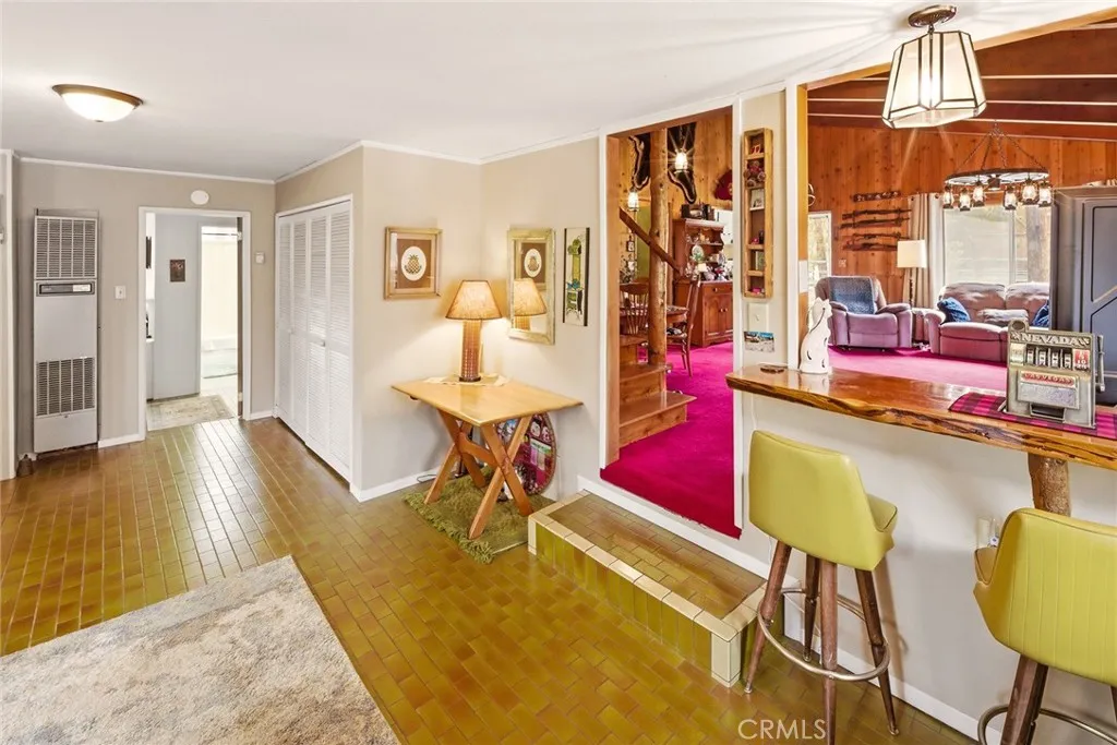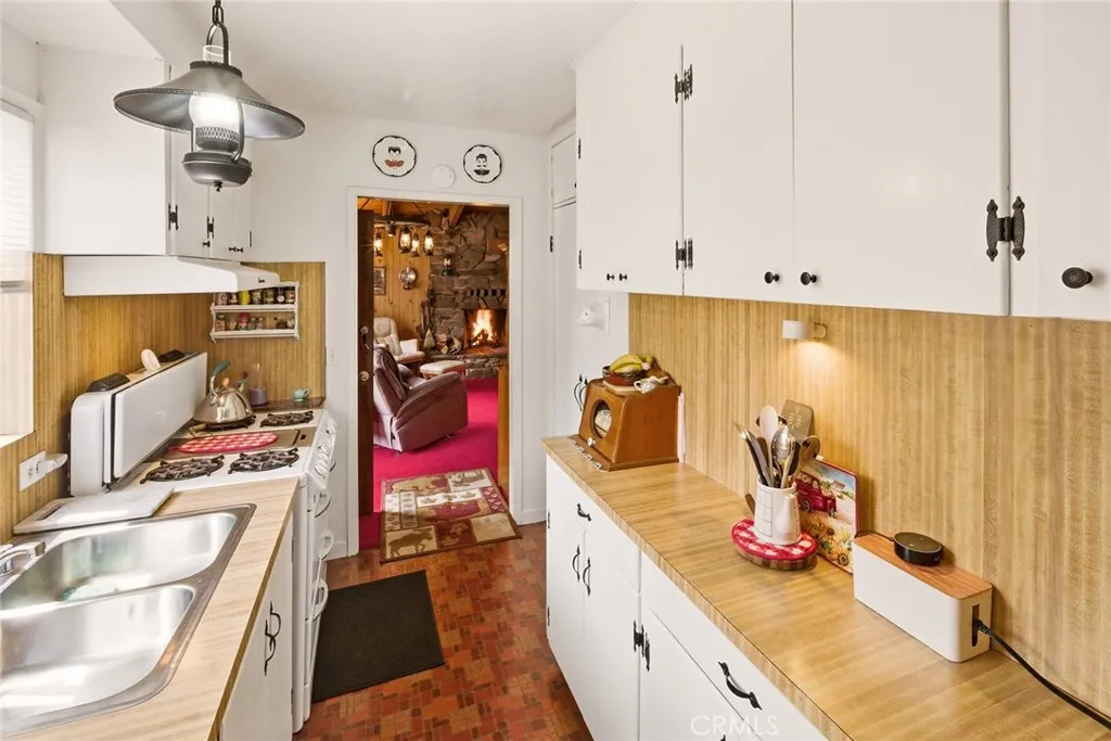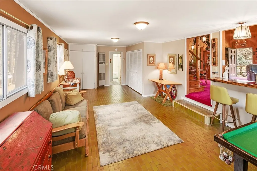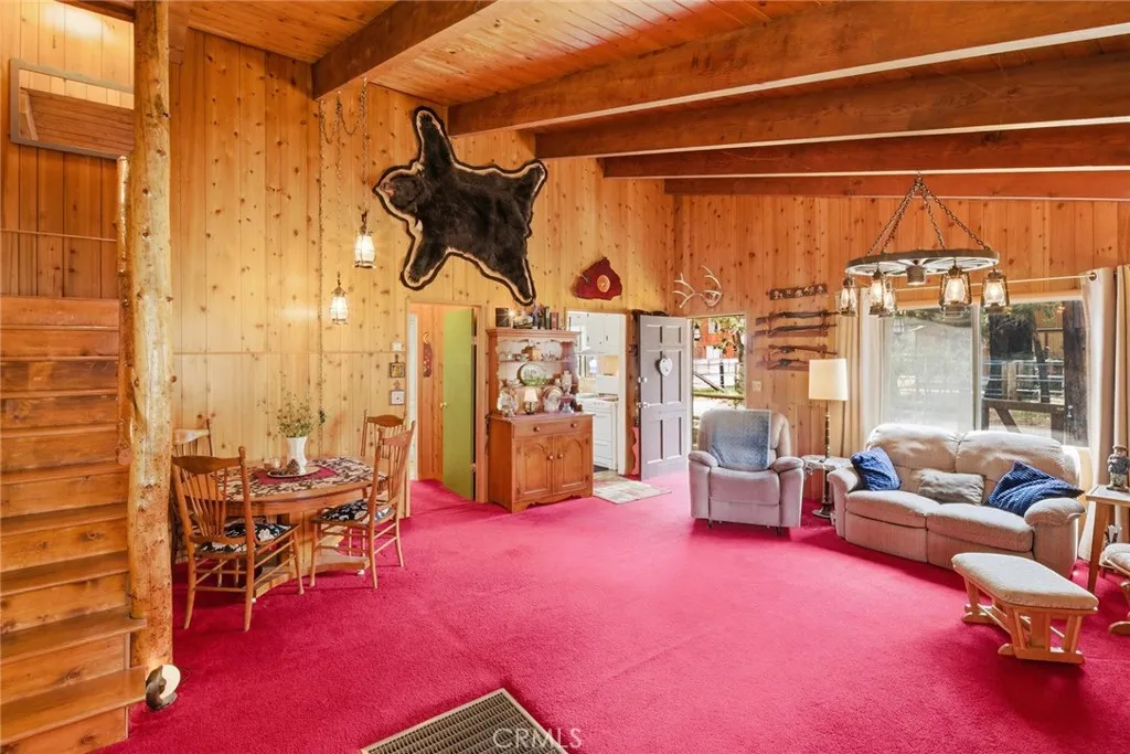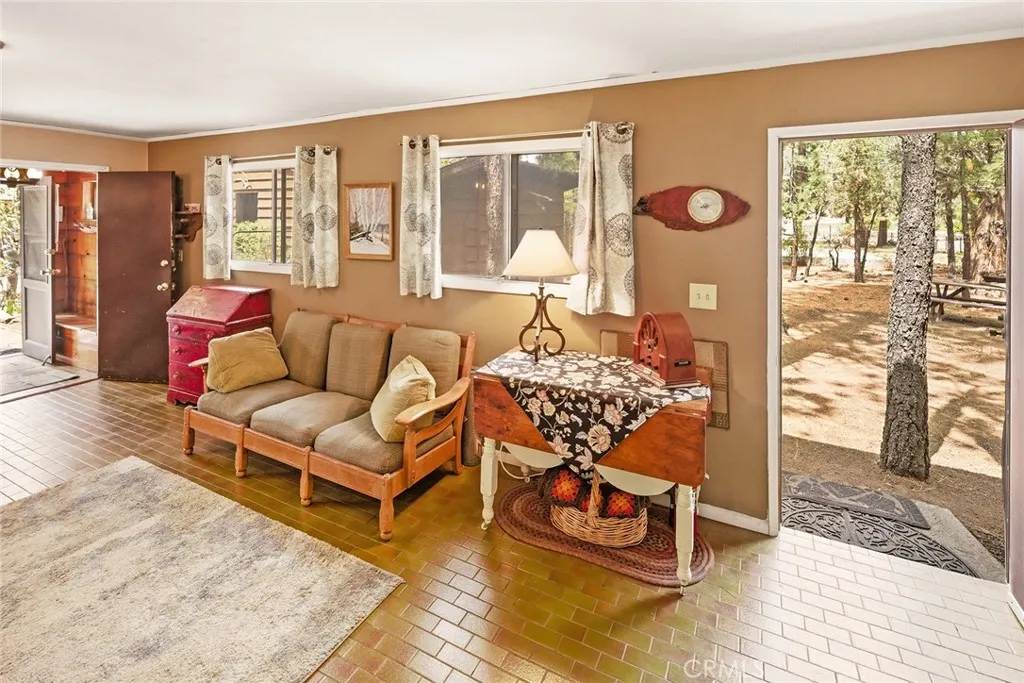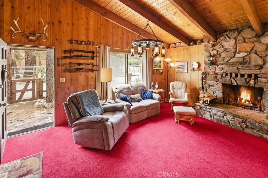 Welcome to this whimsical, traditional Bear Bear Home on an expansive flat. The lot that the house sits on is corner to corner, incorporating much of the entire block. The spacious great room features lots of light from the many windows and a large wood burning fireplace that sets the tone for that cabin feeling. This 3 bedroom, 2 bath home also has a den or family room that is entered by the side door with a vestibule for those snow covered boots and jackets. The home comes fully furnished, including all appliances and the antique stove in the kitchen which was purchased when the owners built the house in 1963. The oversized two car garage was built at the same time along with a separate work shop. Also included in the sale is snow play equipment, bikes and numerous power and mechanic tools. There are two bedrooms downstairs. The primary bedroom has a separate bathroom and the second bedroom utilizes the hallway bathroom. The upstairs bedroom has been furnished as a dormitory style room that was able to accommodate all of the grandchildren. It could easily be divided into two bedrooms or office and bedroom. As the house sits close to the corner, the effect is a sweeping lot with several uses. There is an area next to the garage for a boat or motor home. There is also a small out building that is used for storage. The lot is completely fenced with over 100 pine trees which creates the feeling of a private forest and adds to the privacy. It's just a short drive to the Lake Erwin recreational area, Snow Summit and Big Bear Lake. And the lake is so full and beautiful this time of year! This is an ideal spot to enjoy all the activities of this beautiful area. Must see to appreciate all of the charming details of this home.