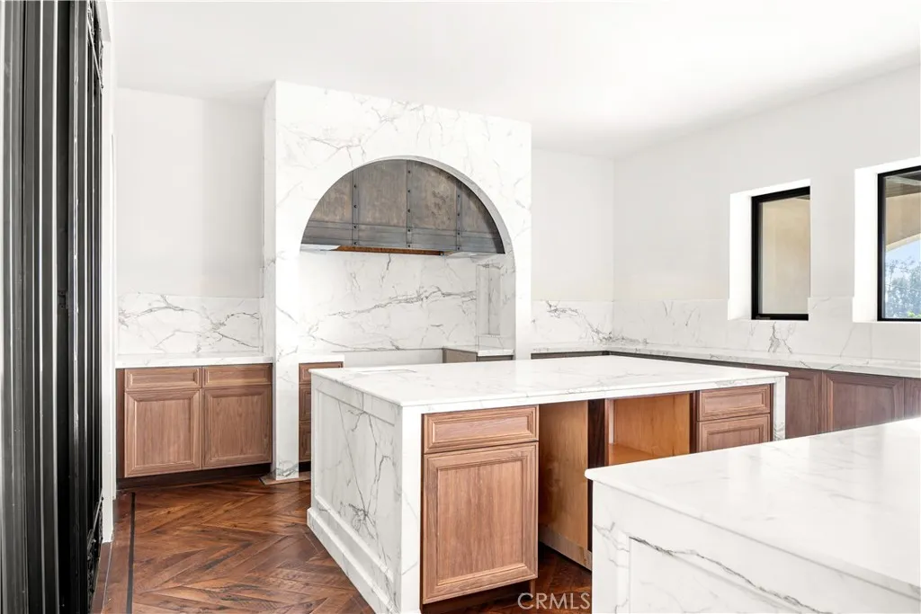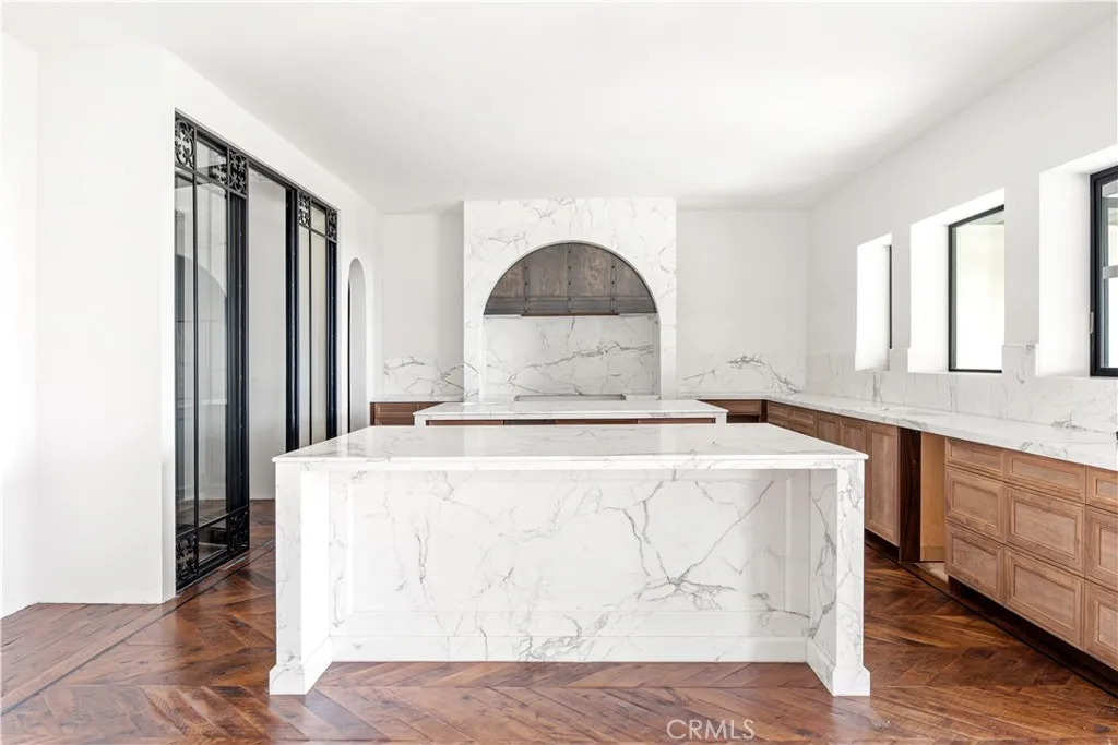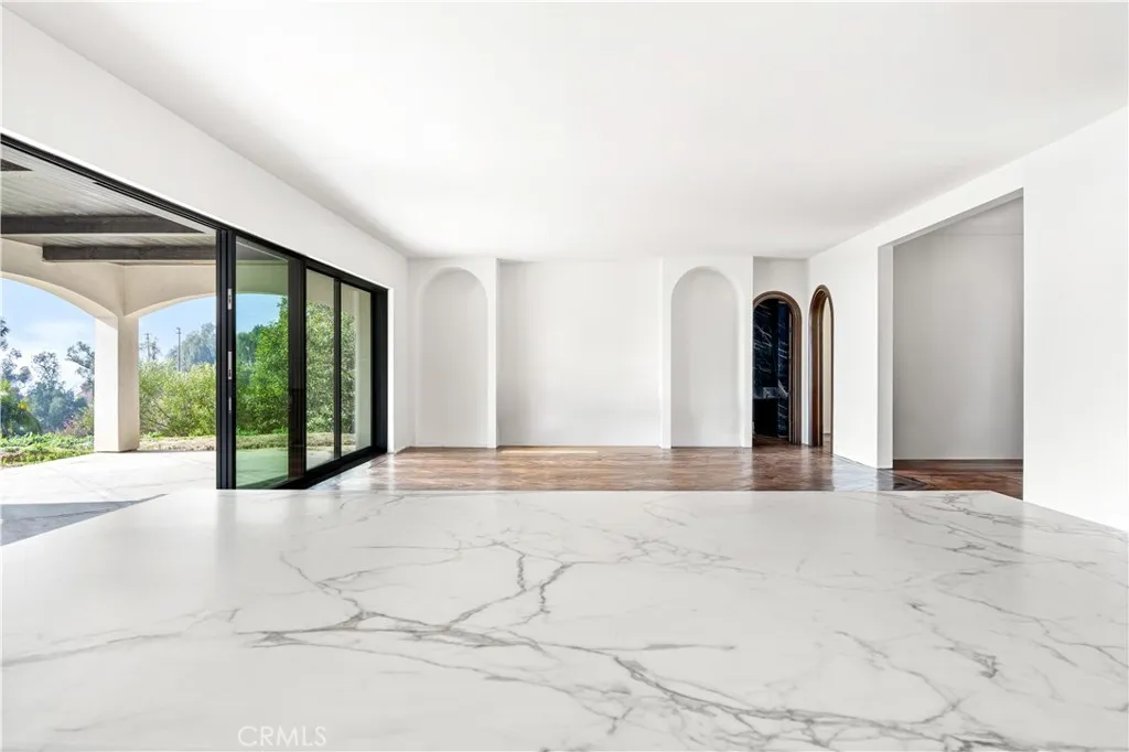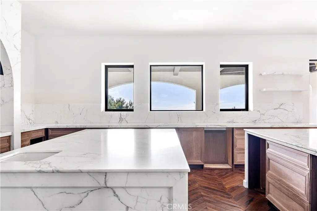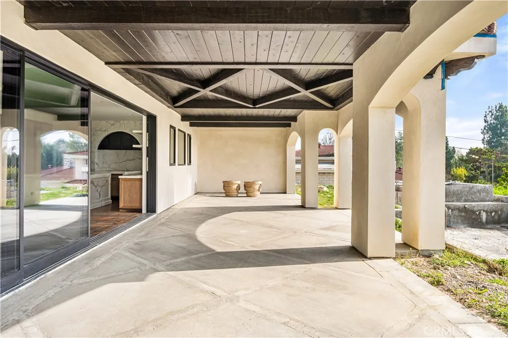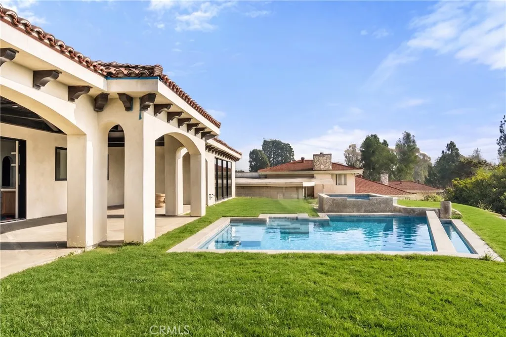 Rare new-construction luxury estate in highly sought-after Mar Vista Heights, Whittier, showcasing stunning Spanish Modern architecture blending timeless character with modern design. Situated on an 18,000+ sq ft lot, this exceptional residence offers approx. 4,602 sq ft of living space, including a beautifully designed outdoor patio. Nearly complete at 97%, allowing the opportunity to customize final landscaping and pool design. A dramatic 12-ft iron front door leads to a breathtaking arched entry with silver and gold leaf detailing and a custom marble lighting arch, setting a striking tone. Inside, soaring ceilings and an open-concept layout create a bright, seamless flow ideal for entertaining and everyday living. Features include 3 bedrooms, 3.5 baths, plus a versatile bonus room (4th bedroom/office/lounge). A formal dining room adds flexibility. The chef’s kitchen showcases walnut cabinetry, Italian finishes, dual marble islands, walk-in pantry, and a glass-enclosed wine room. The family room opens through expansive Fleetwood glass doors to panoramic views from Catalina Island to Downtown LA, delivering true indoor-outdoor living. Additional highlights include hardwood floors, marble bathrooms, spa-like primary suite, smart home system, central HVAC, and 2-car garage. A rare opportunity to own a nearly completed luxury home of this caliber in Whittier—schedule your private tour today.