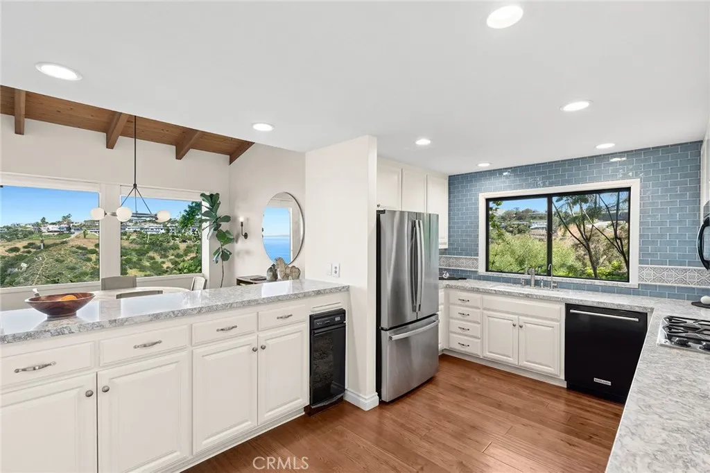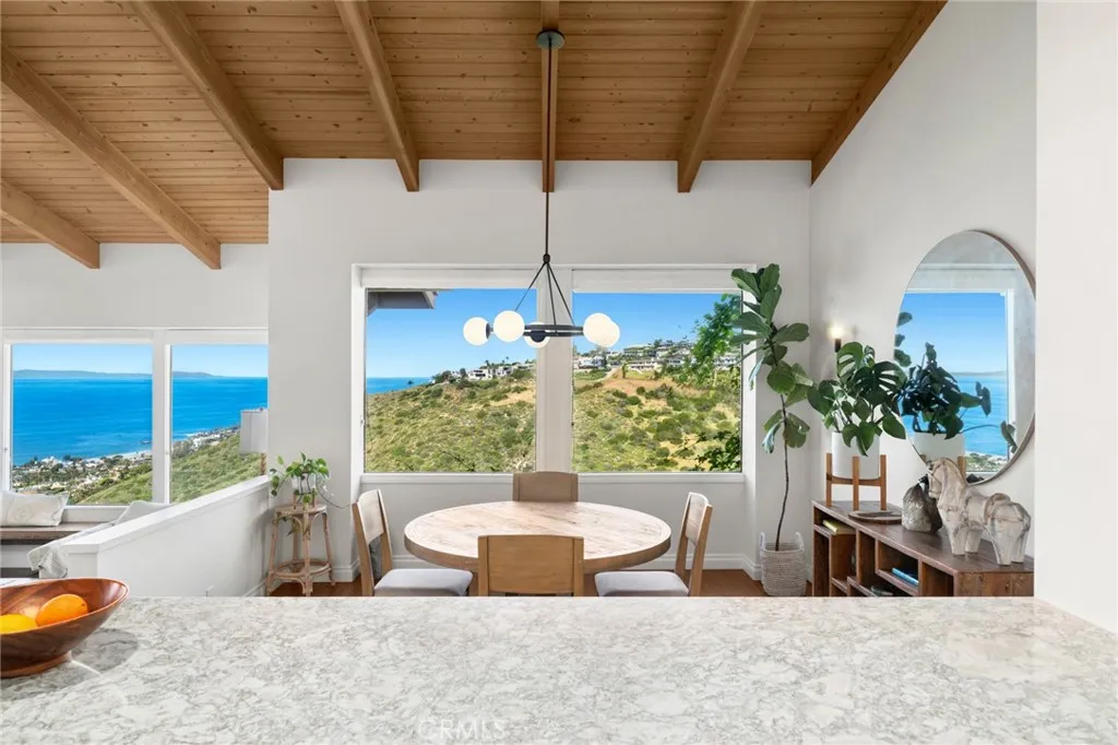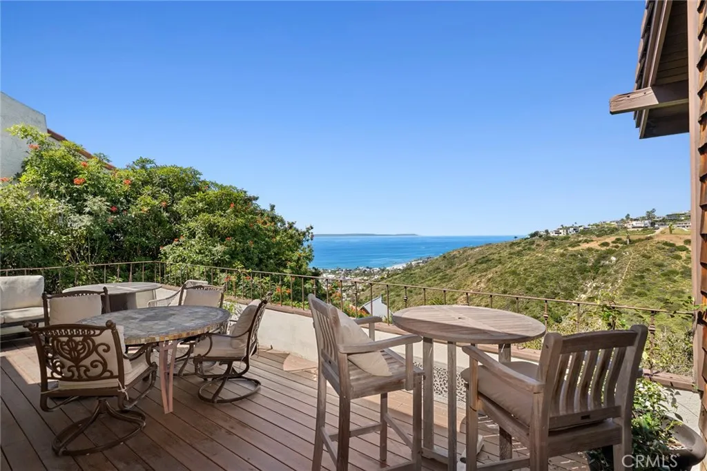 Embrace the premier coastal lifestyle of Laguna Beach where breathtaking ocean and white-water views extend toward Catalina Island beautifully framed by rolling green hills. From the moment you enter, the home is filled with abundant natural light and captivating ocean and hillside vistas that immediately draw your attention and set the tone for coastal living. The generous living room is highlighted by soaring ceilings, a cozy fireplace, and direct access to an expansive outdoor viewing deck creating an ideal setting for enjoying the ever-changing coastal backdrop. The open floor plan seamlessly connects the kitchen and dining areas, both thoughtfully positioned to capture sweeping ocean views, creating a setting that is equally suited for everyday living and effortless entertaining. The updated kitchen complete with upgraded appliances is designed for both intimate gatherings and larger-scale entertaining all while enjoying the surrounding views. This inviting home celebrates exceptional indoor-outdoor living featuring a spacious deck off the main living area and a private patio adjacent to the main level bedroom, offering multiple spaces to enjoy the coastal environment throughout the day and into the evening. On the main level, an oversized bonus room provides flexible living space, ideal for a media room, home office, or additional lounge area. At approximately 2,852 square feet, the residence includes four well-proportioned bedrooms, a bonus room, and two-and-a-half bathrooms. The primary suite offers tranquil ocean views directly from the bedroom, a walk-in closet, and a peaceful private setting that enhances the overall sense of retreat. A direct-access three-car garage, along with a driveway, provides ample parking and storage. Ideally situated in one of Laguna Beach’s most sought-after areas, the home is conveniently located in close proximity to top-rated schools, renowned restaurants, shopping, and local amenities. The ocean is just moments away, with easy access to scenic parks and trails, as well as the restaurants, shops, and galleries of Laguna Beach. With its thoughtful design and exceptional setting, this home presents an unparalleled opportunity to experience the very best of coastal living. This is Laguna Beach living at its finest.