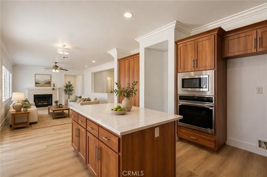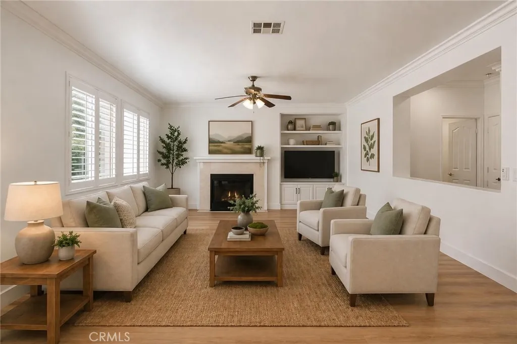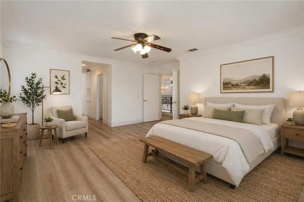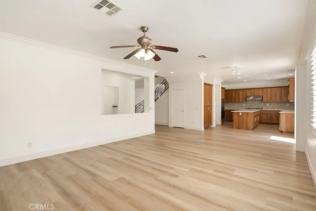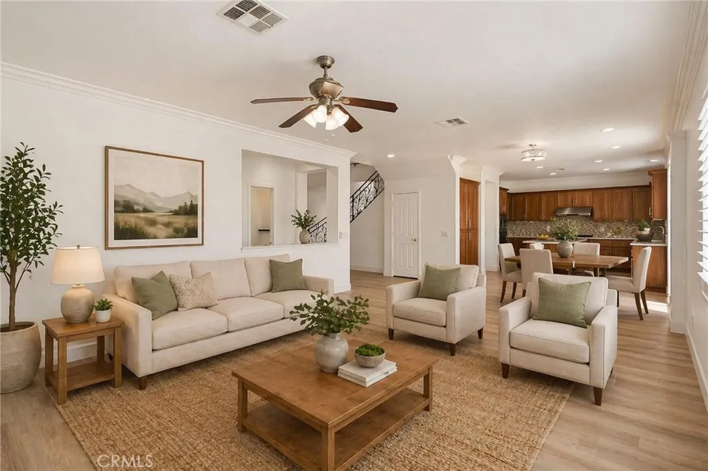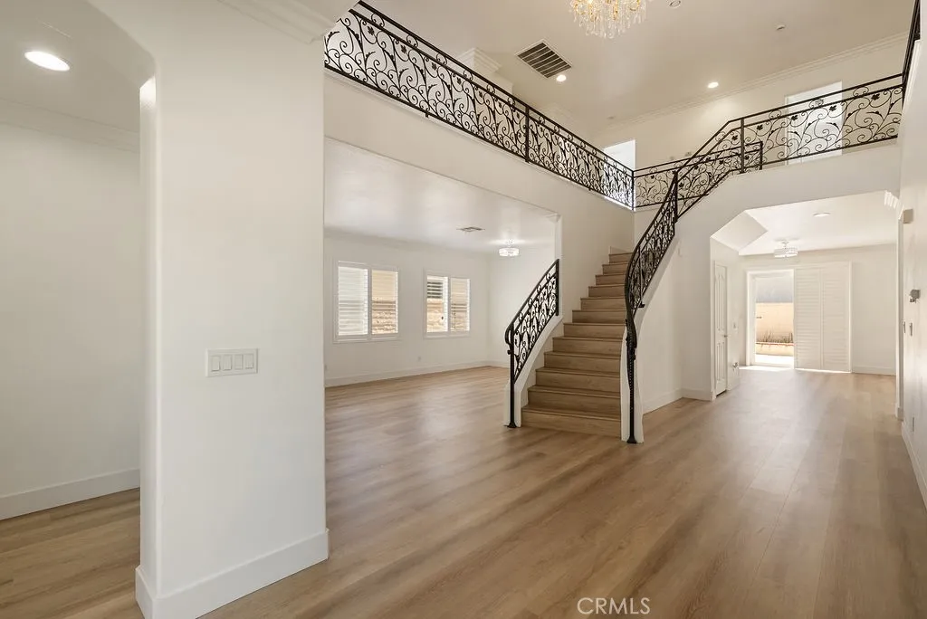 A rare opportunity in Eastvale, this beautifully upgraded and move-in ready home offers the perfect blend of space, comfort, and energy efficiency. A major standout is the fully PAID-OFF solar system, providing immediate energy savings and long-term value. Designed for both comfort and flexibility, the home features a highly desirable layout with a full bedroom suite on the first floor, ideal for guests, in-laws, or a private office. Inside, you’ll find a stylishly updated interior showcasing new flooring, a custom steel staircase railing, and a modern chandelier, complemented by crown molding throughout and plantation shutters on all windows. The kitchen and bathrooms have been tastefully upgraded with quartz countertops, creating a clean and contemporary feel. Upstairs, the expansive loft offers incredible versatility, perfect as a second living area, media room, kids’ play space, or easily convertible into a potential sixth bedroom. The backyard provides a private and relaxing setting with mature fruit trees, including lemon, orange, and persimmon, ideal for enjoying fresh fruit at home or entertaining guests. Conveniently located within walking distance to Orchard Park and situated in a highly rated school district, this home offers the perfect balance of comfort, efficiency, and location.
