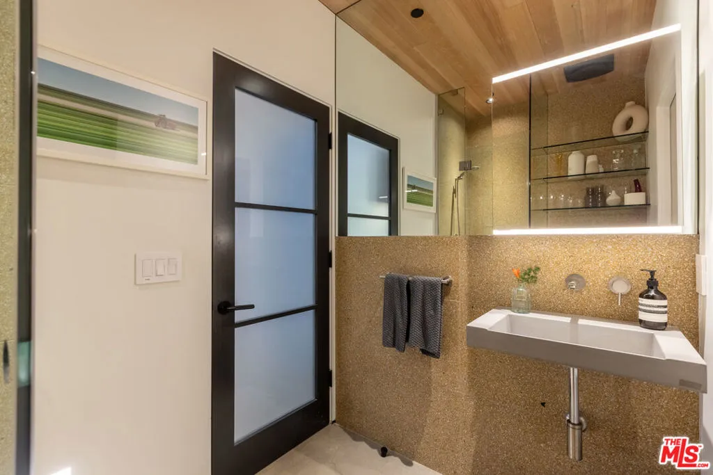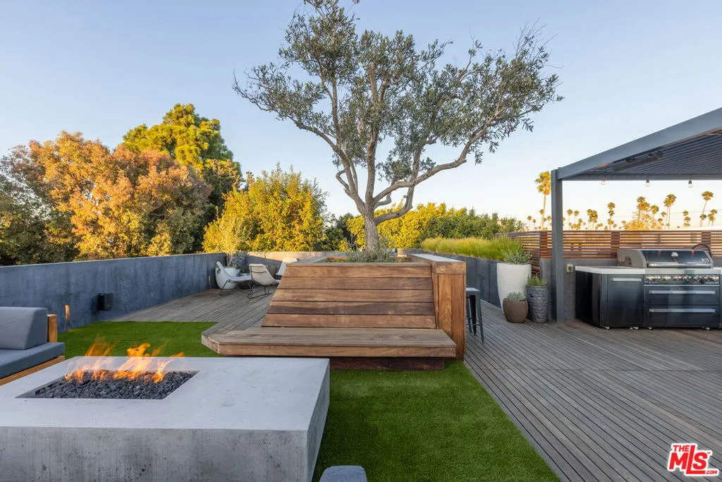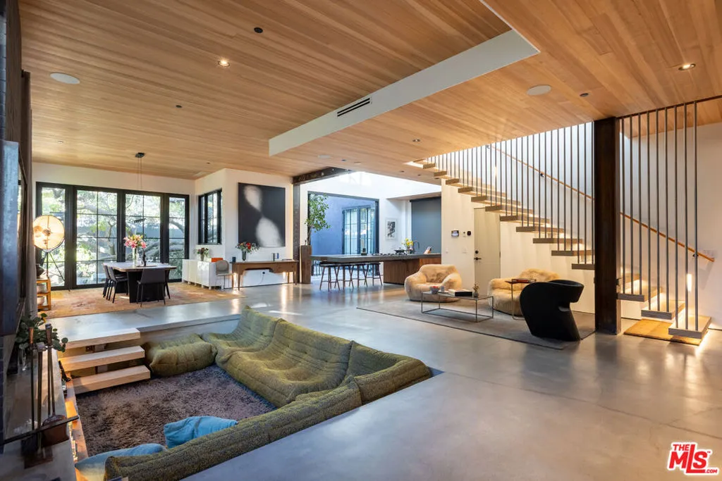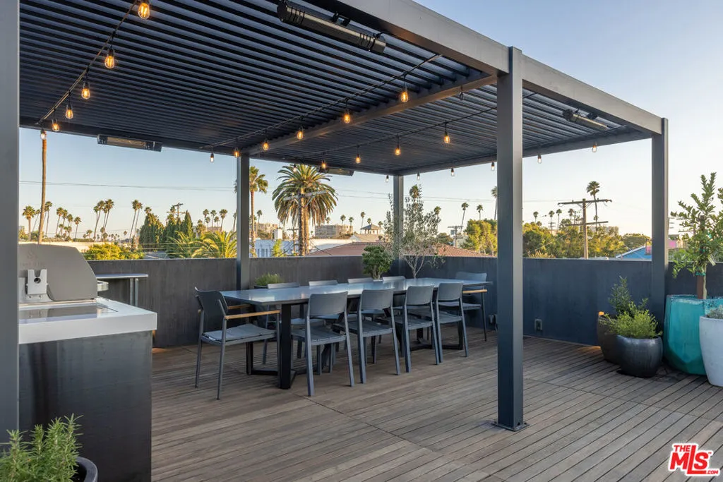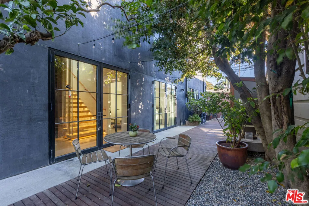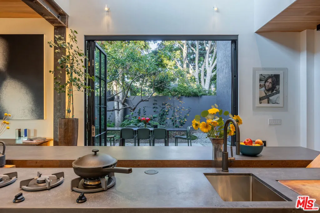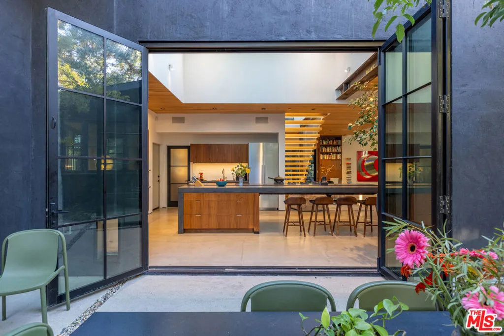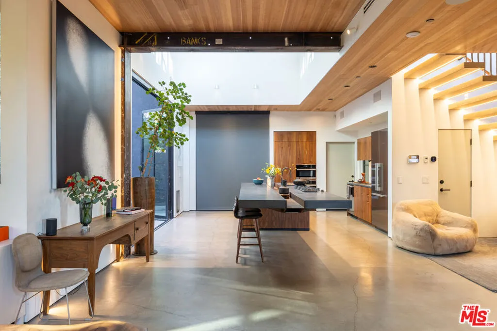 Available for a short term Summer rental June 16th - July 17th. Discover a retreat unlike any other rental on the market, have an opportunity to lease one of the finest homes in Venice, a home that is fully furnished, finished, and stocked completely to the highest level of the homeowner's custom specifications. 746 Marco Pl built in 2022 and designed by acclaimed Architect Robert Thibodeau is a contemporary sanctuary located on the best block of the premier Walk Street of Venice. Just a short stroll away from all that Venice offers, Abbot Kinney Blvd shops and restaurants, Venice Canals, Venice Beach, Lincoln Blvd, and Erewhon just a few blocks away yet still set in a way to enjoy the tranquility and privacy the home offers. The property's lush grounds designed by Landscape Architect Russ Cletta resemble a "California meadow butterfly garden" feature local vegetation, a serene pond with fish and water lilies, mature trees, and multiple outdoor sitting and dining areas to enjoy Southern California's year round lovely weather. The home's Japanese Shou Sugi Ban exterior blends seamlessly with its natural surrounding every room in the home opens to and accesses the outdoors with views of the embracing foliage. Haute sophisticated design meets natural comfort best describes the interior spaces. The open living space features, 11 foot ceilings, radiant heated concrete and ash wood floors, a floating staircase, fir wood ceilings, a sunken conversation pit in the living room with a Ligne Roset Togo sofa, walnut custom cabinetry, exposed steel beams, and double-glazed large windows and French doors allows abundant natural light. The heart of the home is the double volume kitchen featuring the custom 15-foot cantilevered kitchen island, Meile appliances, and seamless access to both the large formal dining room or the well lit courtyard dining area. Each of the three bedrooms offer direct access to private balcony spaces or a patio. The primary bedroom offers two closets, en-suite bathroom with a concrete soaking tub, a walk in shower, and radiant heated floors. The expansive roof deck centered around a statuesque olive tree offers a pergola covered full outdoor kitchen and barbecue area with dining table, multiple seating areas with a fire pit, and high end outdoor surround sound system for entertaining while enjoying the amazing sunset and panoramic views LA has to offer. Other notable features are Lutron lighting system, high speed internet / wifi indoors and outdoors, Apple TV, built in speakers, alarm system, central heating and A/C, surfboard racks, an outdoor shower, four car exterior driveway parking. Make 746 Marco Place your serene / stylish home away from home and experience the quintessential Venice lifestyle in unmatched luxury.