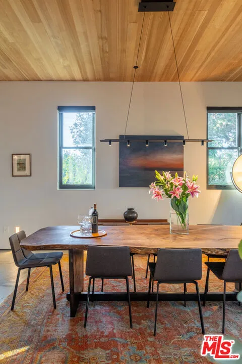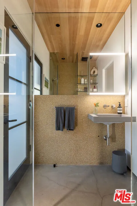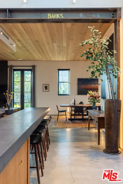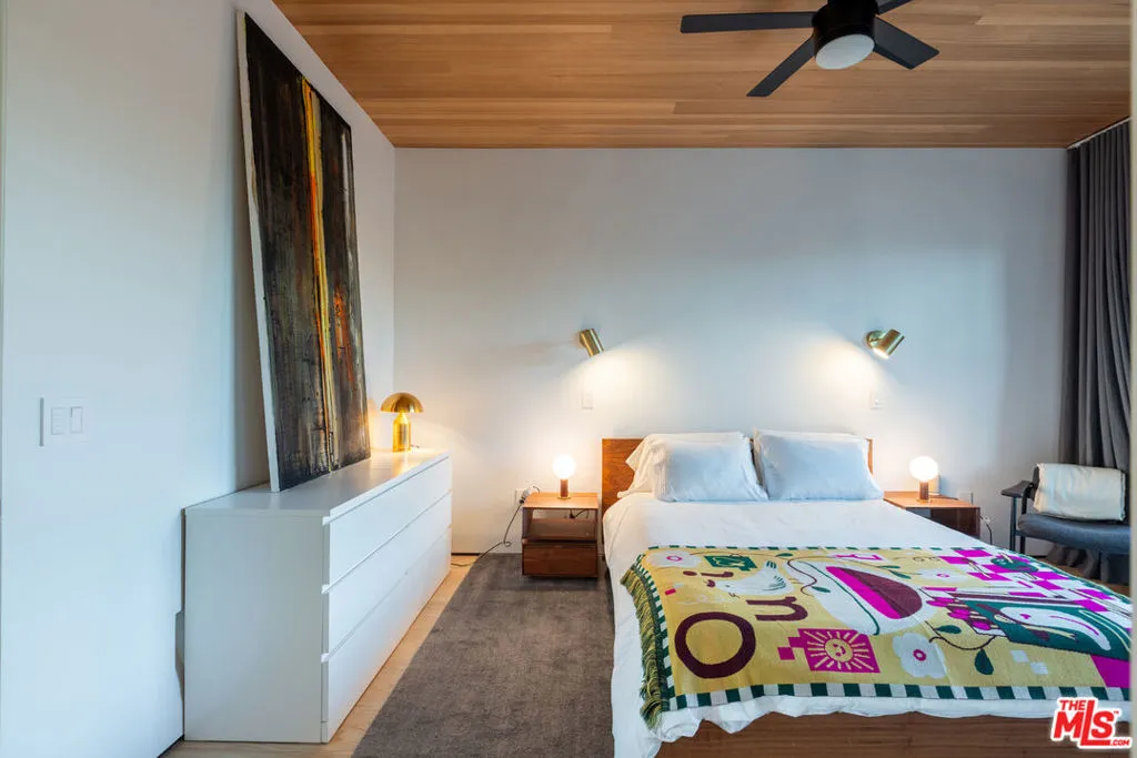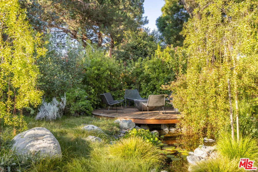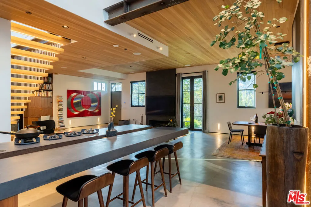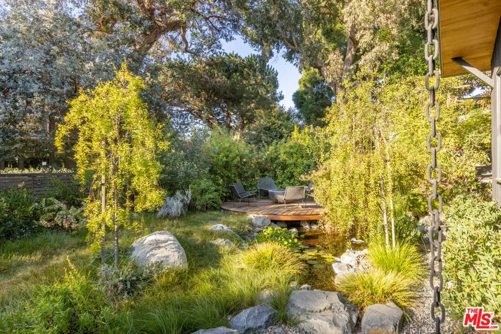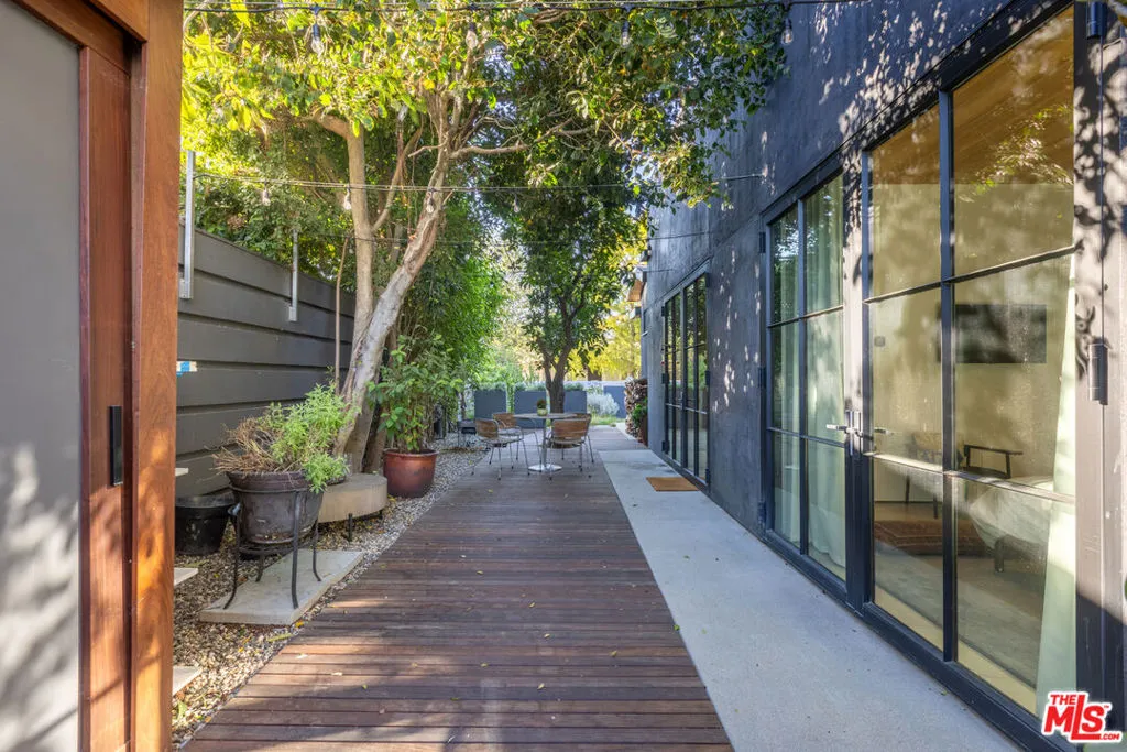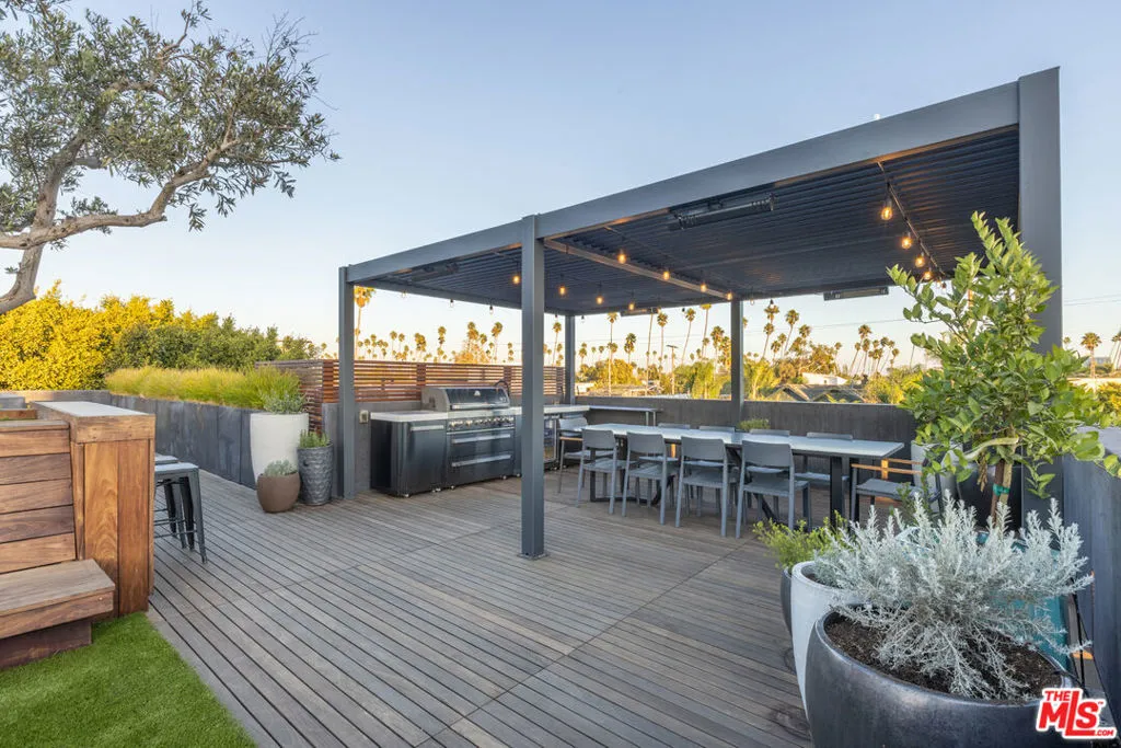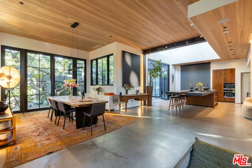 Available for a short term Summer rental June 16th - July 17th. Discover a retreat unlike any other rental on the market, have an opportunity to lease one of the finest homes in Venice, a home that is fully furnished, finished, and stocked completely to the highest level of the homeowner's custom specifications. 746 Marco Pl built in 2022 and designed by acclaimed Architect Robert Thibodeau is a contemporary sanctuary located on the best block of the premier Walk Street of Venice. Just a short stroll away from all that Venice offers, Abbot Kinney Blvd shops and restaurants, Venice Canals, Venice Beach, Lincoln Blvd, and Erewhon just a few blocks away yet still set in a way to enjoy the tranquility and privacy the home offers. The property's lush grounds designed by Landscape Architect Russ Cletta resemble a "California meadow butterfly garden" feature local vegetation, a serene pond with fish and water lilies, mature trees, and multiple outdoor sitting and dining areas to enjoy Southern California's year round lovely weather. The home's Japanese Shou Sugi Ban exterior blends seamlessly with its natural surrounding every room in the home opens to and accesses the outdoors with views of the embracing foliage. Haute sophisticated design meets natural comfort best describes the interior spaces. The open living space features, 11 foot ceilings, radiant heated concrete and ash wood floors, a floating staircase, fir wood ceilings, a sunken conversation pit in the living room with a Ligne Roset Togo sofa, walnut custom cabinetry, exposed steel beams, and double-glazed large windows and French doors allows abundant natural light. The heart of the home is the double volume kitchen featuring the custom 15-foot cantilevered kitchen island, Meile appliances, and seamless access to both the large formal dining room or the well lit courtyard dining area. Each of the three bedrooms offer direct access to private balcony spaces or a patio. The primary bedroom offers two closets, en-suite bathroom with a concrete soaking tub, a walk in shower, and radiant heated floors. The expansive roof deck centered around a statuesque olive tree offers a pergola covered full outdoor kitchen and barbecue area with dining table, multiple seating areas with a fire pit, and high end outdoor surround sound system for entertaining while enjoying the amazing sunset and panoramic views LA has to offer. Other notable features are Lutron lighting system, high speed internet / wifi indoors and outdoors, Apple TV, built in speakers, alarm system, central heating and A/C, surfboard racks, an outdoor shower, four car exterior driveway parking. Make 746 Marco Place your serene / stylish home away from home and experience the quintessential Venice lifestyle in unmatched luxury.