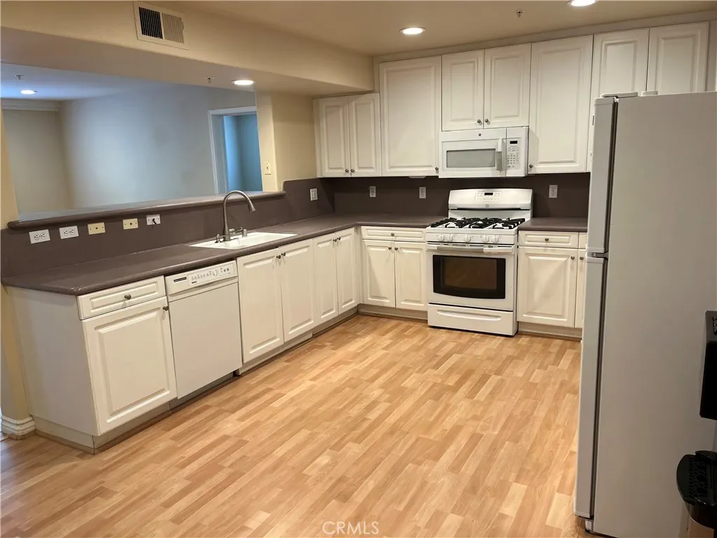 Single level 3 bedroom 2 bath (county assessor show 2 bed) including 3 assigned parking spaces. This rear condo has a large corner patio area. Offering a great open floor plan with natural light through out. Central air and heating, ceiling fans, recessed lighting and wood flooring . Lots of windows and closet space along with a seperate personal storage area. The master bedroom en-suite includes dual sinks and spa tub. An open kitchen with a breakfast counter, in addition a well sized dining room. Washer and dryer in the unit. Grounds include pool/spa, exercise gym room, sauna, guest parking and lots more.