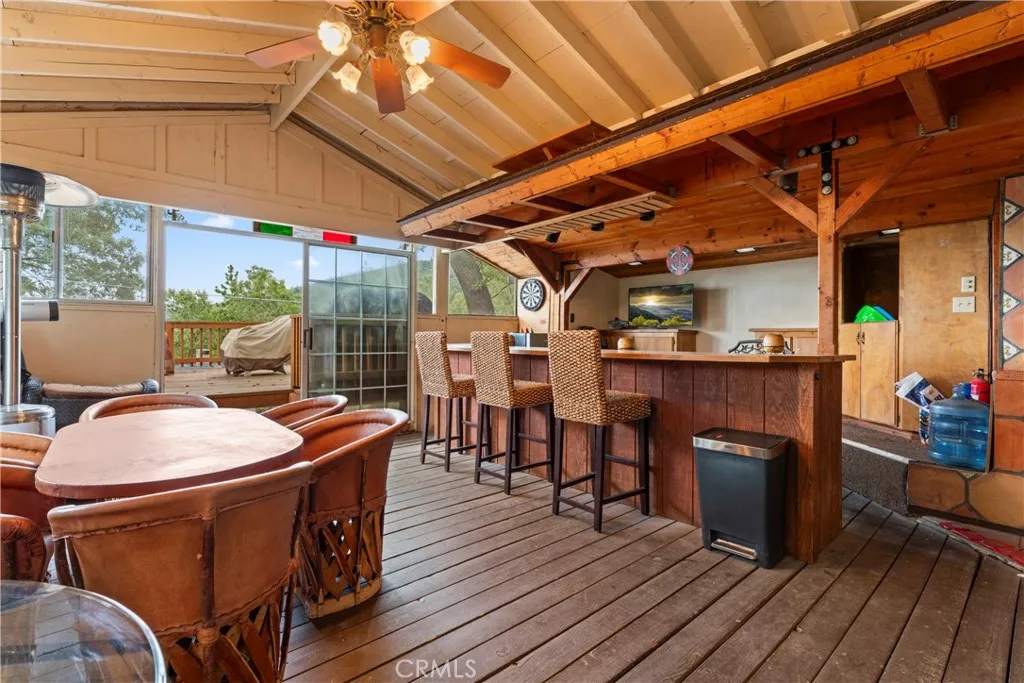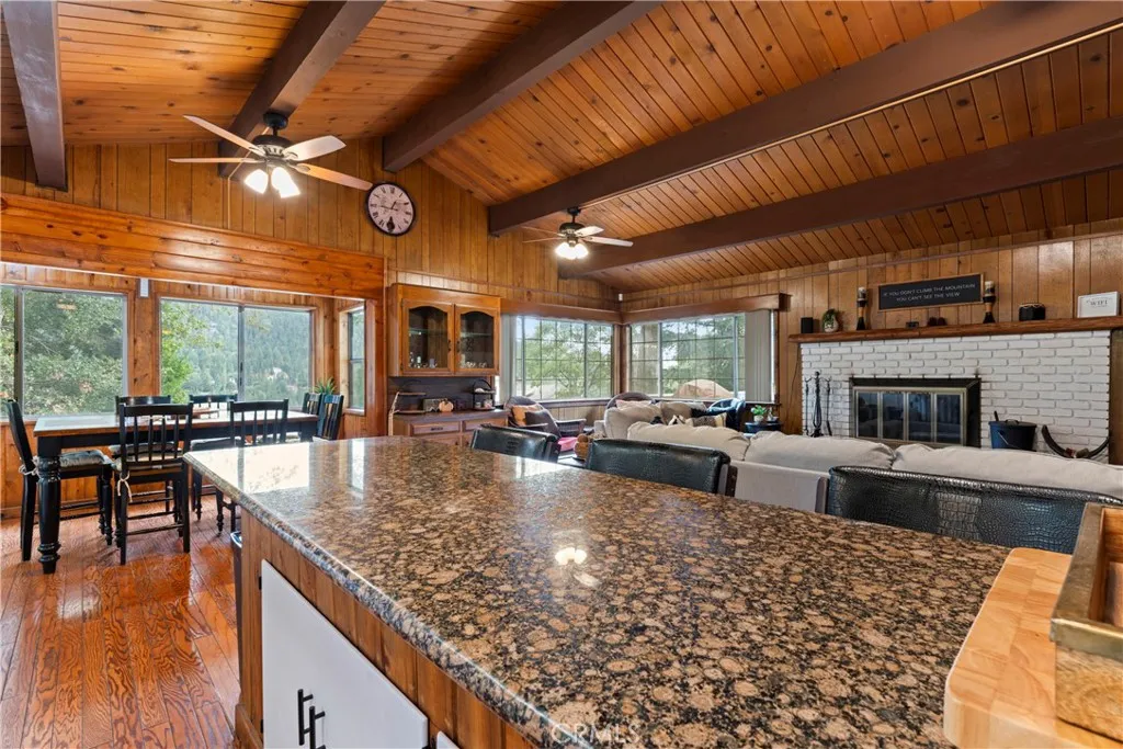 Your Mountain Retreat Awaits. Dreaming of a peaceful mountain getaway with room for everyone? This inviting home blends warmth, comfort, and breathtaking views. Step inside and unwind by the cozy brick fireplace, the perfect spot for winter evenings after a day outdoors. The main level offers a spacious game room, three bedrooms, one and a half baths, and brand new laminate flooring - ideal for family gatherings or weekend guests. Upstairs, light floods into the expansive living and dining area, designed with sweeping vistas to frame your every day. The master suite opens onto a private deck, where you can sip your morning coffee while soaking in the mountain air. A guest room and additional full bath add even more flexibility for family and friends. The heart of the home, the kitchen, features freshly painted cabinets, granite countertops, and a generously sized eating island, perfect for both casual meals and entertaining. Recent upgrades include a new deck, roof and paint. Outdoor living truly shines here with a large entertainment area complete with an outdoor kitchen, bar, and multiple balconies - your own private setting for unforgettable summer evenings under the stars. Centrally located near Lake Gregory, Lake Arrowhead, and popular mountain attractions, this home delivers the serene mountain lifestyle you’ve dreamed of, with convenience never far away.