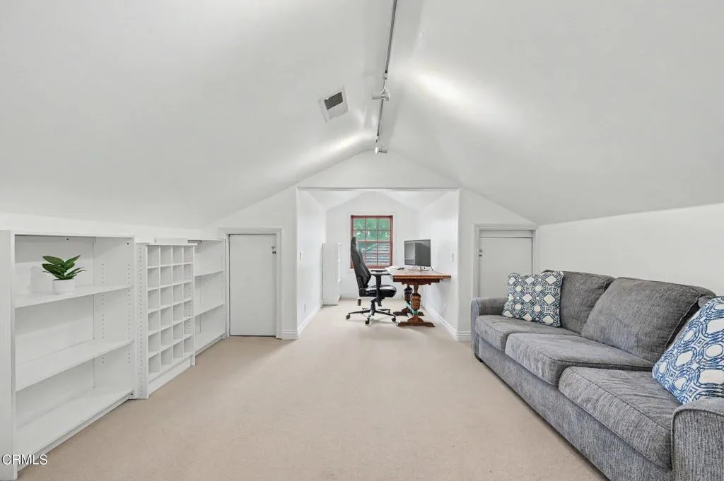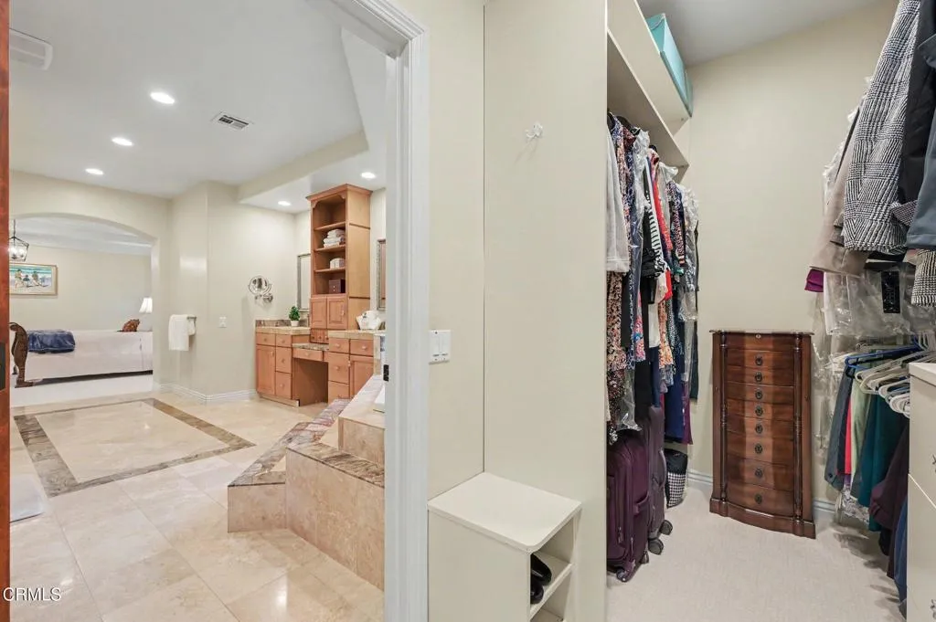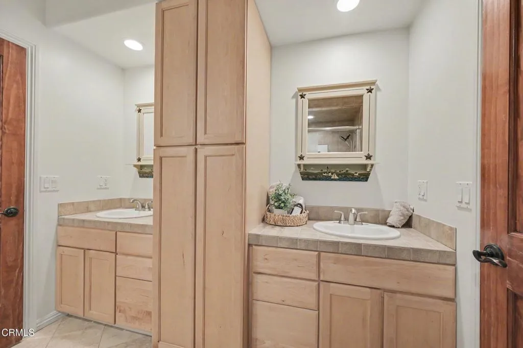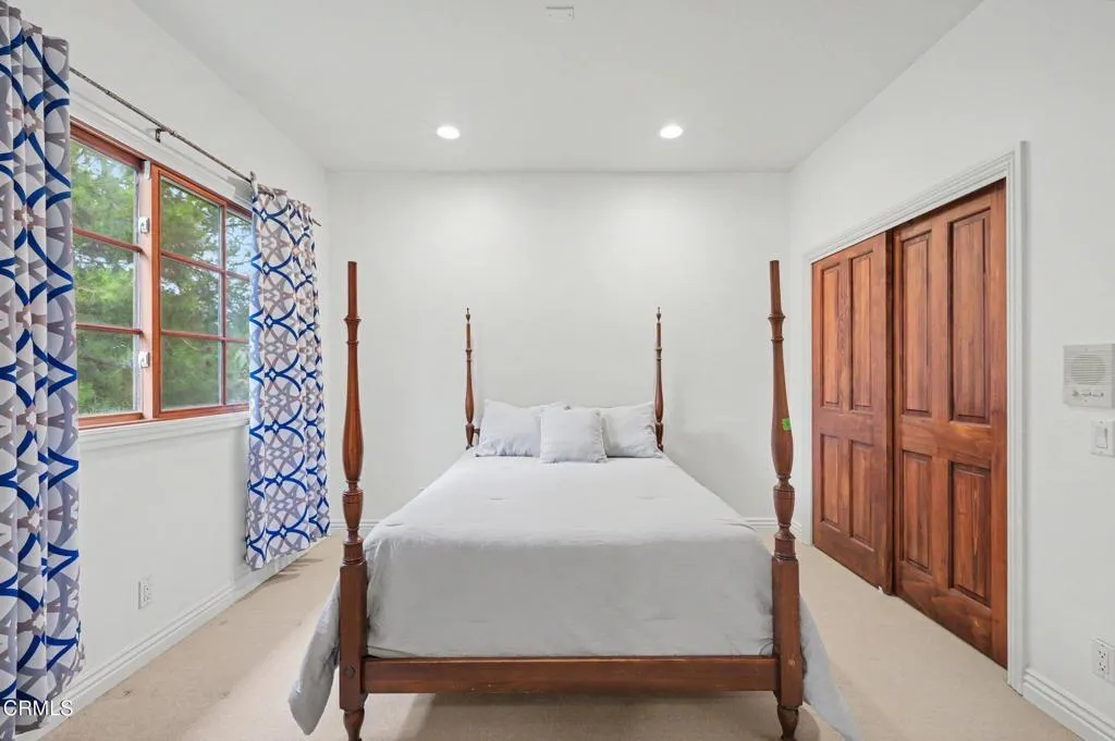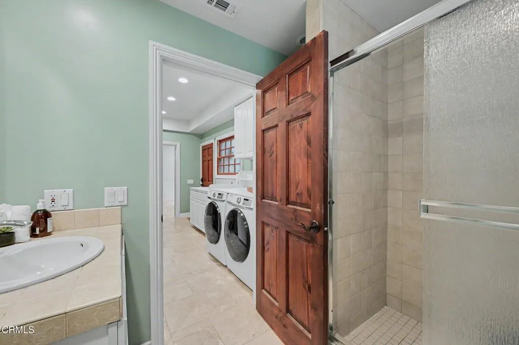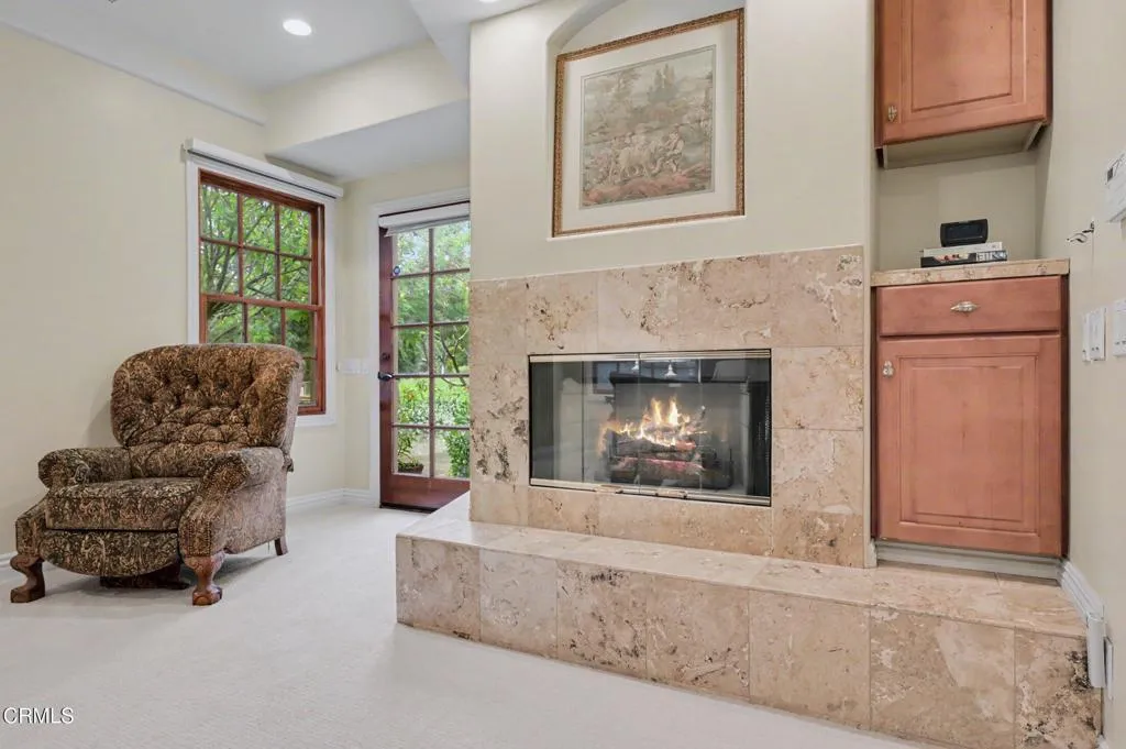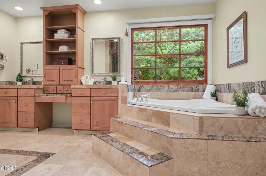 This extraordinary 5 bed, 4.5 bath custom estate is located on over an acre of land in Bella Vista, one of Ventura County's most desirable gated communities. Designed with both flexibility and everyday living in mind, the home features a highly sought-after primary suite on the main level, along with a spacious downstairs family room, office, and laundry room, ideal for single-level living if desired. The primary suite includes its own fireplace, dual walk-in closets, and an en-suite bath with custom vanities and a Jacuzzi tub. The lower level showcases a dynamic, open-concept layout with a double-height vaulted family room that flows into the kitchen. The kitchen features a large breakfast bar with seating for four, a breakfast nook, ample storage, and a walk-in pantry, and connects to the formal dining room overlooking the front landscaping. A separate formal living room with a fireplace provides an additional gathering space. Upstairs, four additional bedrooms are complemented by a versatile loft-style bonus space, perfect for a playroom, office, or additional lounge area, complete with its own window and generous attic storage.Outside, the grounds are a standout feature, with mature landscaping and a variety of fruit trees blooming for your enjoyment. The backyard includes an extensive built-in barbecue area and a large open space that can accommodate a pool, spa, pickleball court, or outdoor events. The property includes both an attached two-car garage and a detached two-car garage, offering flexibility for additional parking, a workshop, or office space. A circular driveway and mature front trees enhance both privacy and curb appeal. Lime, lemon, pomegrante, apricot, apple, champagne grapes, orange, artichokes, and figs make this a gardener's paradise. Located in Camarillo, Bella Vista offers convenient access to nearby golf courses including Las Posas Country Club, Sterling Hills, and Spanish Hills, as well as easy access to both Los Angeles and Santa Barbara.With fewer than 100 custom homes in this community, Bella Vista offers a rare sense of privacy, tranquility, and timeless appeal. Offered for the first time since its original construction, this home presents a unique opportunity in a highly sought-after community.