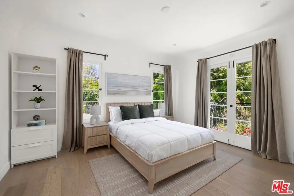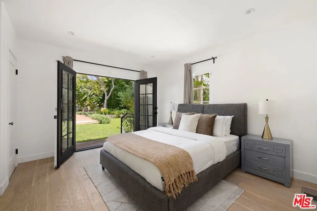 A beautifully reimagined Spanish on coveted Rodeo Drive, set on an expansive nearly 17,000 sq ft lot. This 5-bedroom, 6-bath residence offers all en-suite bedrooms and a seamless indoor-outdoor flow with walls of glass opening to the grounds. A newly redone kitchen anchors the home, complemented by dedicated formal dining, family, and living rooms. Thoughtfully designed, the layout includes three bedrooms upstairs with a flexible bonus room, two bedrooms on the main level, and a detached studio ideal for a gym, office, or creative space. The park-like setting features a large grassy yard, newly resurfaced pool, and ample parking with a driveway and garage.