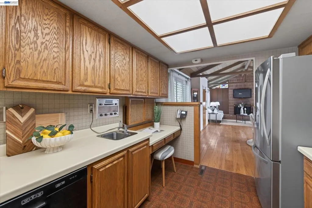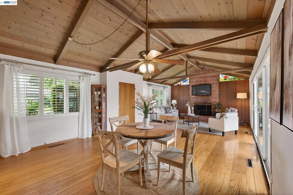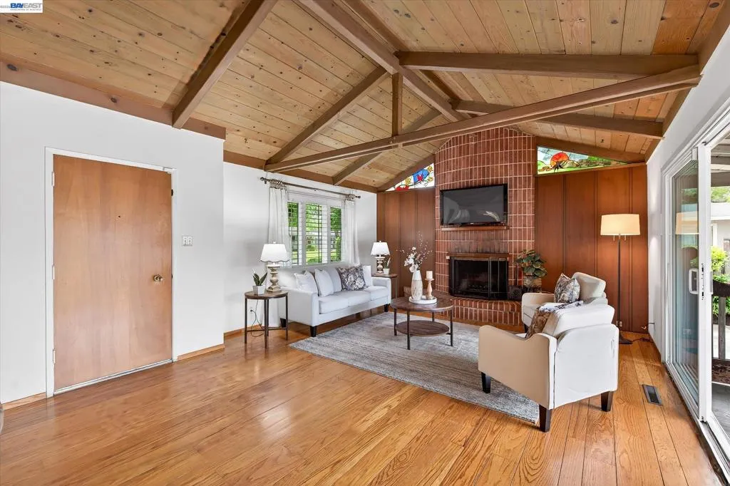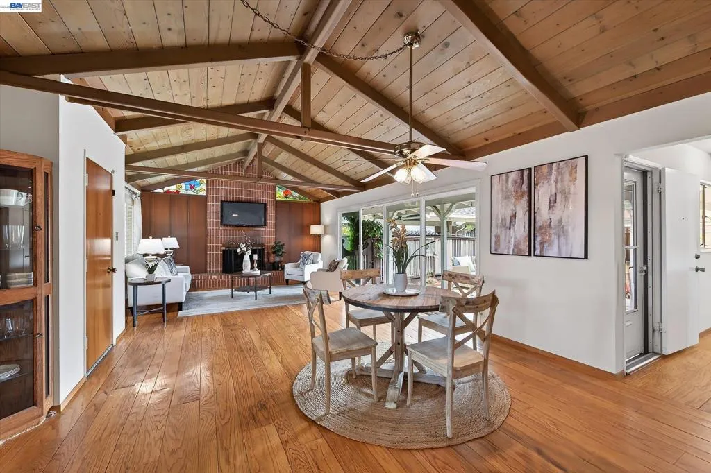 A Semi-Custom in the heart of Pleasanton. The family room boasts an open-beam vaulted ceiling, complemented with natural wood tongue/groove boards. The atmosphere centers around the custom half-round fireplace with a wood mantel. The varying-width hardwood floors are original to the home, complementing the rooms’ unique charm. Throughout the home, there are 3 bedrooms and 2 baths, plus an indoor laundry. Expansive sliding glass doors with stationary glass side panels welcome you out to the home’s courtyard. A lemon, a grapefruit, and an orange tree are in the yard. • Built in 1955 • 3 Bedrooms, 2 Baths • The home's SF is 1,509 • Lot size 6,370 • Indoor Laundry • Original hardwood floors • Semi-Custom home • Open beam vaulted wood ceiling • The Hall bath features a custom soaking tub with views of the landscaped side yard • Detached garage, a covered carport, with an additional workshop 3 Blocks from Pleasanton’s downtown. Close to Amador High School, Alisal Elementary, and Harvest Park Middle School. Open houses are 4/25 & 26 ~ times are 1:00 to 4:00
