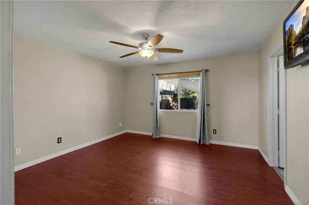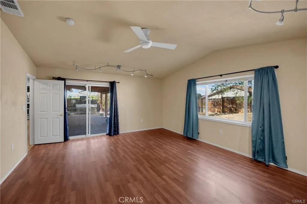 Charming single story home with great curb appeal and low maintenance landscaping situated in a quiet neighborhood. This inviting property features a spacious front yard with decorative rock, mature landscaping and a welcoming entry. Inside you will find a spacious living room with vaulted ceilings, enhanced by abundant natural light. Rich wood style flooring, a cozy fireplace and built in entertainment center. The kitchen is updated with dark cabinetry, stainless steel appliances and spacious wraparound counter space for everyday cooking and entertaining. Both bathrooms have been tastefully upgraded with new vanities, mirrors and hardware. There is an energy efficient whole house fan to lower those electric bills, ceiling fans in all rooms and refrigerator, washer ,dryer and above ground spa all stay with the home. With four bedrooms and 2 full baths this home is ready for the next family to move in. The backyard offers a covered patio and wood fencing for privacy. This is a great oversized corner lot, close to schools, shopping and commuter friendly. This one wont last long, come and check it out!!