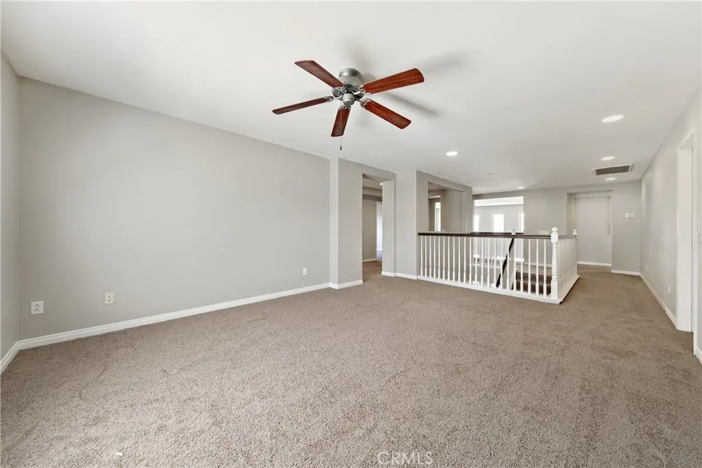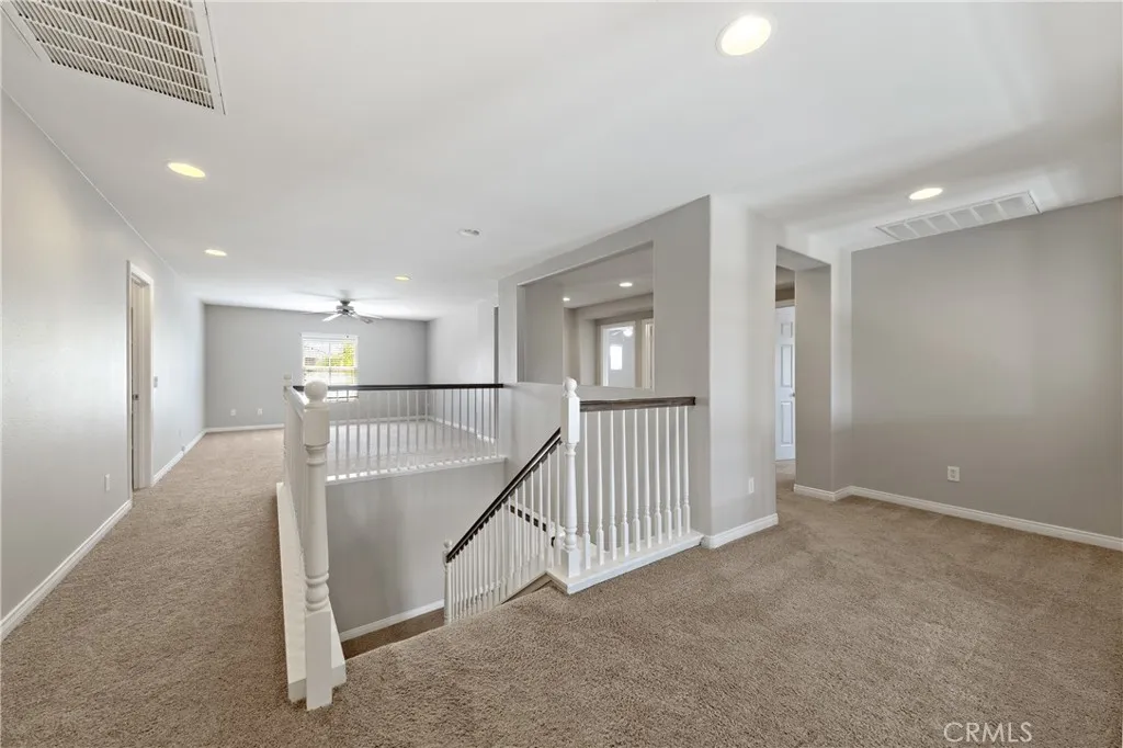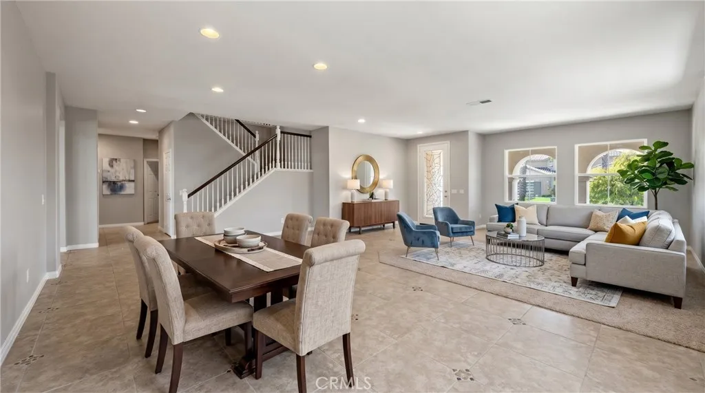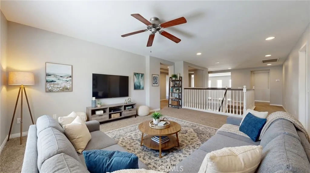 Welcome To This Spacious And Well-Appointed Home Offering A Functional Layout, Thoughtful Upgrades, And Indoor-Outdoor Living. From The Moment You Arrive, You’ll Appreciate The Covered Front Porch And Extensive Hardscape Featuring Brick And Slate Accents, Multiple Planters With Irrigation, And Mature Landscaping Including Queen Palms And Additional Trees That Enhance The Curb Appeal. Conveniently Located Just Four Doors Down, You’ll Also Enjoy Easy Access To A Neighborhood Park Complete With A Playground And Slide—Perfect For Outdoor Fun. Inside, The Home Showcases A Blend Of Tile Flooring In High-Traffic Areas And Newer Carpet Throughout, Creating A Comfortable And Inviting Atmosphere. The Formal Living And Dining Rooms Offer Large Picture Windows And Recessed Lighting, While The Expansive Great Room Features Soaring Vaulted Ceilings, A Cozy Gas Fireplace, And Abundant Natural Light. The Kitchen Is Designed For Both Functionality And Style With Granite Countertops, Custom Tile Details, Under-Cabinet Lighting, A Five-Burner Range With Hood, Dual GE Profile Ovens, Stainless Steel Sink And Dishwasher, And A Walk-In Pantry. A Highly Desirable Downstairs Bedroom With Its Own Private Full Bathroom Provides Flexibility For Guests Or Multi-Generational Living, Along With An Additional Guest Half Bath Conveniently Located On The Main Floor. Upstairs, You’ll Find A Large Loft, Walk-In Linen Closet, And A Spacious Primary Suite Offering Scenic Views, Dual Walk-In Closets, And A Well-Appointed Bathroom With Dual Sinks, A Separate Tub And Shower, And A Private Toilet Area. Secondary Bedrooms Are Generously Sized And Share A Bathroom With Dual Sinks And A Separate Tub/Shower Space. Additional Highlights Include An Upstairs Laundry Room With Gas Hookup, Dual Zone HVAC With Separate Thermostats For Upstairs And Downstairs, Ceiling Fans Throughout, And A Three-Car Garage With Interior Water Shut-Off Access. The Backyard Is Designed For Low Maintenance And Outdoor Enjoyment Featuring Stamped Concrete Patio Areas, Artificial Turf, Brick Curbing, Mature Trees, A Retaining Wall, And A Movable Patio Cover, All Enclosed By Wood Fencing. This Home Offers A Versatile Floor Plan, Solid Features, And Great Potential—Ready For Its Next Owner To Make It Their Own.