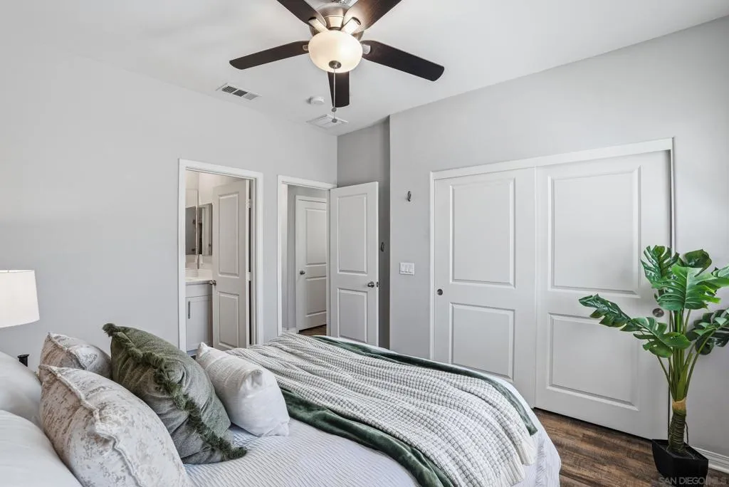 VA APPROVED! Tucked away in the sought-after Bayside Landing community, this newer-built (2018) townhome offers the perfect blend of comfort, style, and convenience. Featuring one of the few desirable two-bedroom floor-plans with a true open-concept layout and ample island, the kitchen is designed for both everyday living and easy entertaining. Upstairs, you’ll find luxury vinyl flooring throughout, along with a thoughtfully designed layout that includes laundry on the same level as the bedrooms. The spacious primary suite offers a walk-in closet and an oversized en-suite bath, creating a private retreat to unwind. The entire unit has custom built-ins and shelving throughout, including both closets, bar area, dining room and bathroom. For further convenience, the unit also has an upgraded full two car garage with storage, epoxy coating, and a tankless hot water heater. Located just steps from the Bayshore Bikeway, this home is ideal for an active coastal lifestyle, whether you’re biking into Coronado, heading toward the upcoming Gaylord Pacific Resort, cruising over to the new local Suncoast Coop, or making your way to Seacoast Avenue for dining, coffee shops, and beach days. Bayside Landing residents enjoy access to resort-style amenities including a pool, hot tub, and community BBQ areas.