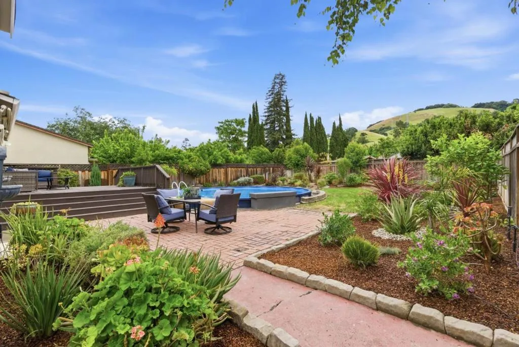 Immerse yourself in the splendor of this Blossom Valley neighborhood nestled against the scenic foothills of San Jose. This spectacular home sits on an expansive lot that measures over 8700 square feet and is complete with 4 bedrooms and 3 full bathrooms. Its a home that beautifully balances space, warmth, and functionality. As you step through the front door, youre welcomed by a bright and spacious living room bathed with natural light from a large picture window. The kitchen is the heart of this home, designed to blend functionality with charm. Whether youre preparing weeknight meals or entertaining guests, this chef-ready kitchen showcases rich cherry cabinetry, quartz countertops, and a layout made for entertaining. Adjacent to the kitchen is the family room, a warm and inviting space. This room is perfect for movie nights, game nights, or simply relaxing with loved ones. The large sliding glass doors open seamlessly to the spacious backyard, creating the perfect indoor-outdoor flow for entertaining or unwinding. Sunlit living spaces flow to a generously sized backyard featuring a sparkling pool, an expansive deck with a retractable awning, and beautiful unobstructed foothill views. This is a setting like no other. Come visit & envision your new lifestyle!