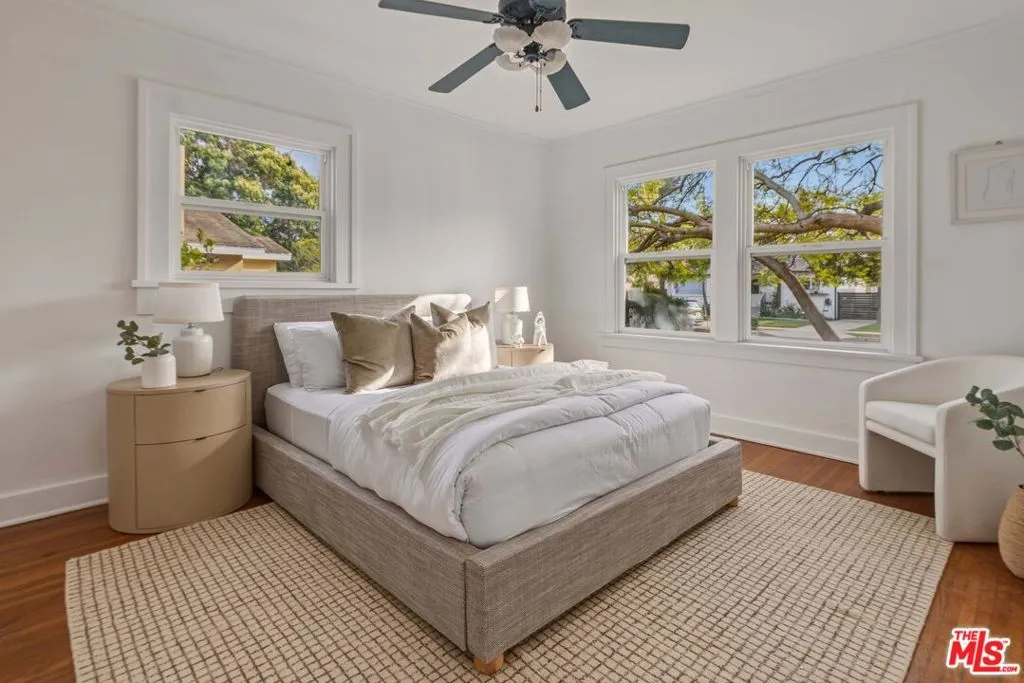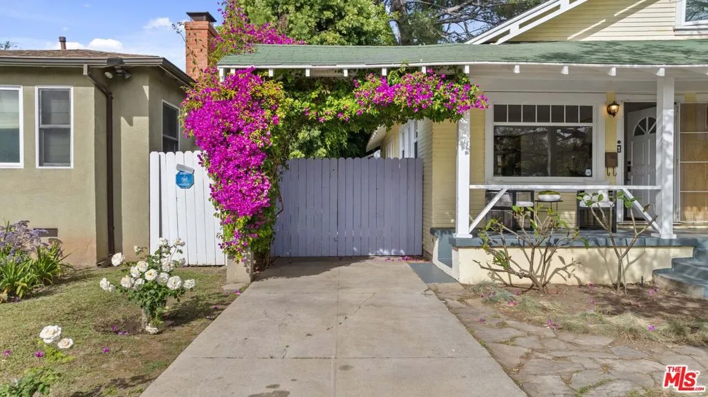 A charming California Craftsman full of character and easy Westside living. The front yard is thoughtfully landscaped with mature trees that create natural shade, along with agave and other California native plants that give the home a grounded, welcoming feel. A cozy front porch offers a nice spot to sit with your morning coffee or wind down in the evening. Inside, the home is bright and comfortable, with three well-sized bedrooms and two updated bathrooms (bonus office room upstairs). The primary bedroom opens to the backyard through French doors, bringing in light and a nice indoor-outdoor connection. The kitchen has been updated with tasteful wood cabinetry, granite countertops, and stainless steel appliances, and flows easily into the living and dining areas making the space feel connected and perfect for entertaining .Out back, the yard feels like a private retreat, with mature landscaping, space to relax or dine outside, and plenty of room to enjoy as-is or personalize over time. A detached two-car garage adds flexibility, whether for storage, a workspace, or potential ADU.