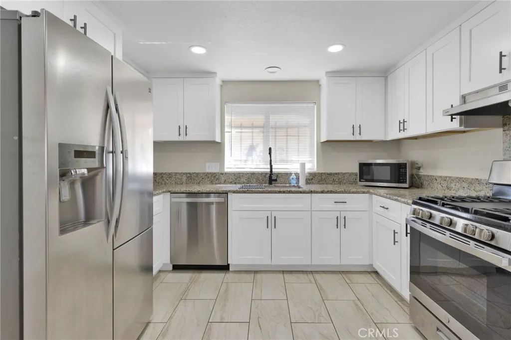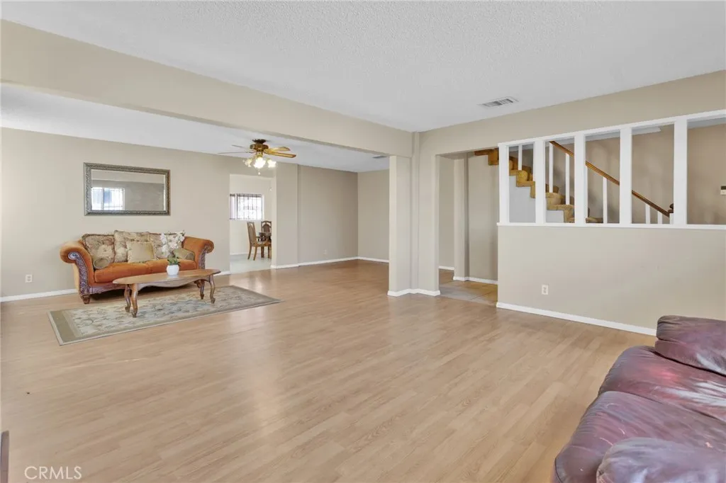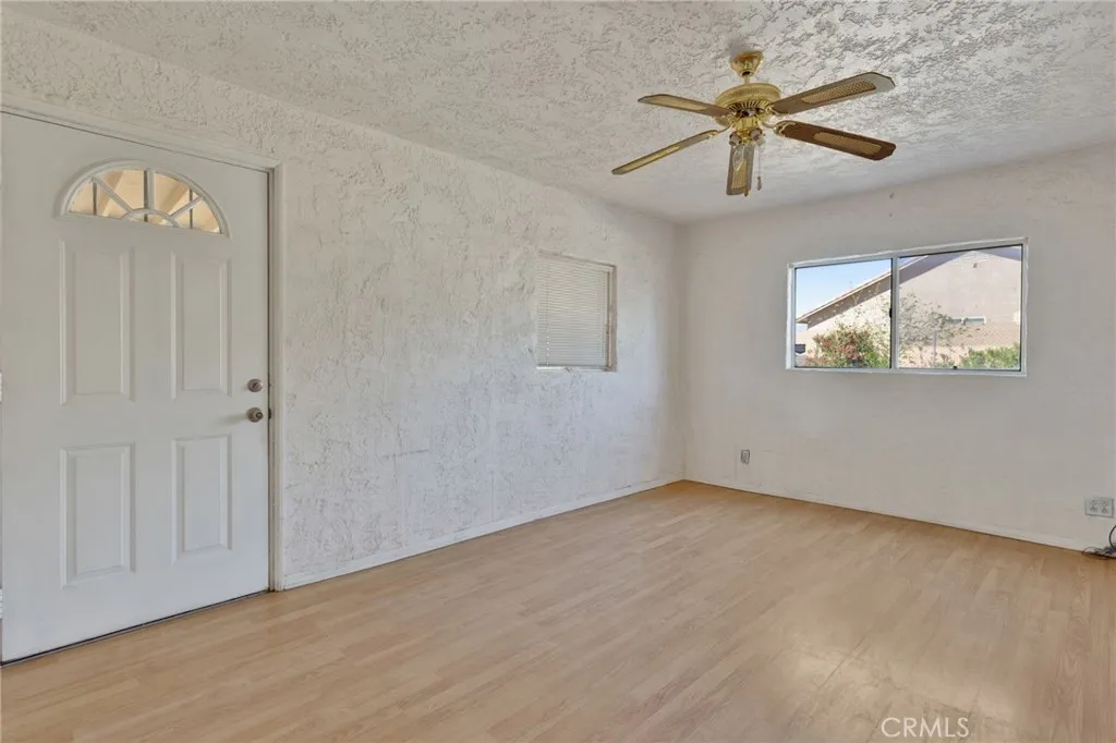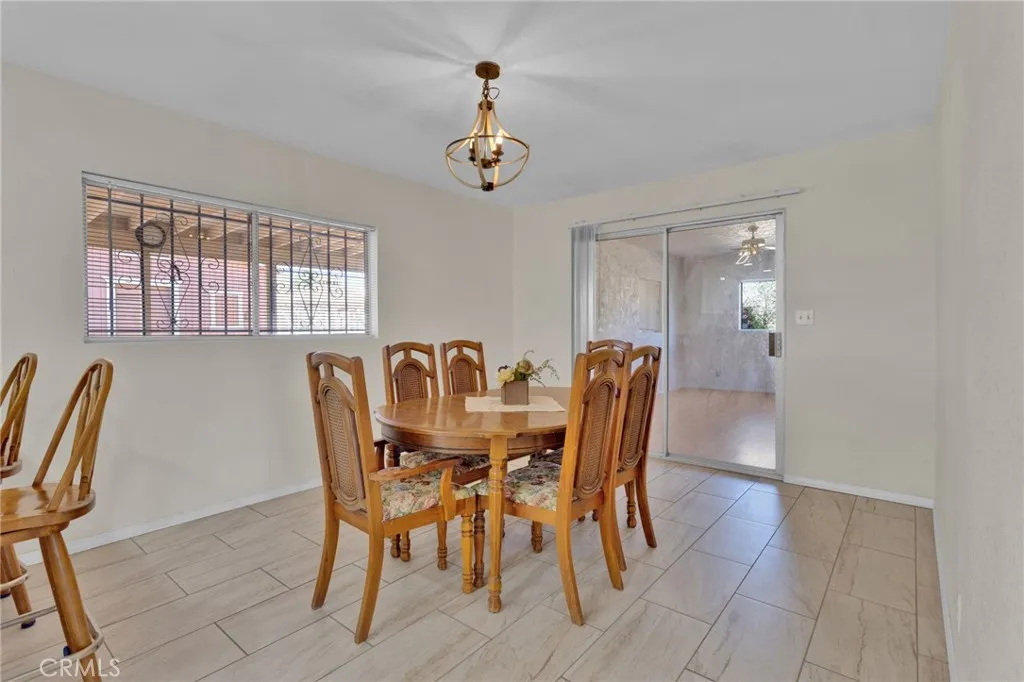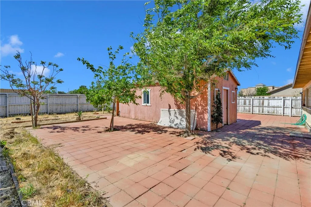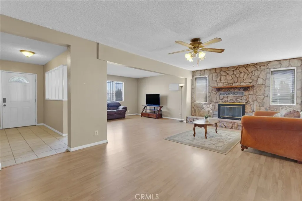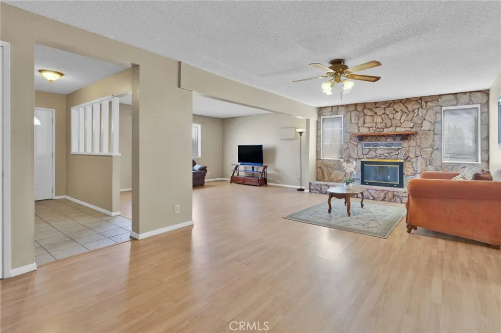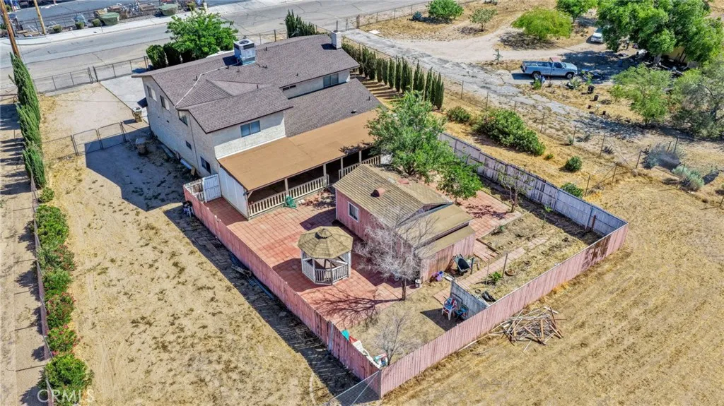 This custom-built home sits on a generous lot in desirable Hesperia, offering space, comfort, and convenience. The inviting living room features a stunning rock fireplace, creating a warm focal point perfect for relaxing or entertaining. The thoughtfully designed layout includes one bedroom and bathroom downstairs—ideal for guests or multi-generational living. A separate laundry room adds everyday convenience, while the spacious kitchen is equipped with stainless steel appliances and opens seamlessly to a formal dining area, perfect for gatherings. Upstairs, the primary suite offers a private retreat with a large balcony—an ideal spot to enjoy morning coffee or evening sunsets. Step outside to a covered patio, gazebo, and outdoor shed, providing plenty of space for outdoor living, storage, and entertaining. Conveniently located just minutes from Interstate 15 and close to shopping, this home combines peaceful living with easy access to everything you need.