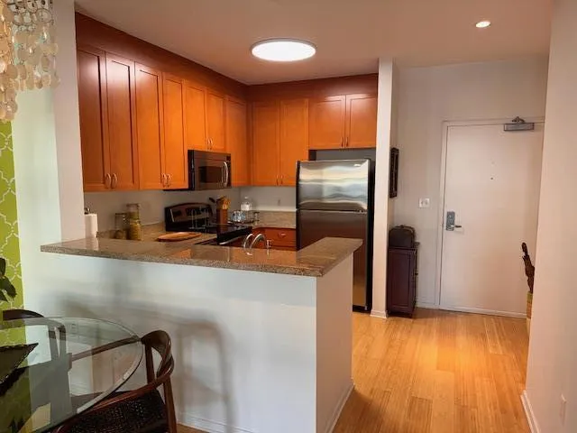 Welcome to this charming 1- bedroom, 1 bathroom condo nestled in the heart of SOMA. With a cozy 662 sq/ft of living space, this home offers an ideal urban retreat. The well-appointed kitchen features granite countertops, a dishwasher, hood over range, microwave, electric oven and refrigerator, providing everything you need for culinary adventures. The living area boasts a blend of carpet and bamboo flooring, creating a warm and inviting atmosphere. A central forced air heating system ensures comfort throughout the year. Take advantage of the convenience of in-unit washer and dryer for your laundry needs. Although there is no pool or garage, the property offers a perfect balance of comfort and convenience in the heart of one of the most dynamic cities in the world. Commuting is effortless with close proximity to hwy 280, 101, BART, MUNI, Caltrain, and the New Yerba Buena/ Moscone Central Subway station. Also, convenient to Whole Foods and Target stores.