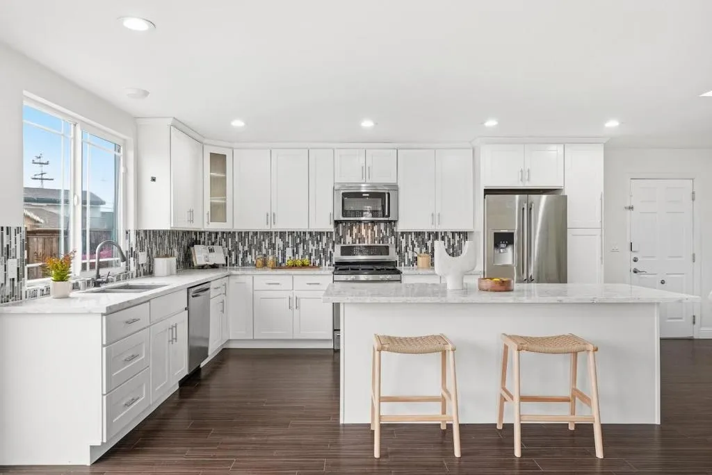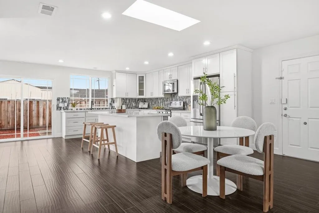RARE FIND!! Completely renovated wall-to-wall in 2014, this bright and modern 3-bedroom, 2-bath home offers approximately 1,656 sq ft of stylish and comfortable living space, featuring an inviting living room with skylights and recessed lighting, an updated chef's kitchen with stainless steel appliances, quartz countertops, a large center island, and ample cabinetry, along with a spacious primary suite that includes an oversized walk-in closet, dual vanities, a separate shower, and a luxurious jetted tub; both the front and backyard are newly landscaped with a pool perfect for relaxing or entertaining, all ideally located near Mirabeau Park and just a short drive to major tech campuses like Tesla, Meta, and Amazon, with easy access to I-880 and Highway 84 and abundant dining and entertainment options just 5-7 minutes away-Welcome Home!