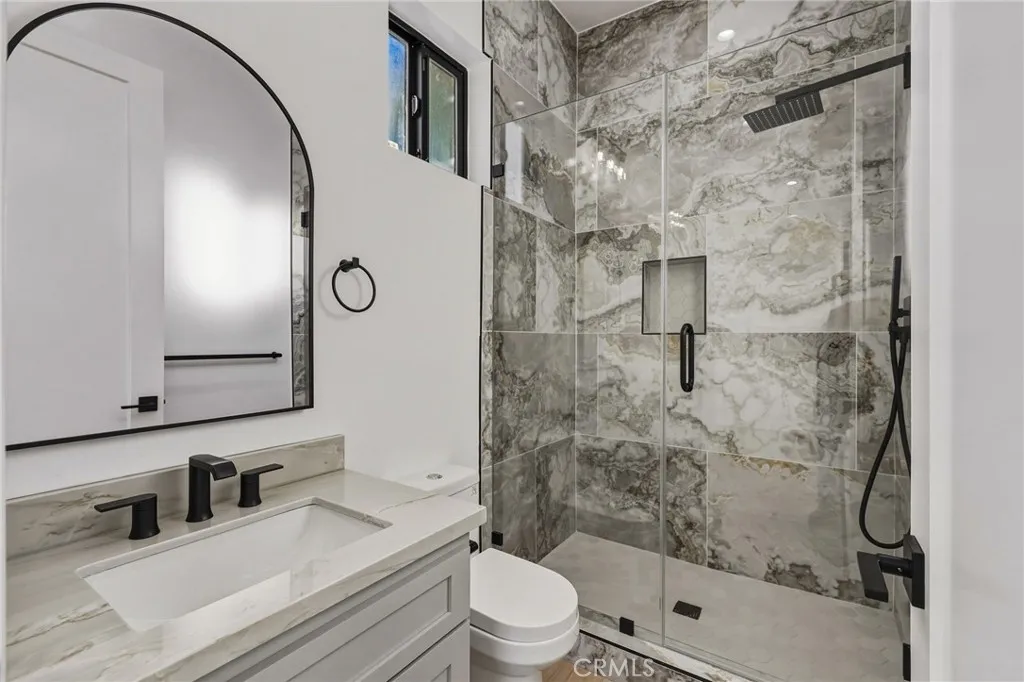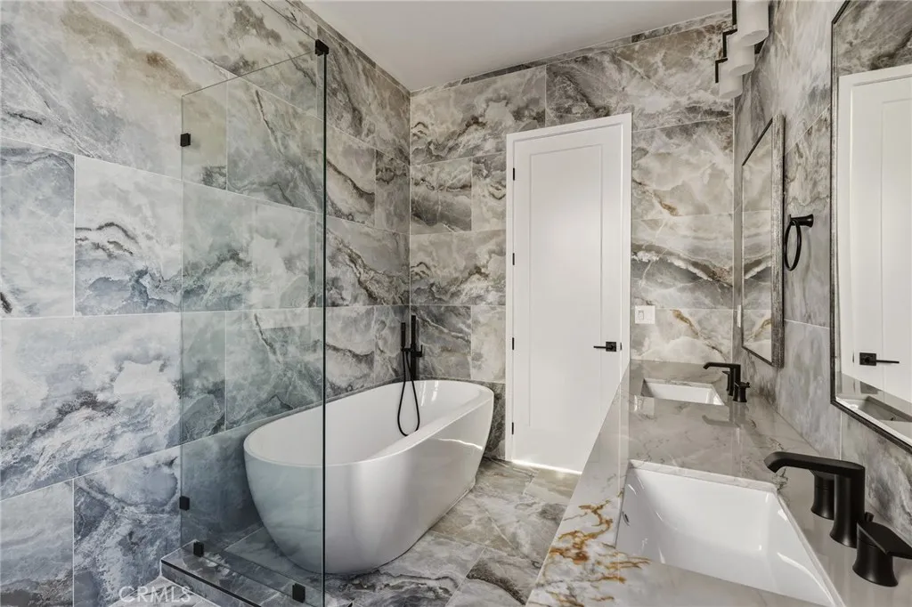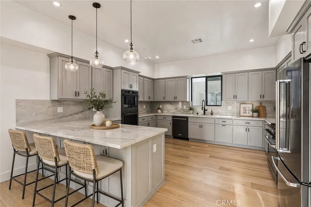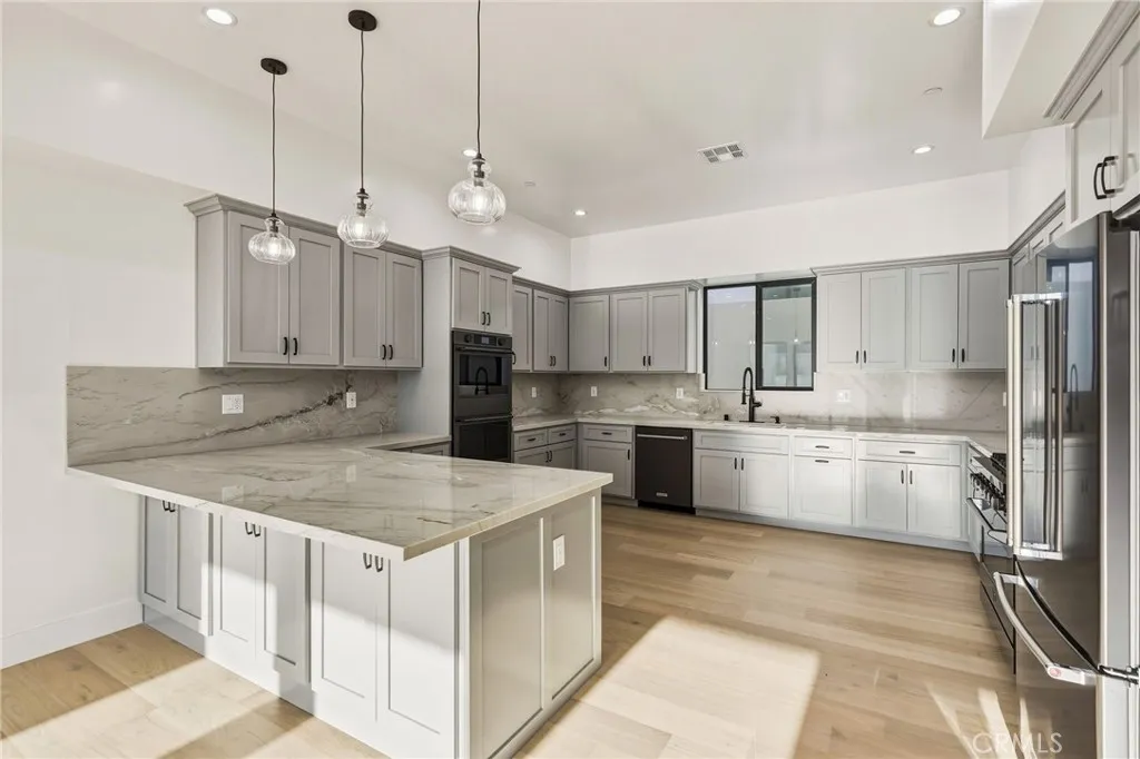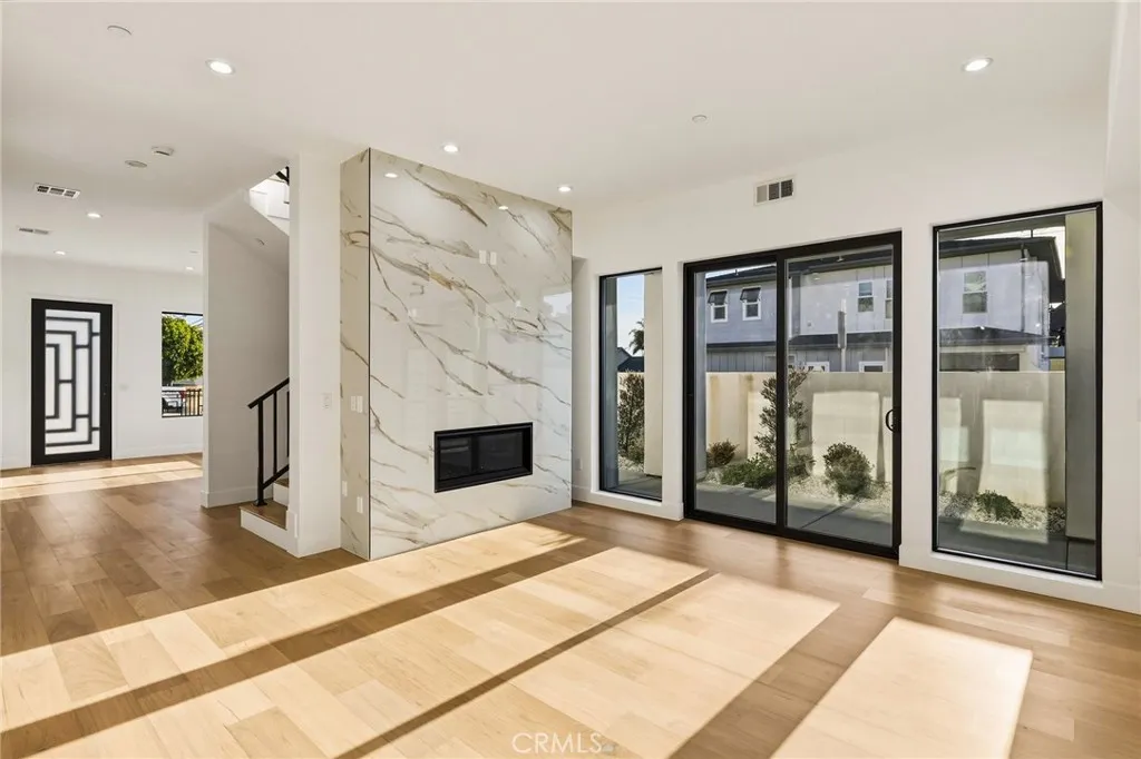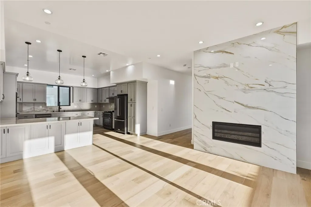 Brand new construction in North Redondo Beach, this stunning 5-bedroom, 4-bath home offers a thoughtfully designed floor plan, elevated finishes, and seamless indoor-outdoor living. The main level features a bright and open layout with a spacious living room and a versatile room with a fireplace—ideal as a formal dining space or an additional family room—just off the kitchen. The chef’s kitchen features quartz countertops, sleek appliances, and ample cabinetry. A sliding door off the versatile room opens to a private side patio, creating an easy indoor-outdoor connection, while an additional grass yard provides extra outdoor space. Two bedrooms and a full bath with a shower/tub combo are conveniently located on the main level, along with the laundry area. Upstairs, you’ll find three bedrooms, including dual primary suites—each featuring walk-in closets and bathrooms with walk-in showers, soaking tubs, and dual vanities. A third upstairs bedroom also offers its own en-suite bathroom, providing comfort and privacy for family or guests. Additional highlights include beautiful quartz finishes throughout and central A/C. Ideally located in North Redondo Beach, this brand-new home combines modern style, flexible living spaces, and everyday functionality.