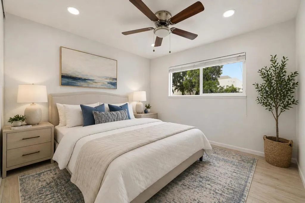 Rarely available, NorthEast-facing 3-bedroom affordable condo in a highly convenient location. Beautifully remodeled with new laminate flooring, recessed lighting, and fresh interior paint. The updated bathroom features a brand-new shower, walls, vanity, and closet doors, along with a custom closet system. The kitchen was remodeled in 2019, complemented by energy-efficient dual-pane windows and ceiling fans with lights throughout. This upstairs unit offers nice views, privacy, and a secure setting. Additional highlights include: 1-car garage + 1-car driveway parking, Extra storage room, Ample guest parking within the community. Shared laundry (only 3 neighboring units) Enjoy community amenities such as a pool and playground/park. Located within top-rated Milpitas schools: Anthony Spangler Elementary, Thomas Russell Middle, and Milpitas High School. Prime location within walking distance to shops and restaurants, and just minutes to Milpitas Square, McCarthy Ranch, Great Mall, and BART. Easy access to Hwy 237, 880, 680, and 101, with a short commute to major tech companies and close proximity to San Jose Airport. HOA covers water (hot & cold) and garbage. Property is not located in a flood zone. *Virtually staged for marketing. Photos may not reflect actual size, or dimensions.