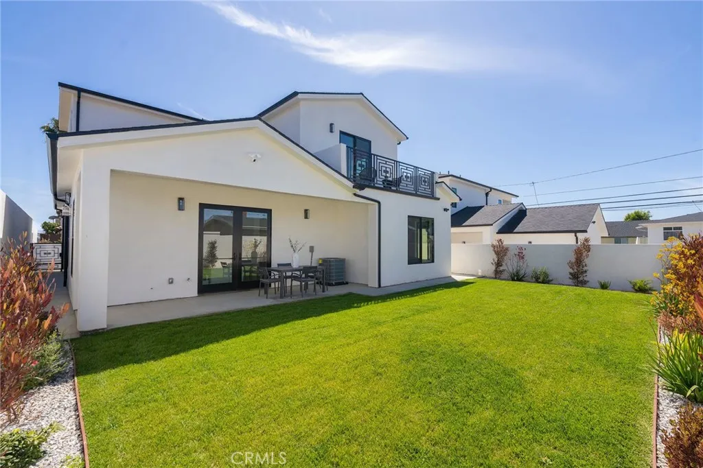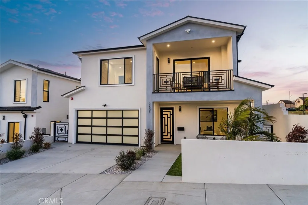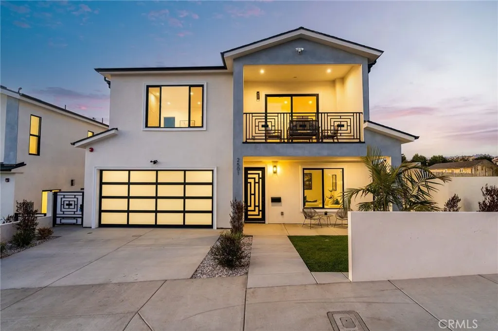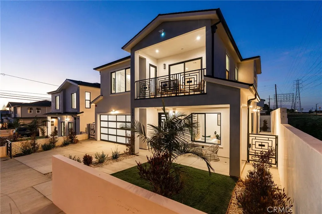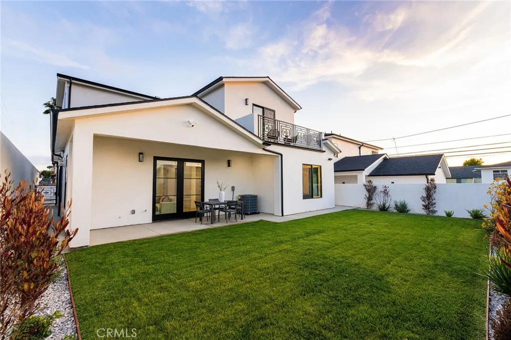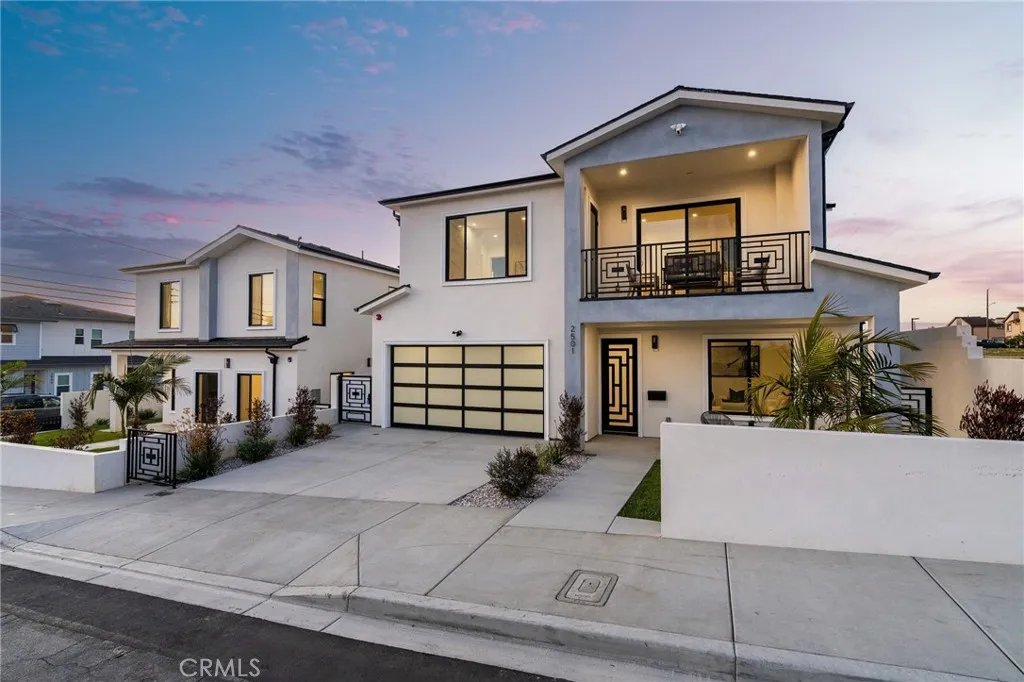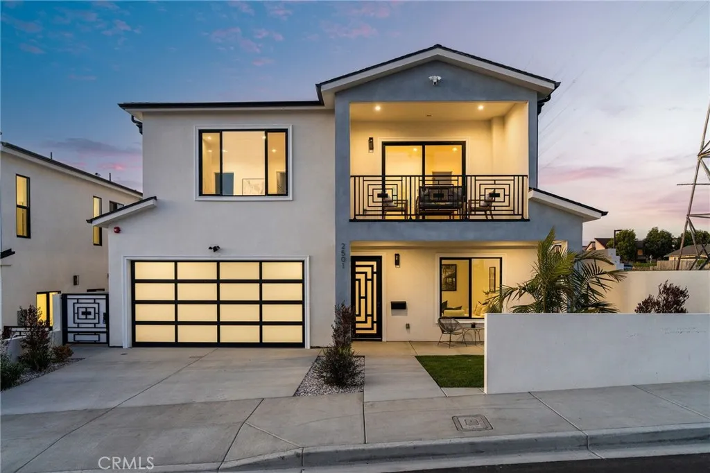 Modern design meets everyday functionality in this brand new construction home in North Redondo Beach. Offering 4 bedrooms and 4 bathrooms, the thoughtfully designed floor plan features a desirable downstairs bedroom and bath with a walk-in shower—ideal for guests, extended family, or a home office. The main level is designed for both comfort and connection, beginning with a welcoming living room just off the entry. The space flows into an open-concept family room—complete with a fireplace and French doors that open to the spacious backyard—and connects seamlessly to the kitchen and large dining area. The kitchen is beautifully appointed with quartz countertops, sleek appliances, and ample space for gathering and entertaining. Upstairs, the private primary suite offers a spacious retreat with a walk-in closet and a well-appointed bathroom featuring dual sinks, a freestanding soaking tub, and a walk-in shower. Two additional upstairs bedrooms each include their own en-suite bathrooms, and all bedrooms feature private balconies, enhancing the sense of space and creating a true retreat. A large backyard completes the home, offering ample space for outdoor entertaining, play, or future customization—perfectly suited for enjoying the South Bay lifestyle. Additional features include air conditioning throughout, security cameras, and convenient main-level laundry.