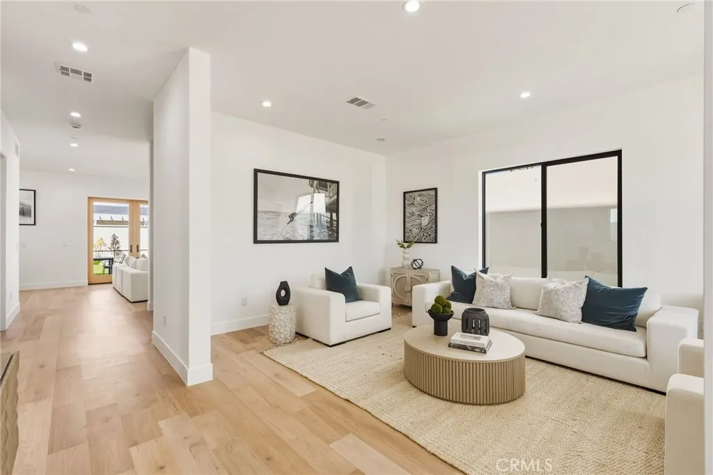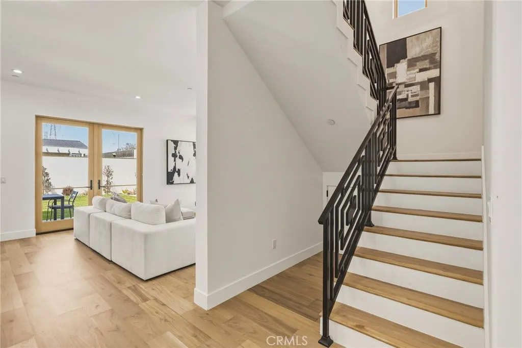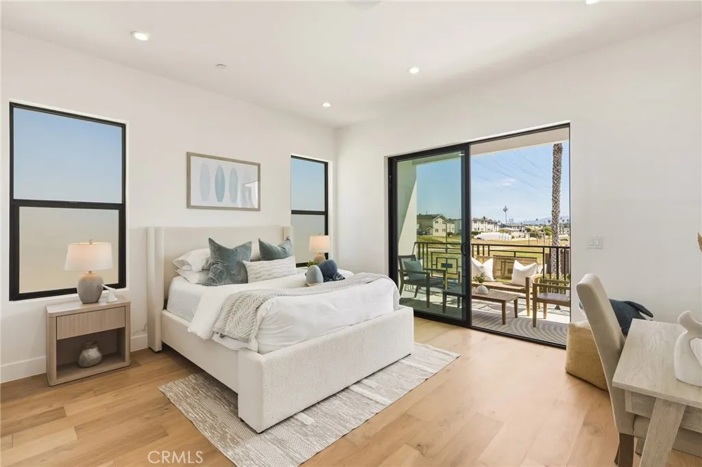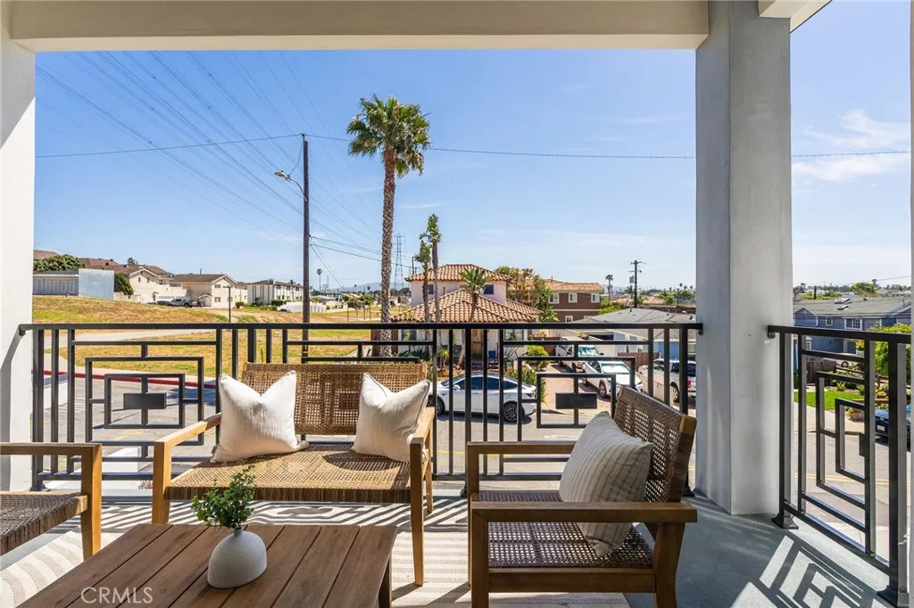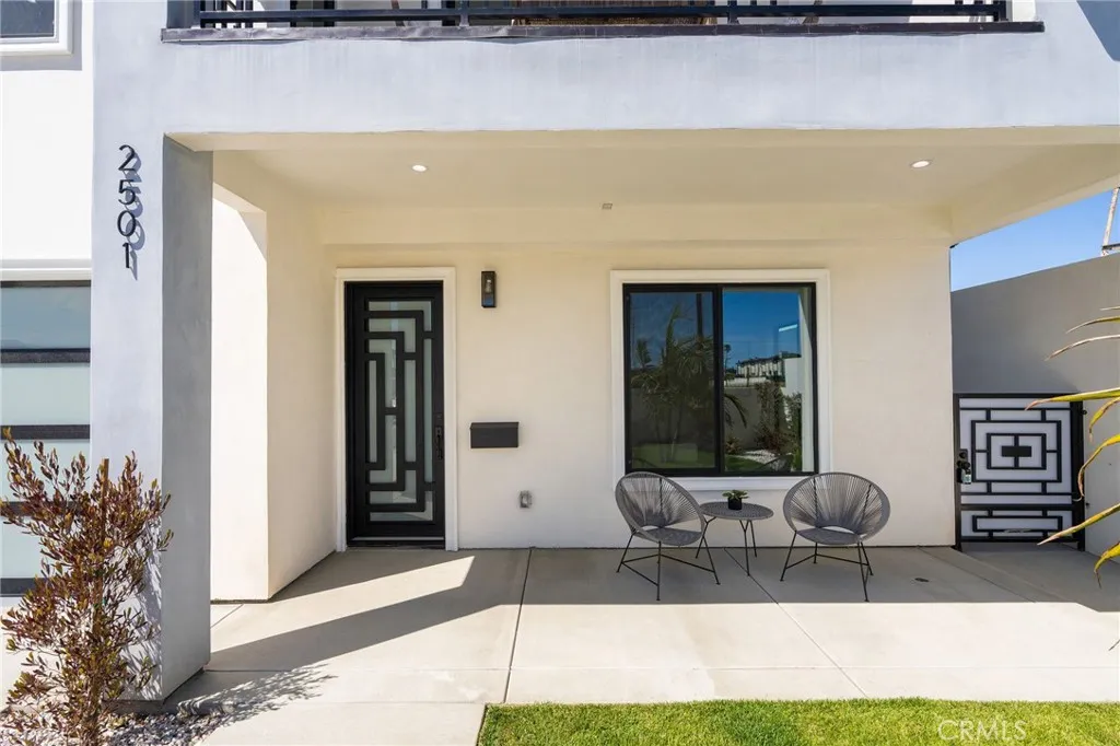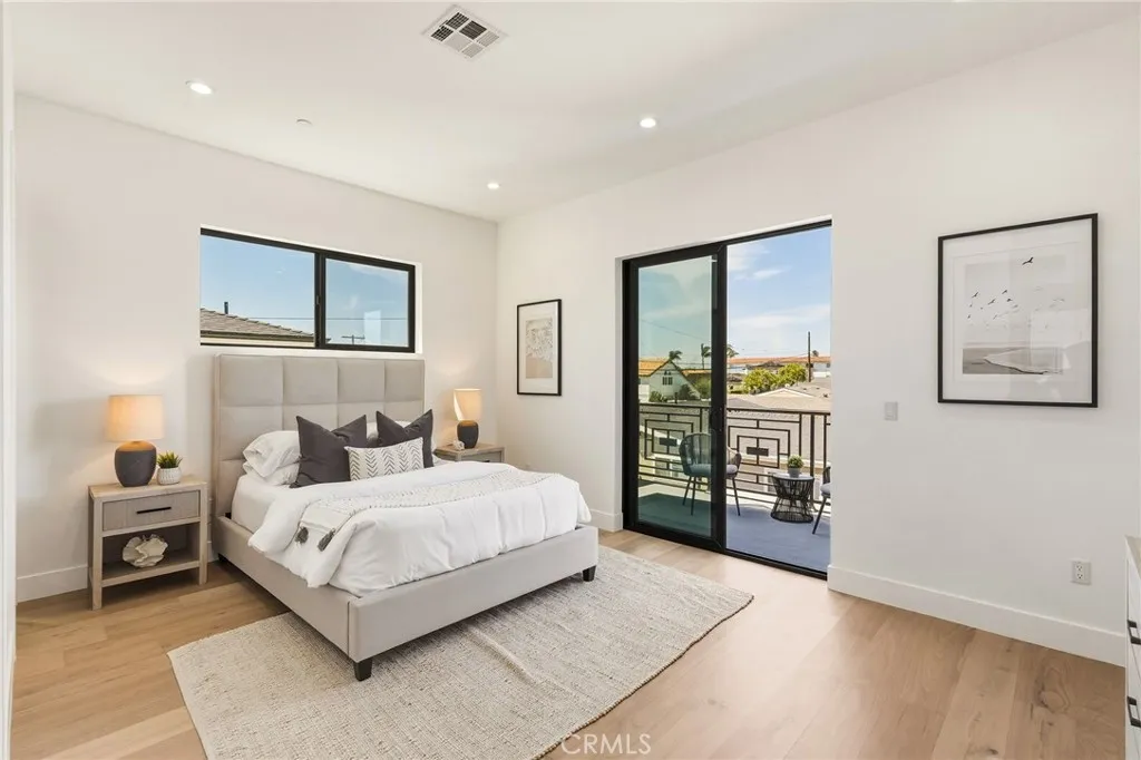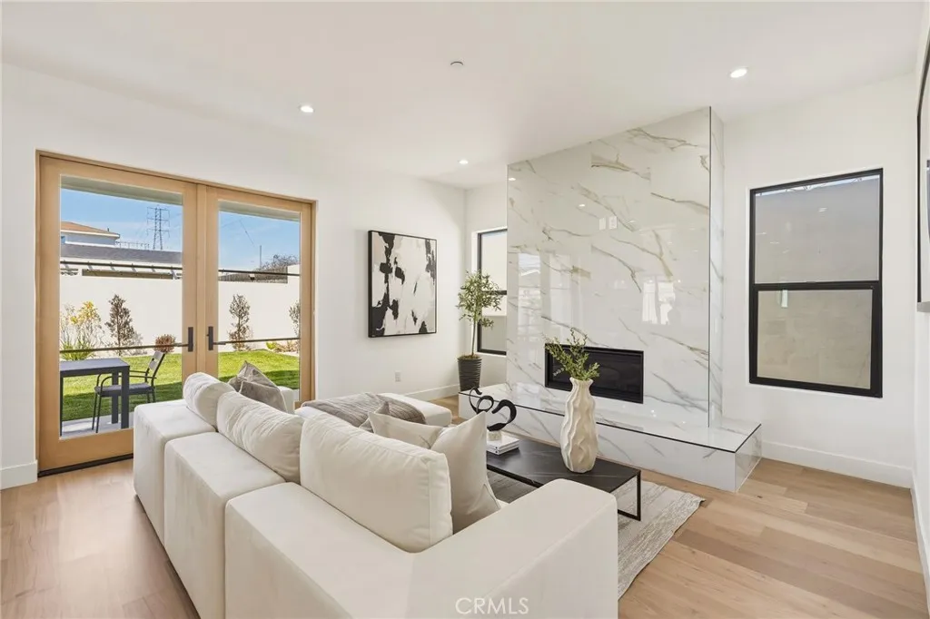 Modern design meets everyday functionality in this brand new construction home in North Redondo Beach. Offering 4 bedrooms and 4 bathrooms, the thoughtfully designed floor plan features a desirable downstairs bedroom and bath with a walk-in shower—ideal for guests, extended family, or a home office. The main level is designed for both comfort and connection, beginning with a welcoming living room just off the entry. The space flows into an open-concept family room—complete with a fireplace and French doors that open to the spacious backyard—and connects seamlessly to the kitchen and large dining area. The kitchen is beautifully appointed with quartz countertops, sleek appliances, and ample space for gathering and entertaining. Upstairs, the private primary suite offers a spacious retreat with a walk-in closet and a well-appointed bathroom featuring dual sinks, a freestanding soaking tub, and a walk-in shower. Two additional upstairs bedrooms each include their own en-suite bathrooms, and all bedrooms feature private balconies, enhancing the sense of space and creating a true retreat. A large backyard completes the home, offering ample space for outdoor entertaining, play, or future customization—perfectly suited for enjoying the South Bay lifestyle. Additional features include air conditioning throughout, security cameras, and convenient main-level laundry.