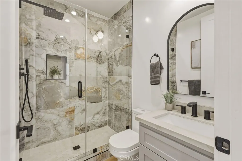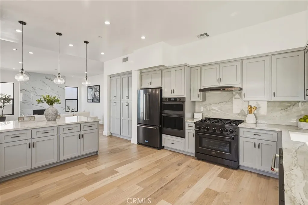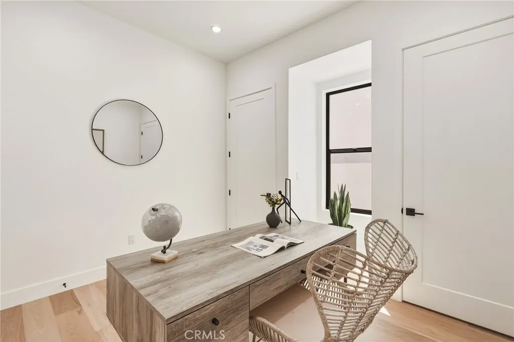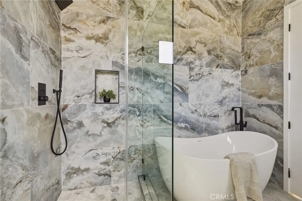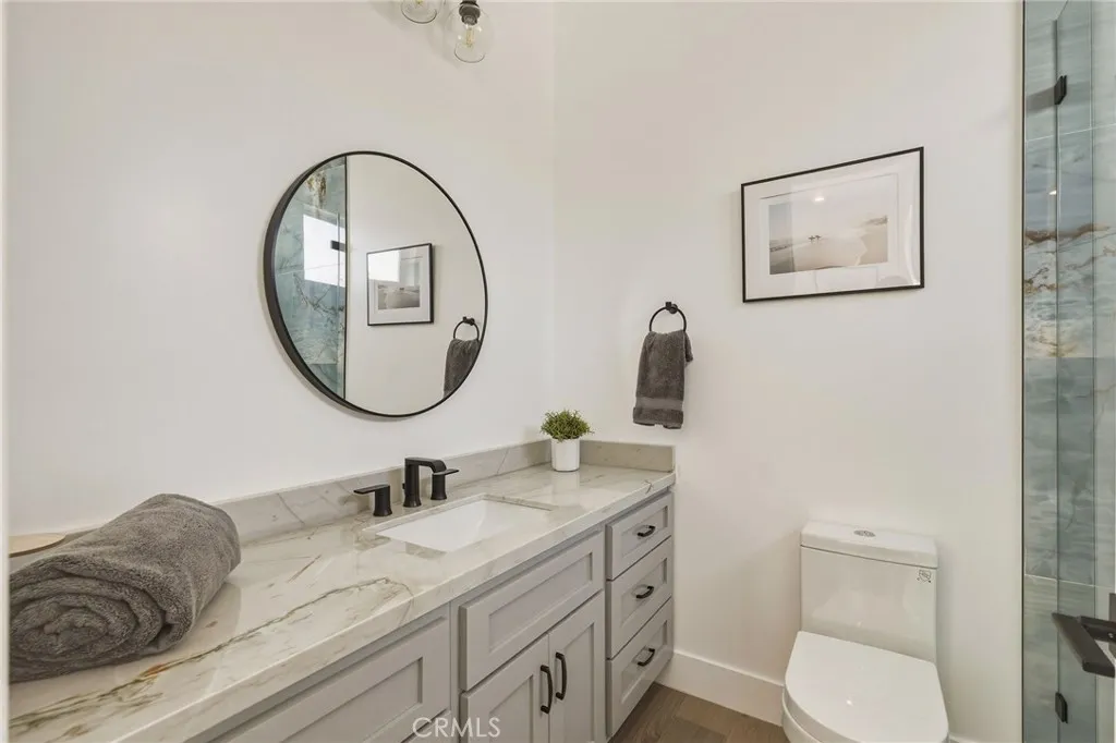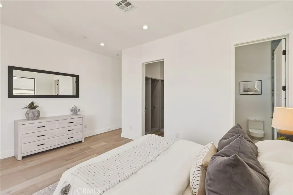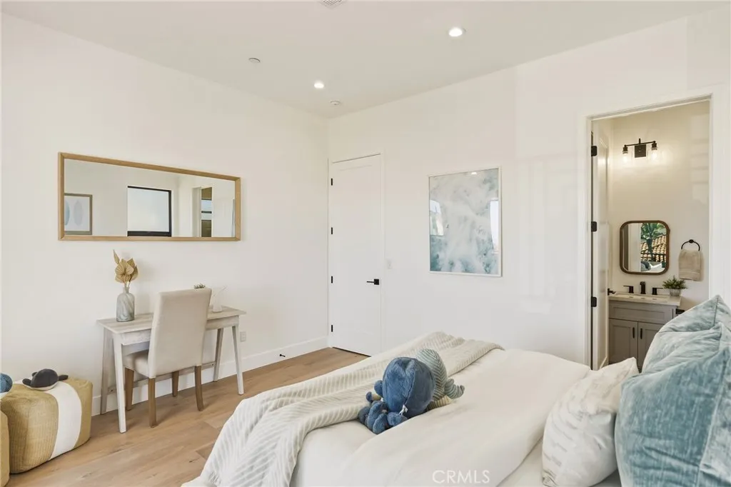 Modern design meets everyday functionality in this brand new construction home in North Redondo Beach. Offering 4 bedrooms and 4 bathrooms, the thoughtfully designed floor plan features a desirable downstairs bedroom and bath with a walk-in shower—ideal for guests, extended family, or a home office. The main level is designed for both comfort and connection, beginning with a welcoming living room just off the entry. The space flows into an open-concept family room—complete with a fireplace and French doors that open to the spacious backyard—and connects seamlessly to the kitchen and large dining area. The kitchen is beautifully appointed with quartz countertops, sleek appliances, and ample space for gathering and entertaining. Upstairs, the private primary suite offers a spacious retreat with a walk-in closet and a well-appointed bathroom featuring dual sinks, a freestanding soaking tub, and a walk-in shower. Two additional upstairs bedrooms each include their own en-suite bathrooms, and all bedrooms feature private balconies, enhancing the sense of space and creating a true retreat. A large backyard completes the home, offering ample space for outdoor entertaining, play, or future customization—perfectly suited for enjoying the South Bay lifestyle. Additional features include air conditioning throughout, security cameras, and convenient main-level laundry.