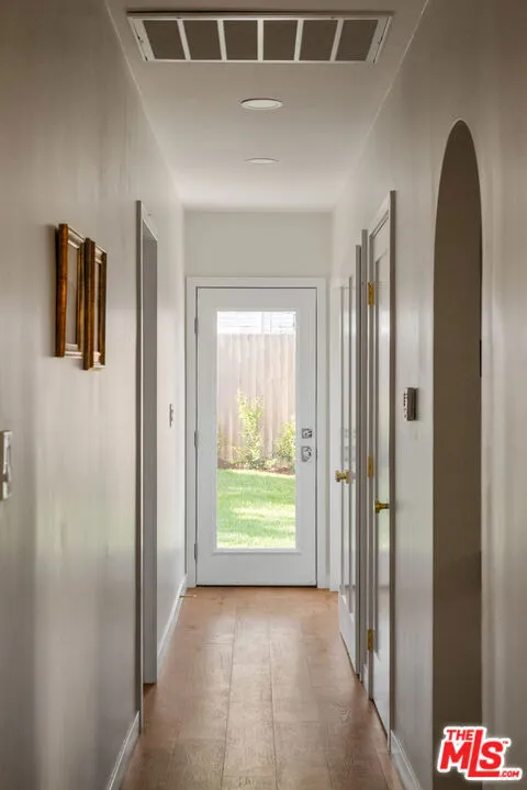 On a tree-lined View Heights street, this reimagined storybook bungalow wraps everyday life in soft light, arched passages, and garden views. Step through the curved wood front door into a living room framed by diamond-pane windows, where sunlight pours across warm wood floors and a layered, intimate palette that feels equal parts gallery and gathering space.The heart of the home is a custom kitchen and dining suite, joined by an elegant archway and anchored by a long stone island made for lingering over late-night conversations. Rich wood cabinetry, brass accents, and a built-in dining bench create a quietly luxurious backdrop for everything from weeknight pasta to celebratory dinners. Three tranquil bedroomsincluding a dreamy primary that opens directly to the yardoffer restful retreats, with airy walls, sculptural lighting, and soft textures that invite you to slow down.In the spa-like bath, deep green paneling, brass fixtures, and an arched, zellige-tiled tub niche turn daily routines into candlelit rituals. Outside, an expansive lawn and modern stone-and-gravel patio flow seamlessly from the interior, creating a private outdoor living room for golden-hour cocktails, barefoot play, or quiet mornings with coffee beneath the trees. Thoughtful upgradesincluding new roofing, windows, systems, and a fully reimagined kitchen and bathsbring ease and longevity to the home's romantic character, while a finished two-car garage and fresh landscaping complete this polished View Heights retreat. So close to Somerville, Jon + Vinny's, Two Hommes, Hilltop Coffee, Sunday Gravy and the booming South L.A. commercial corridor. Easy access to LAX, the 10 and 405 freeways and a quick jump up La Brea to center city. Welcome to your new retreat!
