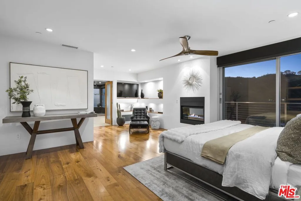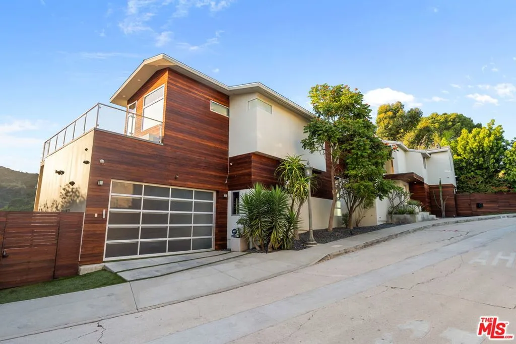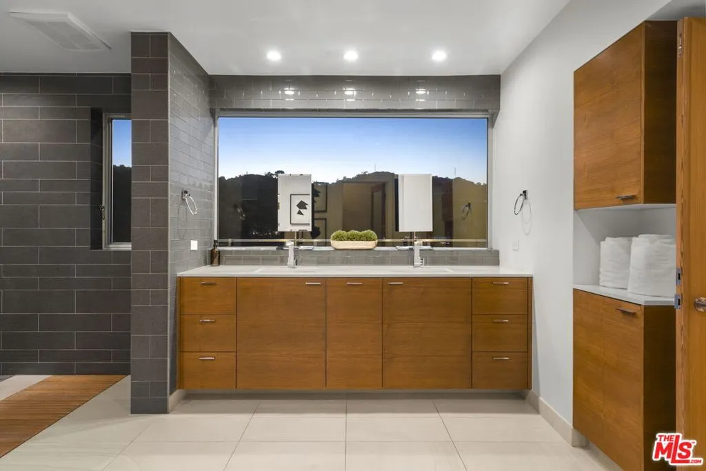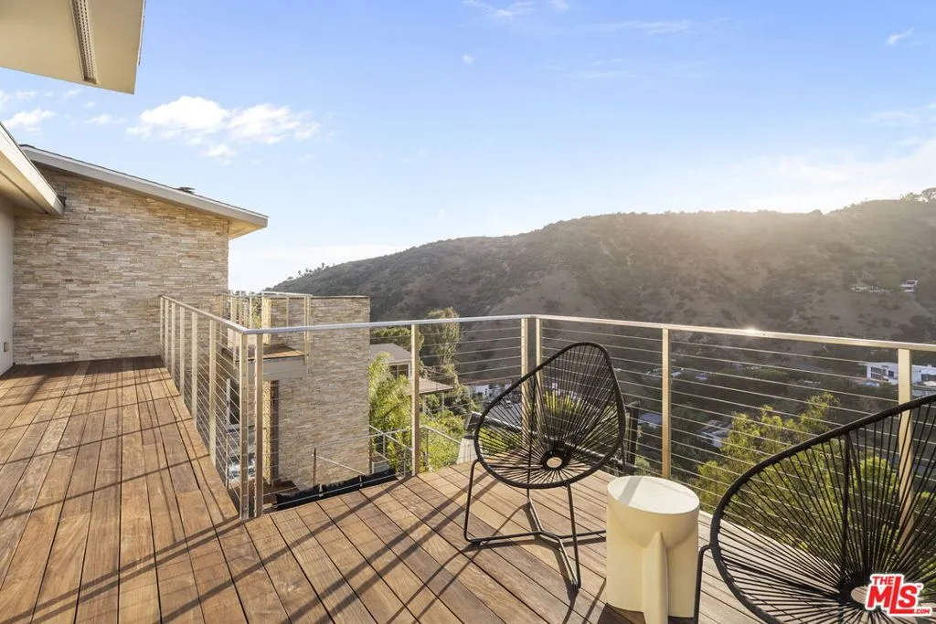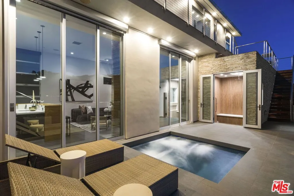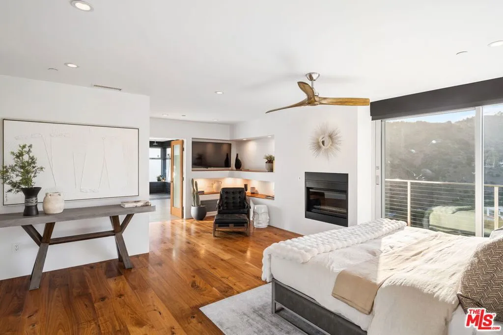 Positioned high above the canyon in the Hollywood Hills, this striking contemporary residence delivers the scale, presence, and seamless indoor-outdoor lifestyle expected at the upper tier of the market. Architecturally intentional in its design and further elevated by the current owners through targeted enhancements, the home offers a level of livability and entertaining capacity that meaningfully distinguishes it from its peers. Walls of Fleetwood stacking and pocketing glass sliders define the experience, dissolving boundaries between interior living spaces and expansive terraces that capture sweeping canyon views from nearly every room. A six-panel Fleetwood system at the main level disappears entirely, transforming the home into a true extension of its surroundings and creating a resort-like environment equally suited for intimate evenings or large-scale gatherings. The dining room, anchored by a custom inlaid wood panel wall, sits at the edge of home featuring floor-to-ceiling windows that create the sensation of floating above the canyon while you dine. Across the home in the media room, complete with a built-in bar and dramatic high ceilings, this same custom woodwork, paired with integrated slate finishes that extend from inside to out, introduces warmth and permanence grounding the modern architecture in a refined, timeless material palette. The media room, complete with a built-in bar and dramatic openings, serves as a central entertaining hub with direct access to the sunken plunge pool and spa, as well as the surrounding decks. A newly added steam room introduces a spa-caliber experience, positioned with direct access to the main deck and oversized hot tub designed to function as both a rapid-heat spa and a cold plunge. The transition between these elements creates a cohesive indoor-outdoor wellness environment. From the spa level, an exterior staircase leads directly to the primary suite, where a Japanese-inspired soaking tub and expansive walk-in rain shower complete the experience. Outdoor living has been executed with precision and intention. Multiple terraces, a high-output fire pit, and ceiling mounted heating elements allow for year-round usability of the outdoor spaces. A professionally installed motorized retractable screen system encloses the large Fleetwood openings at the touch of a button, preserving the open-air experience while enhancing comfort, climate control, and functionality for the days you prefer to stay inside while still taking in the fresh breeze. Smart home integration implemented by the current owners includes Lutron lighting, distributed audio, MyQ garage control, AquaLink spa management, ADT security hardware, numerous closed circuit security cameras, DoorBird, Shade Store motorized shades, and four-zone climate control (two gas and two electric systems). Additional upgrades include tankless water heaters, a new roof (2025), Toto heated bidet toilets on both levels, custom garage cabinetry, and multiple 220V charging outlets. Completed in 2023, the ADU expands the property's functionality with a separate entrance, full kitchen, laundry, and a 120-inch 4K projection system. A three-panel Fleetwood sliding panel system with a motorized retractable screen connects the space to the outdoors seamlessly, creating a flexible, design-forward environment ideal for guests, extended stays, or income potential. Both the main kitchen and the ADU feature Wolf and other luxury appliances and Fisher & Paykel dual-drawer dishwashers, reflecting a consistent level of finish throughout. The ADU further includes its own washer and dryer along with a full-size EuroCave wine refrigerator. With its combination of architectural scale, premium materials, and thoughtfully executed enhancements, this residence offers a level of presence, functionality, and experiential living that firmly supports its position within the upper echelon of the Hollywood Hills market.