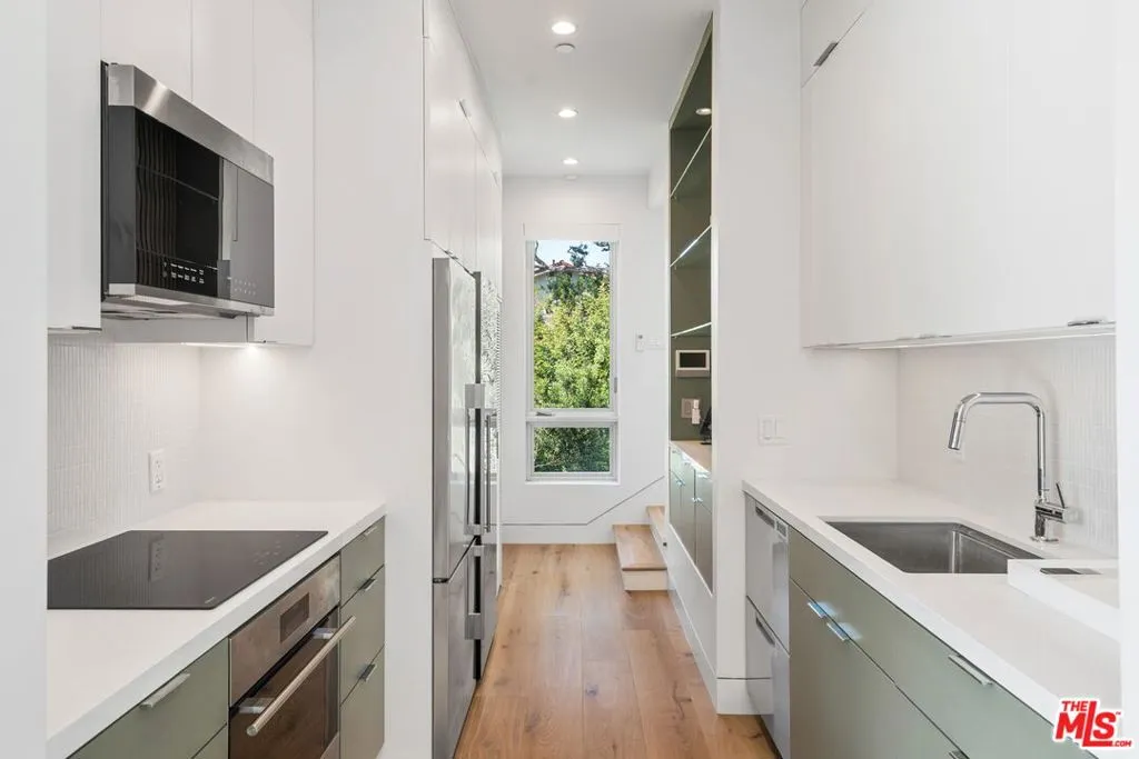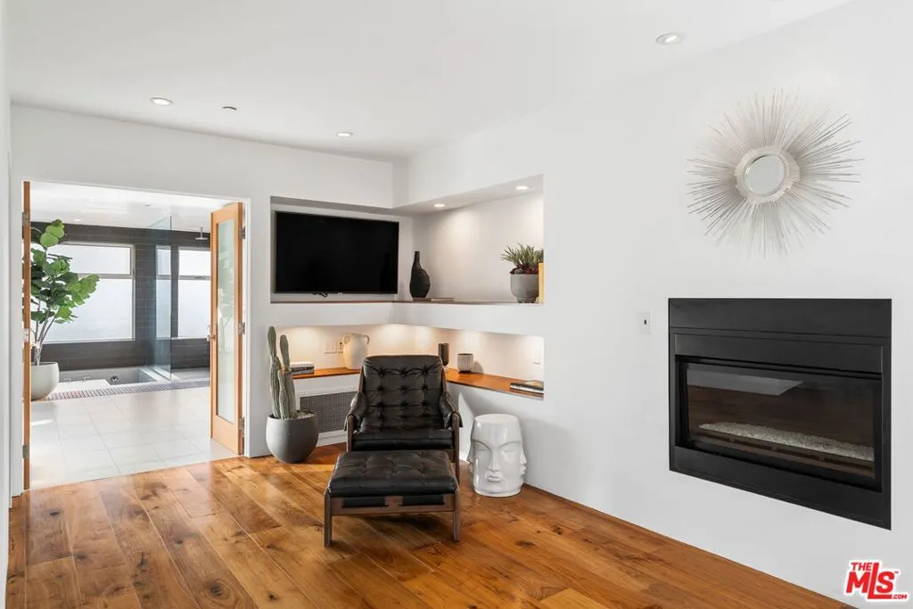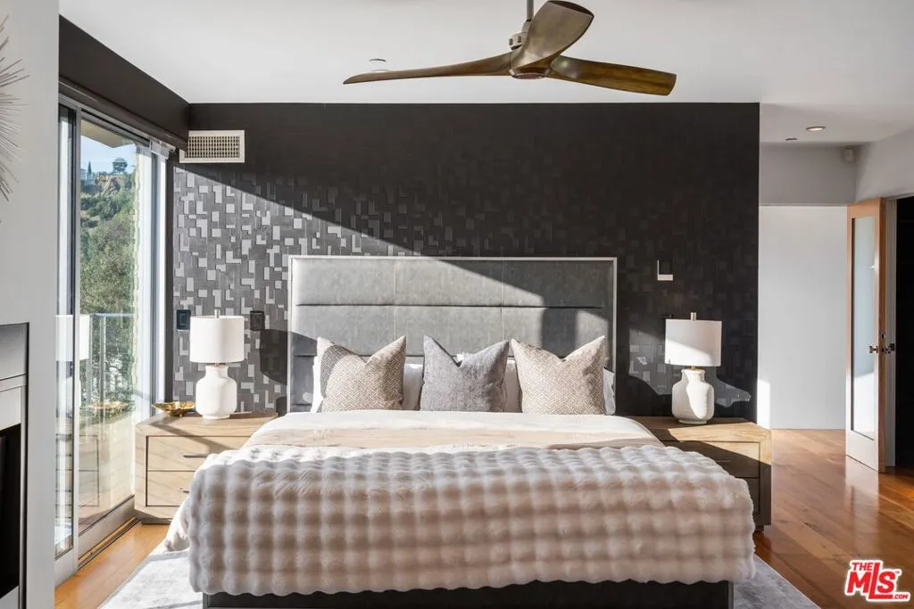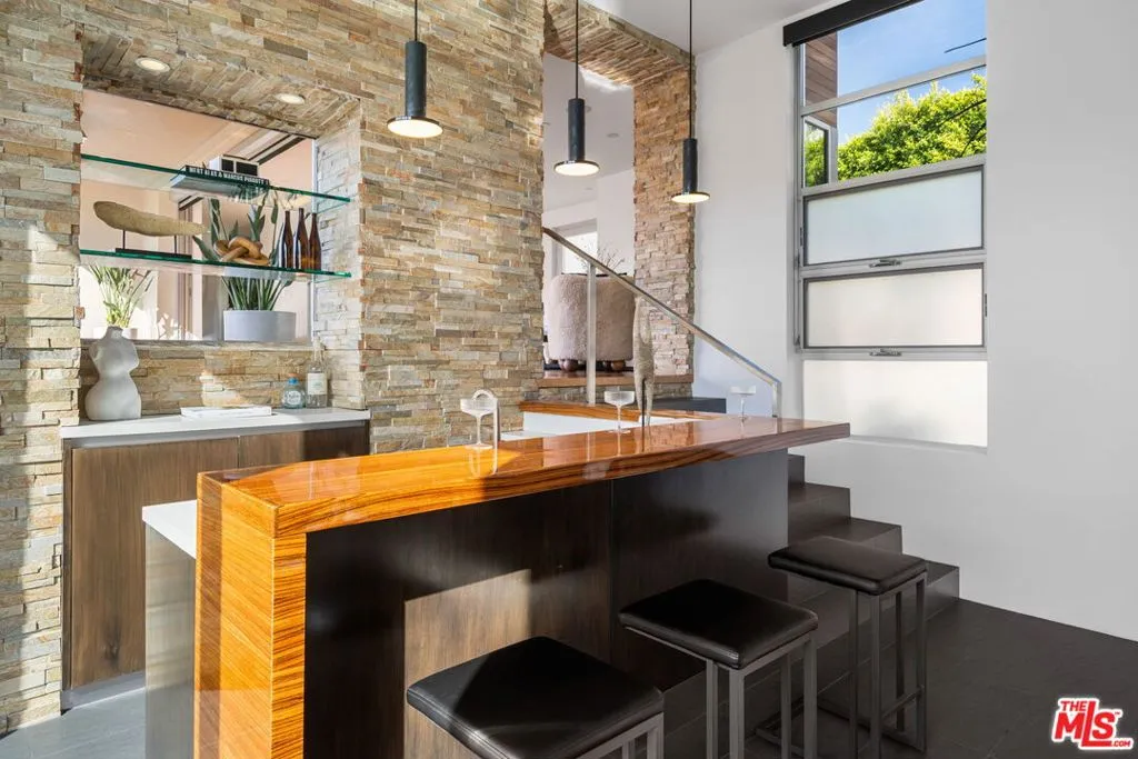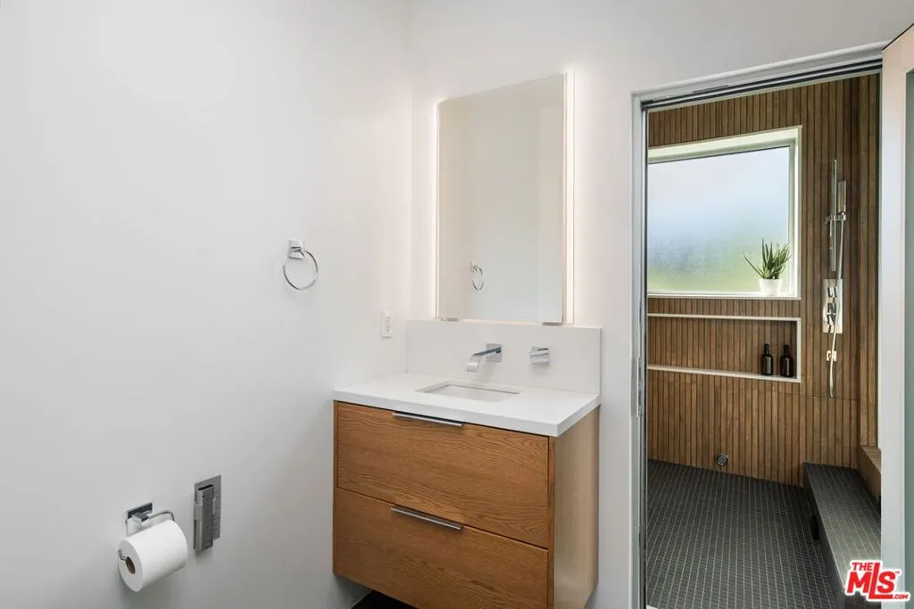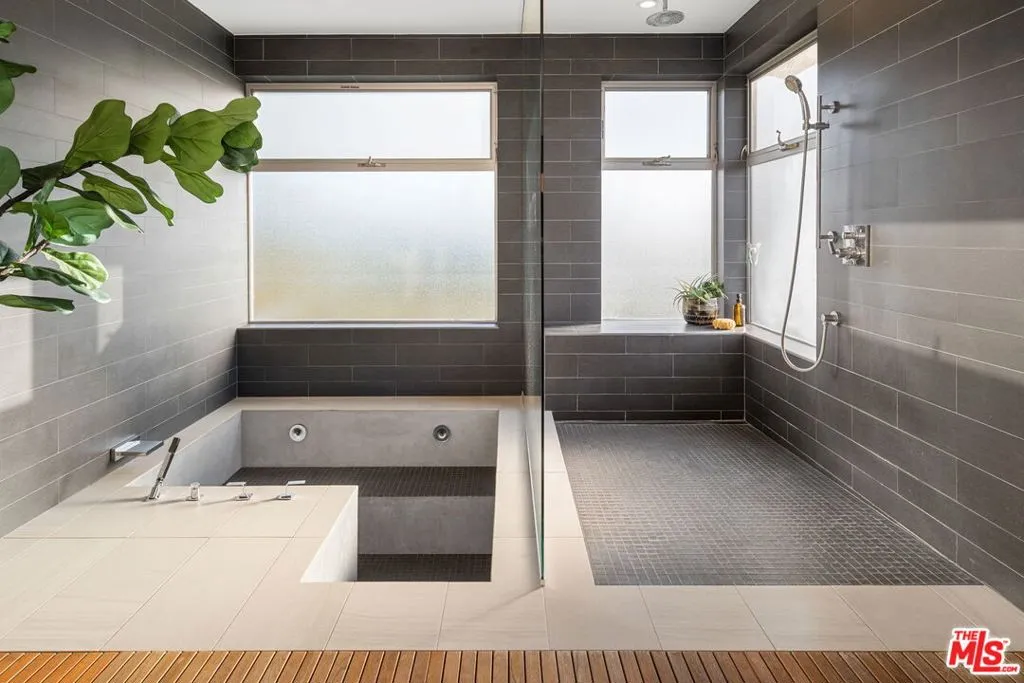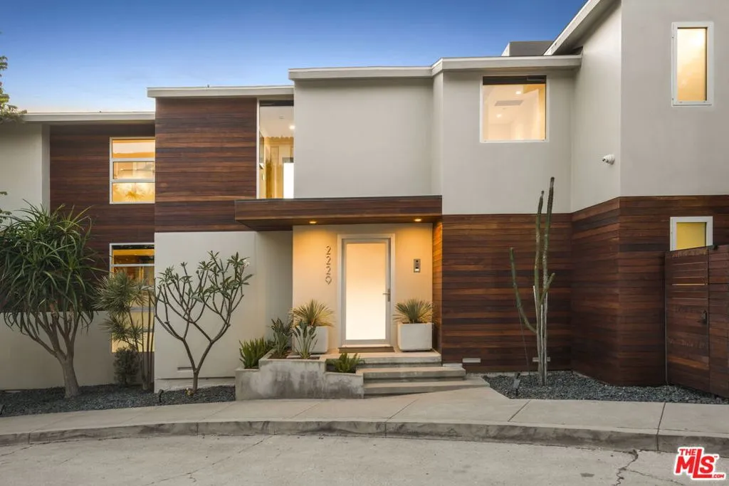 Positioned high above the canyon in the Hollywood Hills, this striking contemporary residence delivers the scale, presence, and seamless indoor-outdoor lifestyle expected at the upper tier of the market. Architecturally intentional in its design and further elevated by the current owners through targeted enhancements, the home offers a level of livability and entertaining capacity that meaningfully distinguishes it from its peers. Walls of Fleetwood stacking and pocketing glass sliders define the experience, dissolving boundaries between interior living spaces and expansive terraces that capture sweeping canyon views from nearly every room. A six-panel Fleetwood system at the main level disappears entirely, transforming the home into a true extension of its surroundings and creating a resort-like environment equally suited for intimate evenings or large-scale gatherings. The dining room, anchored by a custom inlaid wood panel wall, sits at the edge of home featuring floor-to-ceiling windows that create the sensation of floating above the canyon while you dine. Across the home in the media room, complete with a built-in bar and dramatic high ceilings, this same custom woodwork, paired with integrated slate finishes that extend from inside to out, introduces warmth and permanence grounding the modern architecture in a refined, timeless material palette. The media room, complete with a built-in bar and dramatic openings, serves as a central entertaining hub with direct access to the sunken plunge pool and spa, as well as the surrounding decks. A newly added steam room introduces a spa-caliber experience, positioned with direct access to the main deck and oversized hot tub designed to function as both a rapid-heat spa and a cold plunge. The transition between these elements creates a cohesive indoor-outdoor wellness environment. From the spa level, an exterior staircase leads directly to the primary suite, where a Japanese-inspired soaking tub and expansive walk-in rain shower complete the experience. Outdoor living has been executed with precision and intention. Multiple terraces, a high-output fire pit, and ceiling mounted heating elements allow for year-round usability of the outdoor spaces. A professionally installed motorized retractable screen system encloses the large Fleetwood openings at the touch of a button, preserving the open-air experience while enhancing comfort, climate control, and functionality for the days you prefer to stay inside while still taking in the fresh breeze. Smart home integration implemented by the current owners includes Lutron lighting, distributed audio, MyQ garage control, AquaLink spa management, ADT security hardware, numerous closed circuit security cameras, DoorBird, Shade Store motorized shades, and four-zone climate control (two gas and two electric systems). Additional upgrades include tankless water heaters, a new roof (2025), Toto heated bidet toilets on both levels, custom garage cabinetry, and multiple 220V charging outlets. Completed in 2023, the ADU expands the property's functionality with a separate entrance, full kitchen, laundry, and a 120-inch 4K projection system. A three-panel Fleetwood sliding panel system with a motorized retractable screen connects the space to the outdoors seamlessly, creating a flexible, design-forward environment ideal for guests, extended stays, or income potential. Both the main kitchen and the ADU feature Wolf and other luxury appliances and Fisher & Paykel dual-drawer dishwashers, reflecting a consistent level of finish throughout. The ADU further includes its own washer and dryer along with a full-size EuroCave wine refrigerator. With its combination of architectural scale, premium materials, and thoughtfully executed enhancements, this residence offers a level of presence, functionality, and experiential living that firmly supports its position within the upper echelon of the Hollywood Hills market.