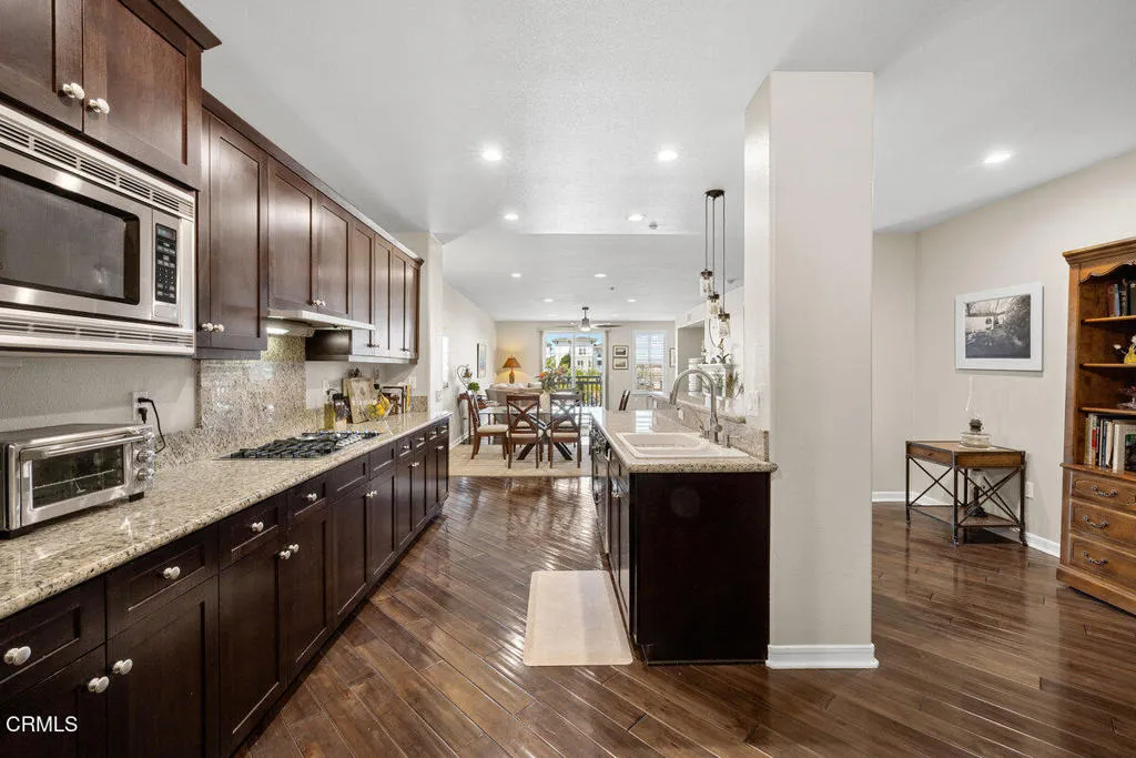 Live the Waterfront Lifestyle on Guard-Gated Coral Island at SeabridgeDiscover the best of coastal living behind the 24-hour guarded gates of Coral Island in Port Marluna at Seabridge, nestled within the scenic Channel Islands Harbor. This sophisticated waterfront condominium offers exceptional water views and elegant upgrades designed for both comfort and style.The gourmet kitchen features custom wood cabinetry, granite countertops, a breakfast nook, and a kitchen bar that comfortably seats four. Outfitted with top-of-the-line stainless steel built-in appliances, the kitchen opens seamlessly to the dining room and spacious living area, where hardwood flooring and a cozy fireplace create a warm, inviting atmosphere. From here, step onto your private deck and savor breathtaking views of the harbor.The primary suite is a serene retreat, complete with stunning water views and direct access to the deck. The spa-inspired primary bath offers dual vanities, a soaking tub, separate shower, and abundant custom cabinetry.As a resident of Seabridge, you'll enjoy exclusive access to the private clubhouse with resort-style amenities, including a pool, spa, state-of-the-art fitness center, outdoor fireplaces, plush seating, and an outdoor kitchen for entertaining. Indoors, the clubhouse boasts a caterer's kitchen, reading room, and expansive gathering spaces reserved for homeowners.Beyond your doorstep, explore picturesque walking and exercise paths around the island, stroll to the Seabridge shopping center, or head out on the water for boating, kayaking, surfing, whale watching, or a quick cruise to one of the harbor's many waterfront restaurants. The beach is just a short distance away, offering the perfect balance between resort-style living and everyday convenience.This home offers more than just a residence -- it's a lifestyle, whether you're seeking a primary waterfront sanctuary or an exquisite second home!