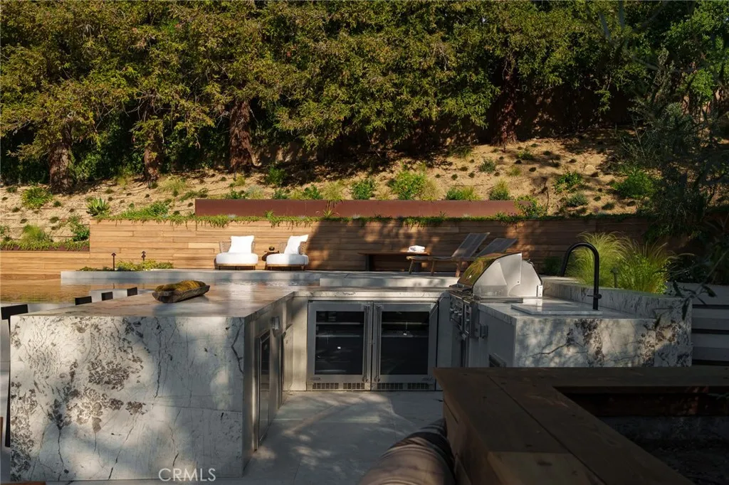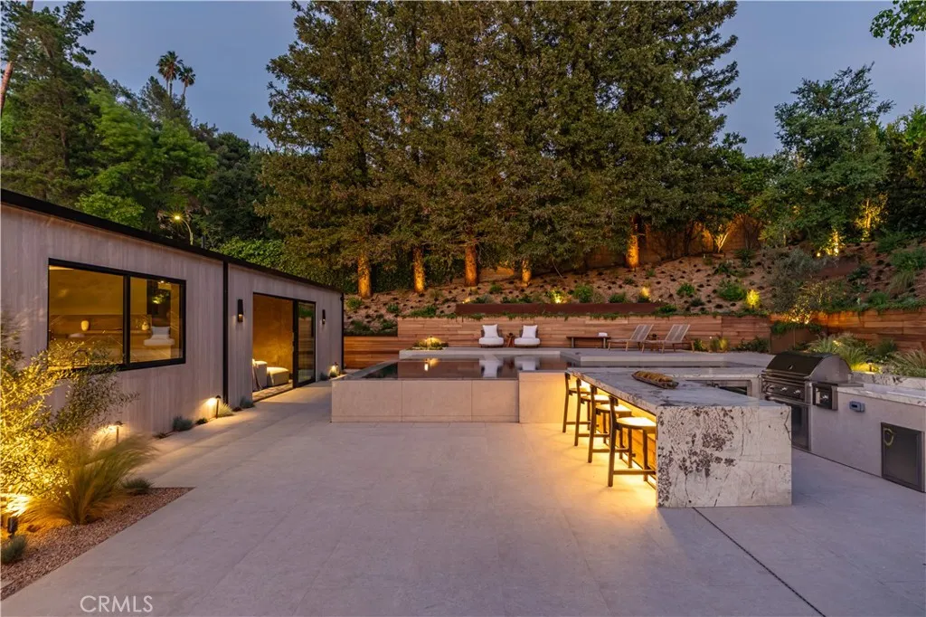 Serenity patiently awaits at 3187 Oakdell Road, a truly one-of-one estate designed with deep reverence for high-end amenities and understated sophistication. Set within the coveted enclave of Fryman Canyon, this single-story contemporary residence—taken down to the studs and completely reimagined—blends clean architectural lines with warm, premium materials to create a sanctuary of "Zen" luxury. Spanning approximately 6,500 square feet, the thoughtfully curated interiors offer a seamless connection to the serene canyon surroundings. Expansive walls of glass fill the home with natural light while framing tranquil hillside views. The open-concept floor plan features a dramatic chef's kitchen anchored by sculptural stone countertops and skylit ceilings, flowing effortlessly into living spaces defined by custom millwork and rich stone finishes. The home is a masterclass in modern wellness, equipped with Ketra circadian lighting and an advanced Delos air quality system. The primary suite serves as a peaceful, resort-like retreat, while additional features include a private theater, a dedicated office, and 7.5 spa-inspired baths. Outdoor & Location Highlights: • Exterior: An infinity-edge pool and spa, fully equipped outdoor kitchen, and multiple lounge spaces surrounded by mature, lush landscaping. • Lifestyle: Moments from the upscale dining and shopping at the new Sportsmen’s Lodge center, and offering seamless access to Beverly Hills and the most prominent luxury corridors in Los Angeles. This estate delivers a rare blend of architectural integrity, modern technology, and effortless indoor-outdoor living. It is more than a home; it is a refined environment curated for a life of tranquility.