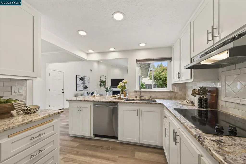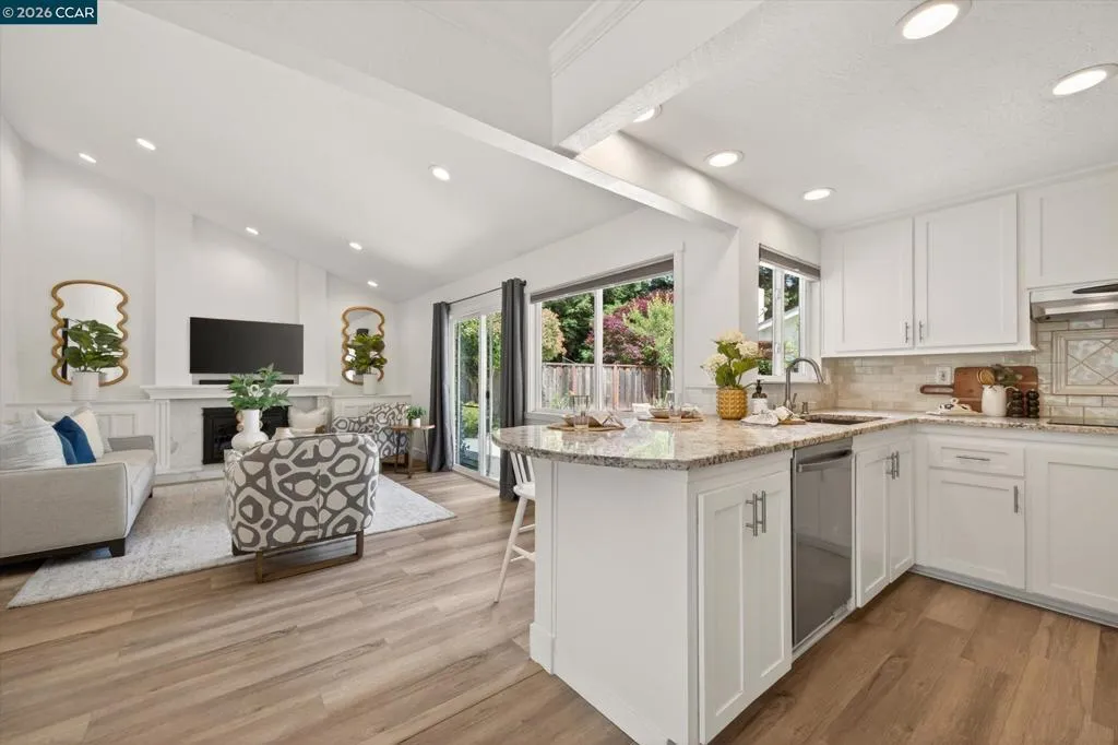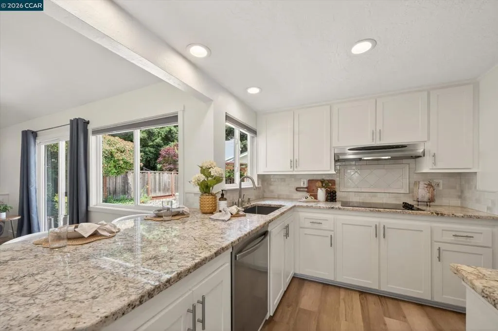 Perfect blend of comfort, style, and location in Danville Station. Beautifully updated single-story home sits on a prime corner lot on a quiet cul-de-sac. Bright, open floor plan with soaring vaulted ceilings that create an airy, spacious feel. Updated kitchen with white cabinets, granite counters and stainless steel appliances, seamlessly flows into the family great room — ideal for everyday living and effortless entertaining. A formal dining area and separate living room provide valuable extra space. Luxury vinyl plank flooring runs throughout the main living areas, complemented by plush carpet in all four bedrooms. The primary suite boasts a luxurious updated bath with a large walk-in shower, while the hall bath offers a convenient tub-shower combination. Outside, enjoy your private, low-maintenance backyard complete with a charming pergola, a generous lawn area, and plenty of room to park an RV or boat. A large side yard offers exciting potential — easily enclosed for additional living space, storage, or even a future ADU. Owned Solar keeps your electricity bill near zero most of the year. Danville Station is one of the most desired communities with a large community pool, tennis courts, playground and numerous greenbelts. Blocks to Osage Park, Charlotte Wood middle school and John Baldwin elementary. Open Sat & Sun 1:00-4:00pm