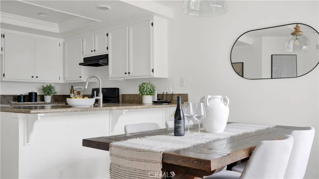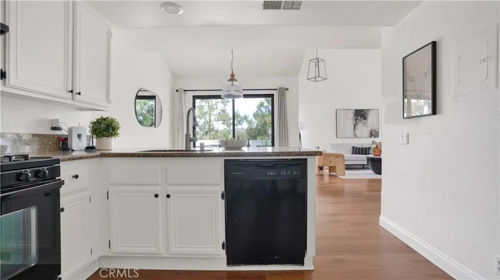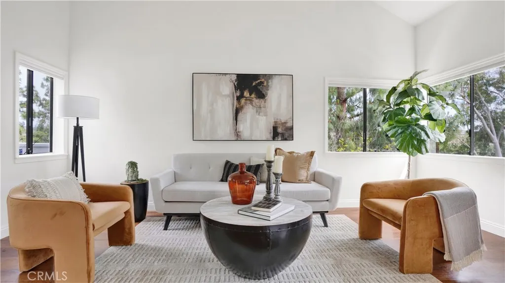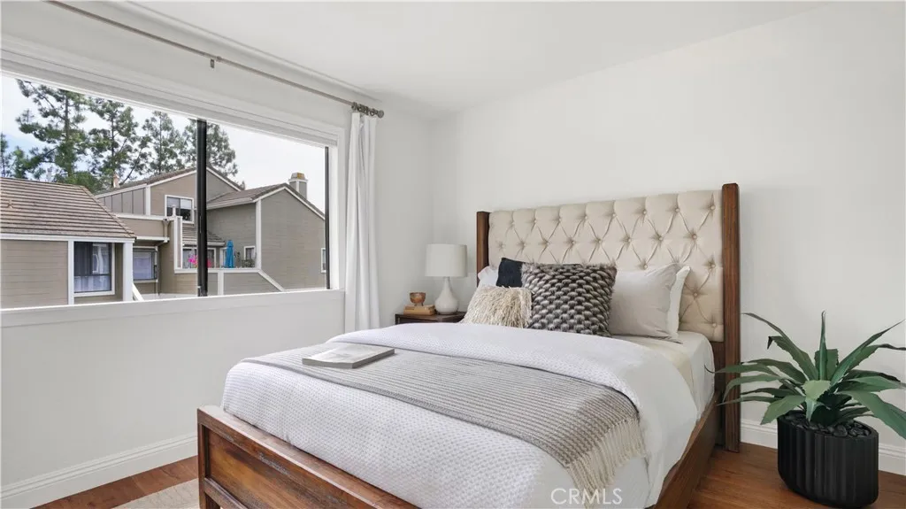 Welcome to a charming two story, corner unit with no one above or below that features 2 bedrooms, 2 bathrooms, 991 square feet of living space, a main living area with a soaring cathedral ceiling and a detached 1 car garage. Located in the tree lined community of Heather Ridge, the home's window placement captures plenty of natural light from its south by southeast orientation. As you enter through the front gate, a deck with room for outdoor seating and a gas stub out is ready to service a portable fire pit table or BBQ to create an ideal space to relax and enjoy our Southern California weather. Pass through the front door to newer LVP flooring, custom baseboards, vaulted ceilings and an open floor plan. The kitchen's location enables the cook to keep an eye on the front deck, dining and main living area due to the open floor plan. Kitchen upgrades include recessed lighting, granite countertops, a stainless steel dual-basin sink, gas range and waterline to refrigerator. The main level bedroom with remodeled ensuite bath includes a step in shower and custom vanity. Upstairs features the primary bedroom with its own cathedral ceiling, recently remodeled ensuite bath and a large closet that spans over 9 feet in length with sliding mirrored doors. Additional features & upgrades included in this amazing home are PEX piping throughout (around 2016), a newer water heater (2020), newer HVAC system (2021), bathroom remodels (2024-26), a dedicated interior laundry area and garage storage. Community features include walking paths, well maintained greenbelts, a pool, 2 spas, 2 tennis courts and a BBQ area. The Heather Ridge community is located a short walk from shopping and dining options just south of Pacific Park Drive as well as Aliso and Wood Canyon Wilderness Park where trails for hiking, running, and mountain biking abound. In less than 23 minutes you can be in Dana Point, Laguna Beach, Fashion Island, the Irvine Spectrum and more. Come see this home before it's gone!
