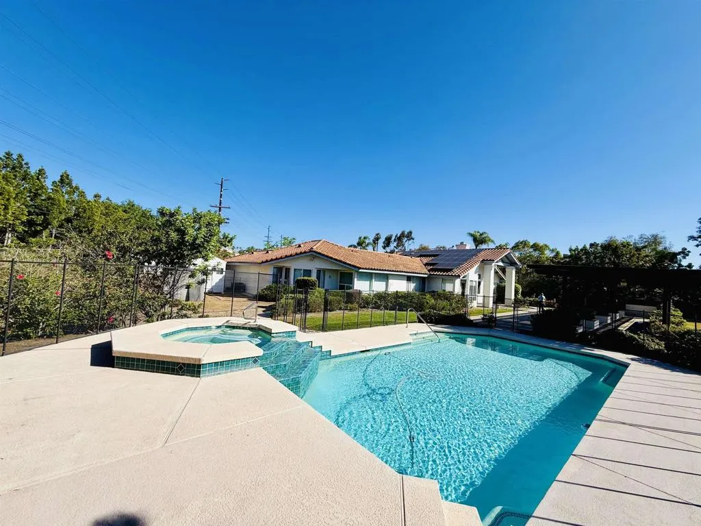 This exceptional ranch estate on prestigious Lake Poway Road presents a rare opportunity to own in one of Poway's most sought after locations. Set on 1.11 private acres with sweeping views, this beautifully maintained residence offers just under 3000 square feet with 4 spacious bedrooms and 4 bathrooms, including an expansive primary retreat with custom dual walk-in closets. Designed for effortless indoor-outdoor living, the inviting family room with fireplace flows into the kitchen and opens to spectacular resort-style grounds featuring a sparkling heated pool, spa,and multiple entertaining areas framed by stunning sunsets. Thoughtfully updated with owned Solar, newer roof, new insulation, dual HVAC systems, new luxury vinyl plank flooring, new dishwasher. 3 car garage and multiple parking space for family and friends.Trail next to the home is close to 3 miles of amazing hiking or horseback riding. Award winning Poway School district and moments away from Lake Poway recreation yet offering privacy and tranquility, this is a rare legacy property in an exceptional setting. Buyers to check all measurements and disclosures before COE.