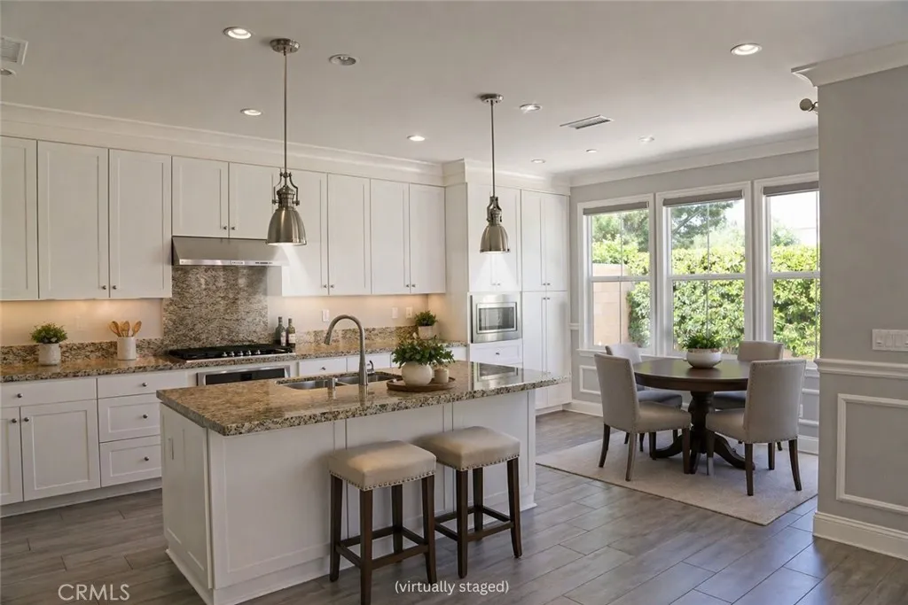 Beautifully upgraded detached home in the highly sought after Cypress Village community of Irvine, offering 1,704 square feet with 3 bedrooms, 2.5 baths, and an attached 2 car garage. Designed with a modern open concept layout, the main level features a welcoming foyer, spacious living and dining areas, a well appointed kitchen, guest powder room, and seamless access to the private rear yard and garage, creating an ideal space for everyday living and entertaining. Upstairs includes three generously sized bedrooms, two full baths, and a dedicated laundry room. The primary suite overlooks the rear yard and features a large walk in closet, dual vanities, an expansive walk in shower, and a private water closet. This turnkey home is in like new condition and showcases extensive upgrades throughout, including high grade ceramic flooring, hardwood flooring across the staircase and entire upper level, crown molding, custom baseboards, chair rail detailing, encased windows, and custom window treatments. The kitchen is equipped with granite countertops, stone backsplash, white cabinetry, and premium KitchenAid stainless steel appliances with a 5 burner cooktop with overhead range. The private rear yard is perfect for relaxing or entertaining, complete with a covered patio, mature landscaping, and an automatic irrigation system. Located in Cypress Village, residents enjoy access to scenic Jeffrey Open Space trails, resort style pools, parks, and top rated Irvine schools. Ideally situated near Irvine Spectrum, Tustin Marketplace, all major freeways, and toll roads, offering convenience to shopping, dining, and everyday amenities.