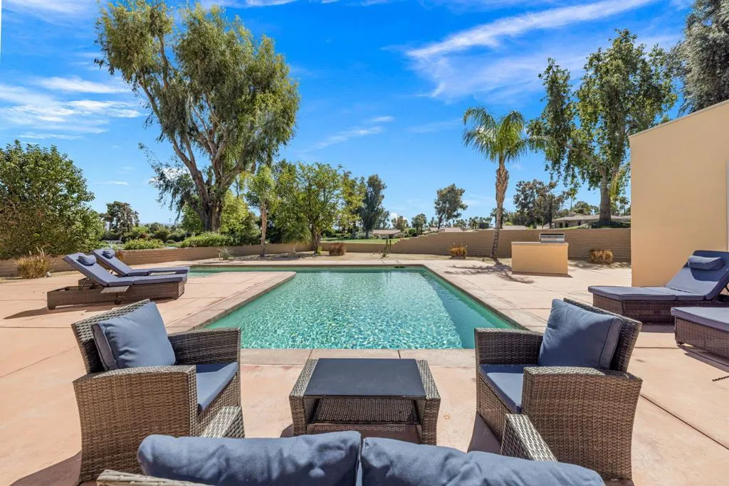 The story starts with this 1 of 12 original custom built homes. The Deserts Best Kept Secret is Avondale Golf Club. Spaciously open floor plan with great high ceilings. This Club is not just all track homes and this one is a must see. Private and beautiful gated golf course community in Palm Desert. Relax in this upgraded furnished (per inventory) 3 bedroom, 3 bathroom modern private residence. South facing, located overlooking the lake and the 10th fairway. Open floor plan, bright and light with lots of windows & sliding glass doors. Great high ceilings. Spacious living room & dining area adjacent to the kitchen. Family room/Dining room off the kitchen. Great stainless steel equipped kitchen with gas cooktop & double ovens. Huge pool and patio area with gas grill BBQ. New club ownership is creating a more exclusive environment for the member residents making golf a joy.