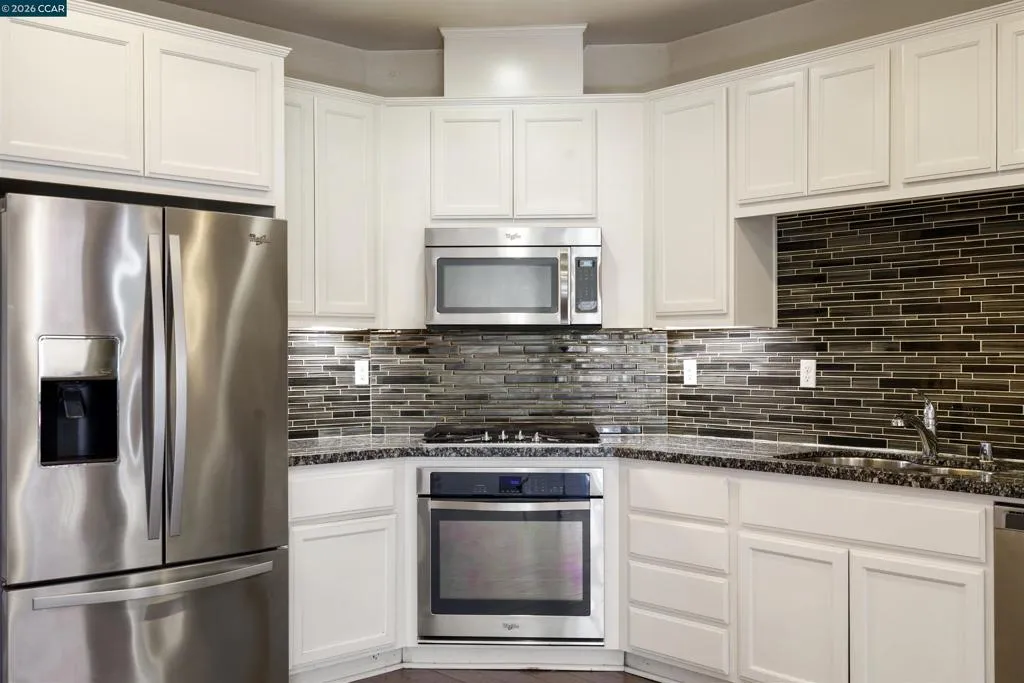 Welcome Home! Charming townhome built in 2015 with NEW carpet and fresh paint (2026). 3 bedrooms, 2.5 baths, 1386 sq ft, 2 car garage, private covered front patio, and an upstairs laundry room (includes washer/dryer). The main level offers a bright and open layout with a living/kitchen combo, garage entrance, and a 1/2 bath. The spacious kitchen has ample cabinets, granite counters, tile backsplash, recessed lighting, and includes a microwave and refrigerator. Upstairs, you'll find the primary suite including an over sized closet, dual sinks, soaking tub, tile floors and separate shower. Two guest bedrooms, a full guest bath, and the laundry room complete the upstairs. Home is conveniently located in close proximity to parks, freeways, shops and so much more. HOA is only $270 monthly