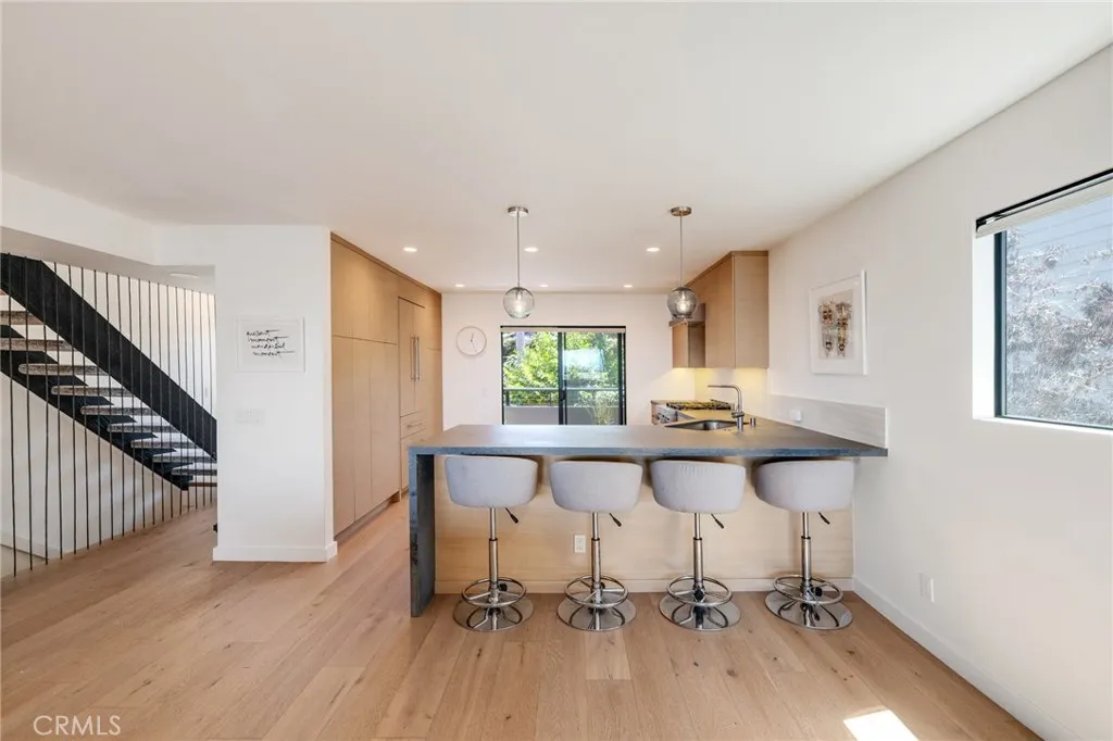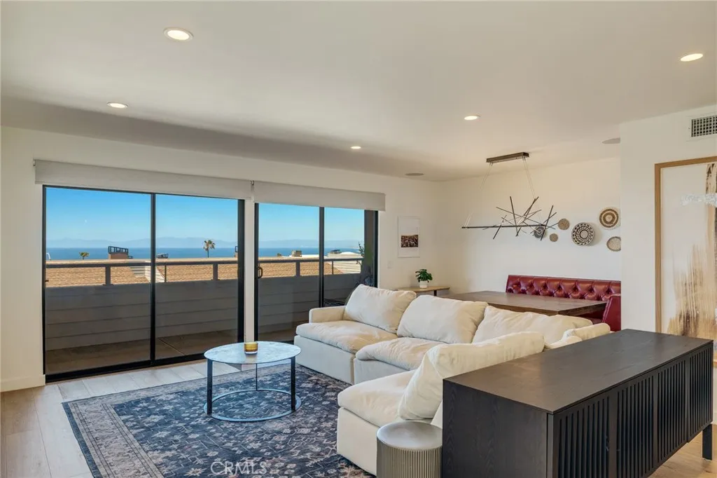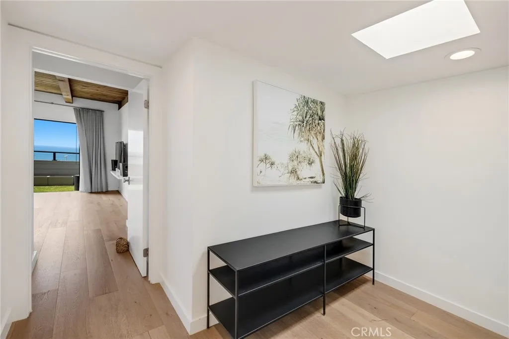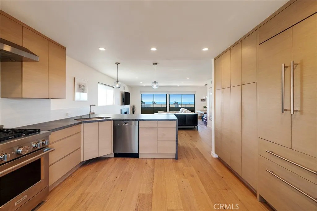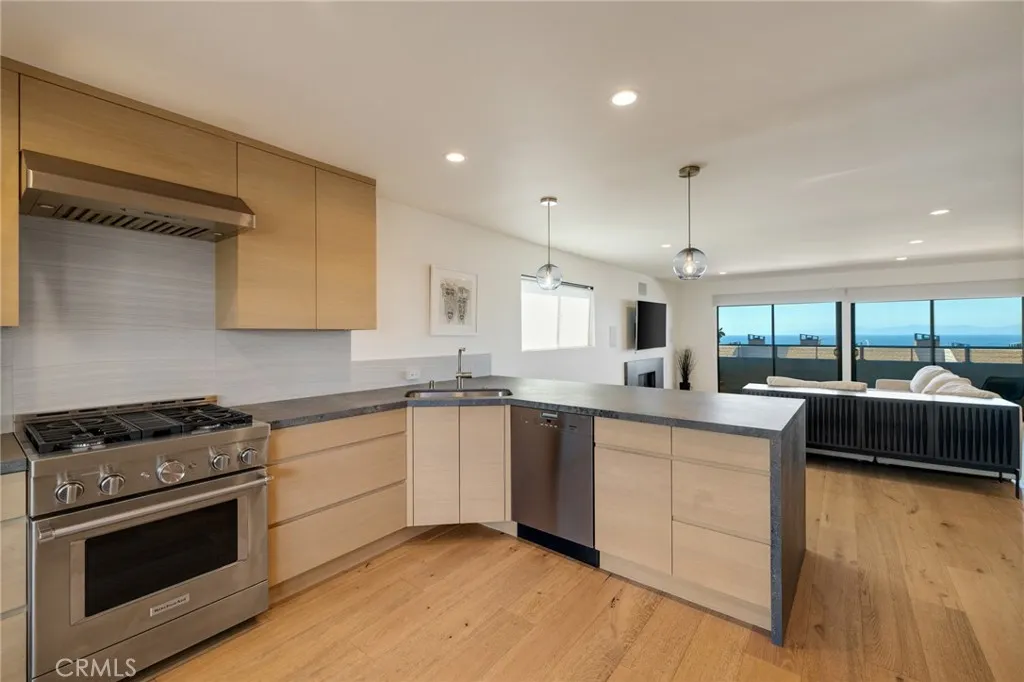 Step into an elevated world of coastal living with this reimagined ocean-view sanctuary, where every detail reflects intentional luxury & design. Perched above the Pacific with sweeping panoramic views, this exceptional residence underwent a transformative renovation, seamlessly blending timeless sophistication with modern sensibility. The effortless flow of space and light welcomes you from the moment you enter, thoughtfully opened to create a serene, airy environment that connects each room to the beauty beyond. Italian white oak hardwood floors run throughout, grounding the home in warmth, elegance, and continuity. At the heart of the home, a chef’s kitchen designed to inspire showcases custom cabinetry with a white oak exterior & birch interior, defined by sleek slab doors and a seamless, handle-free design, & is appointed with premier appliances including a Signature French Door Column Refrigerator, Samsung Chef Collection Smart Gas Range, Zypher hood, & a refined Miele full console dishwasher. An extra-deep stainless steel trough sink & artisan-crafted cabinetry bring both function & elevated style, making every culinary moment feel curated. Discreetly integrated within the home, high-end electronics & a full surround sound system deliver immersive entertainment while preserving the clean, uncluttered aesthetic. The living room is anchored by a sophisticated electric fireplace, creating a warm and inviting focal point for intimate evenings and effortless entertaining, while the dining nook offers a touch of vintage allure with a custom red leather booth that feels both intimate and iconic. The main living level is complemented by a striking powder room featuring a zebrawood vanity, continuing the home’s commitment to distinctive, design-forward details. Upstairs, the primary suite serves as a tranquil retreat with breathtaking ocean views and a spa-inspired ambiance, with a double shower, premium fixtures, and custom bamboo vanities that elevate daily rituals. Secondary bedrooms are thoughtfully positioned along the hall and are served by a beautifully appointed full bath featuring a modern soaking tub and designer tile. On the lower level, a versatile bonus room with lofted dimensions opens to additional outdoor space, with a convenient laundry closet. Moments from the sand & the charm of Riviera Village, enjoy a highly walkable lifestyle with boutique shops, a beloved farmers market, & vibrant dining experiences right outside your door.