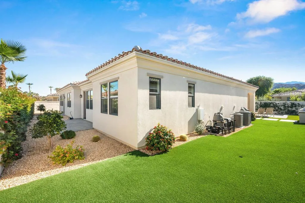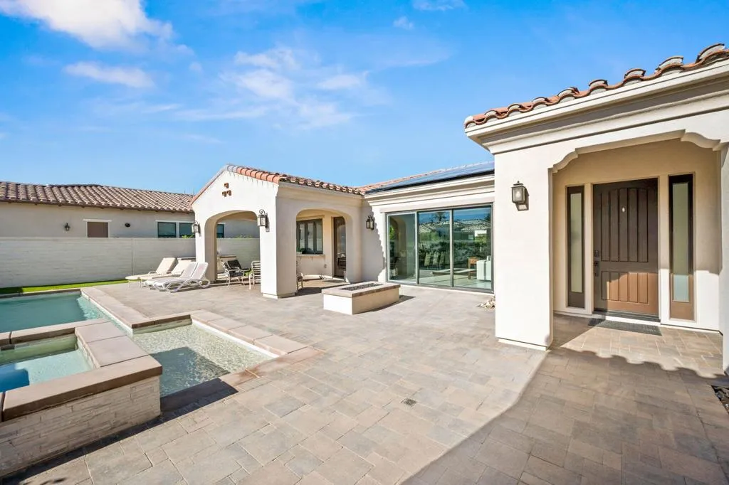 **Welcome to The Province**, an exclusive gated enclave in the heart of Indian Wells, where modern desert living is elevated to its finest expression. This stunning **3-bedroom, 4-bathroom residence** showcases sophisticated design, premium finishes, and thoughtful craftsmanship throughout.Step inside to a **spacious open-concept floor plan** designed for effortless entertaining. The expansive great room flows seamlessly into the dining and living areas, enhanced by a stylish **wet bar with direct outdoor access**, creating a true indoor-outdoor lifestyle.The **gourmet kitchen** is a showpiece, featuring quartz countertops with designer tile backsplash, an oversized quartz island accented by custom pendant lighting, abundant cabinetry, and premium stainless steel appliances--including a **Wolf six-burner range, Sub-Zero refrigerator, Wine Cooler, Cove dishwashers**, walk-in pantry, and under-cabinet lighting--perfect for both the culinary enthusiast and the entertainer.The **primary suite** offers a private sanctuary with direct outdoor access, generous custom cabinetry, and a spa-inspired bath complete with a quartz double vanity, smart bidet, expansive tiled shower, and a luxurious soaking tub designed for ultimate relaxation. A custom-designed walk-in closet adds both elegance and functionality.An additional **flex room ** provides versatility for a home office, media room, or den. Two beautifully appointed guest bedrooms each feature their own full bathrooms, offering comfort and privacy for family and guests alike.Professionally decorated with a modern, refined aesthetic, the home reflects exceptional pride of ownership throughout.Outside, your **private south-facing desert oasis** awaits. Enjoy year-round sunshine with a sparkling **saltwater pool and spa**, cascading waterfall, fire pit, and **breathtaking mountain views**. A custom built-in BBQ creates the perfect setting for alfresco dining and entertaining under the stars.Additional upgrades include **owned solar panels, custom tile flooring, tankless water heater, dual-zone HVAC**, and an oversized garage with extensive storage.This exceptional residence offers the very best of **luxury desert living** with incredible south views of the mountains. As an Indian Wells resident, enjoy exclusive discounts on world-class golf and dining.A must-see opportunity in one of the desert's most coveted communities.