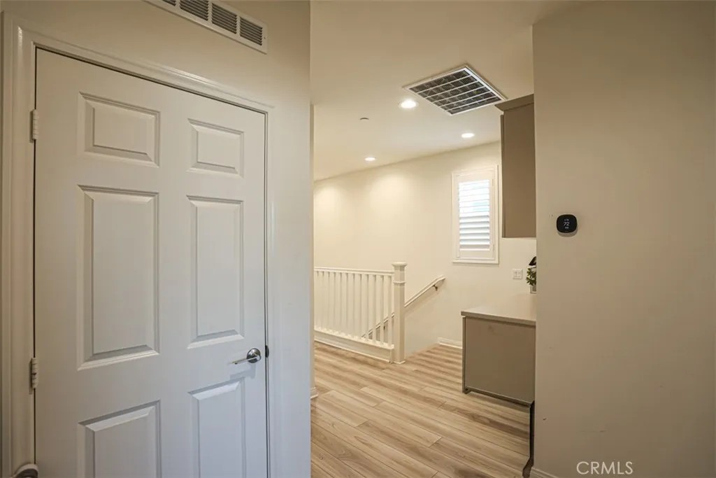 Welcome to the Modern 3-Story detached in The Row Homes at Legacy Crossing. The beautiful designed and energy-efficient Modern detached home is located in the most sought area in Santa Ana. This contemporary Three-Story features 4 spacious bedrooms with ONE MASTER BEDROOM downstairs and 3.5 bathrooms which offering a perfect blend of comfort and functionally styles. The extra large (464 Sqft) attached 2 car garage provides direct access and it has some additional storage. The second floor boasted with bright,open-concept layout featuring a spacious living room filled with natural light, high ceiling and elegant floor throughout. The large kitchen complete with quartz countertop, a large center island and ample cabinetry for storage. The private balcony offers a perfect spot for a relaxing. The 3rd floor includes a tranquil primary suite featuring an ensuite with dual sinks, glass-enclosed shower and a walk-in closet. There are two other bedrooms and a full bathroom in the 3rd floor. The sellers spent about $60K to upgrade the house when they purchased it as a brand new. Shutter blinds are installed in all windows. Water softener and EV charger are in garage. This house is just a few minutes from downtown Santa Ana, The Main place, Santa Ana zoo, restaurants, major shopping centers and easy to access to freeways 22, 55 & 5. SOLAR SYSTEM IS PAID OFF which will save a lot of money for electricity. The water leak detection management system will automatically shut off water if it detects it. Full fire sprinkler system was instlalled. This house has it all. IT IS A MUST SEE!!!