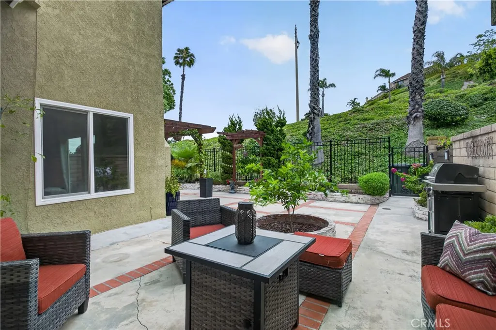 Surrounded by nature - greenbelts, hillsides and hiking trails, and nicely nestled on a quiet cul-de-sac, high in the peaceful hills of Anaheim. Upgraded and Move-in ready. Enter into the formal living room with high ceilings that give that large, open feel. The kitchen opens to the family room and flows nicely to the spacious, low maintenance backyard, ready for indoor/outdoor relaxing & entertaining. Views from the nicely-sized primary bedroom with high ceilings and gorgeous ensuite-bathroom with large walk-in shower. Two nicely sized secondary bedrooms and a spa-like secondary bath complete the upstairs. Attached two-car garage. Newer HVAC. Upgraded windows. HOA covers roofs, exteriors and Insurance on the structure. Kid-friendly cul-de-sac. Highly rated schools. Walking-close to golf, hiking, parks, nature center, saddle club. Close-by shopping, restaurants and entertainment. This area of Anaheim Hills has gorgeous views, lush hillsides, a constant breeze, and rural-feeling of being far away from it all while still being close to so much. A truly wonderful place to live.