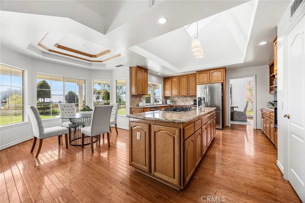 VIEW, VIEW, VIEW! Welcome to this stunning light-filled S & S executive residence showcasing gorgeous city light views and ideally situated within the prestigious East Lake Village Estates community. Just moments from the lake, this exceptional location offers a truly resort-inspired lifestyle in one of the area’s most dynamic and amenity-rich neighborhoods. Proudly offered for the first time ever, this beautifully maintained home exhibits a thoughtfully open design with expansive rooms and walls of windows. A dramatic foyer with soaring ceilings creates an unforgettable first impression and seamlessly connects the formal living and dining areas. The kitchen is designed for those that cook and entertain with huge island bar, tons of storage and countertop space, walk in pantry, eat-in breakfast nook, built in planning desk and completely open to the enormous family room with rich wood beam vaulted ceilings and a striking corner fireplace adorned with stone accents. Skylights and walls of windows flood the space with natural light, seamlessly blending indoor comfort with picturesque outdoor views. A stylish wet bar enhances the space, perfect for entertaining, while a large sliding door invites you to step outside and enjoy effortless indoor-outdoor living. The main level is completed by a large versatile bedroom, currently customized with built-in cabinetry ideal for a home office or guest retreat along with indoor laundry and garaging for 3. Upstairs, the expansive primary suite serves as a private sanctuary, featuring dual walk-in closets and a luxurious, spa-inspired bath with a jetted soaking tub, walk-in shower, and his and her dual vanities with makeup station. Two additional well-sized bedrooms and a full bath with dual vanities complete the upper level. Step outside and unwind under a full length aluminum covered patio that canvases almost the entire back of the house. Entertainment is effortless with a huge pool size grass lawn, lush landscaping, rolling hills, and twinkling city lights providing a breathtaking backdrop for relaxation or enjoyment. Residents of East Lake Village enjoy access to an unparalleled array of resort-style amenities, including sparkling pools, a scenic lake with boating and fishing, walking trails, a clubhouse, fitness center, and a vibrant calendar of year-round community events. Experience the perfect blend of luxury, comfort, and lifestyle. Welcome home to East Lake Village.