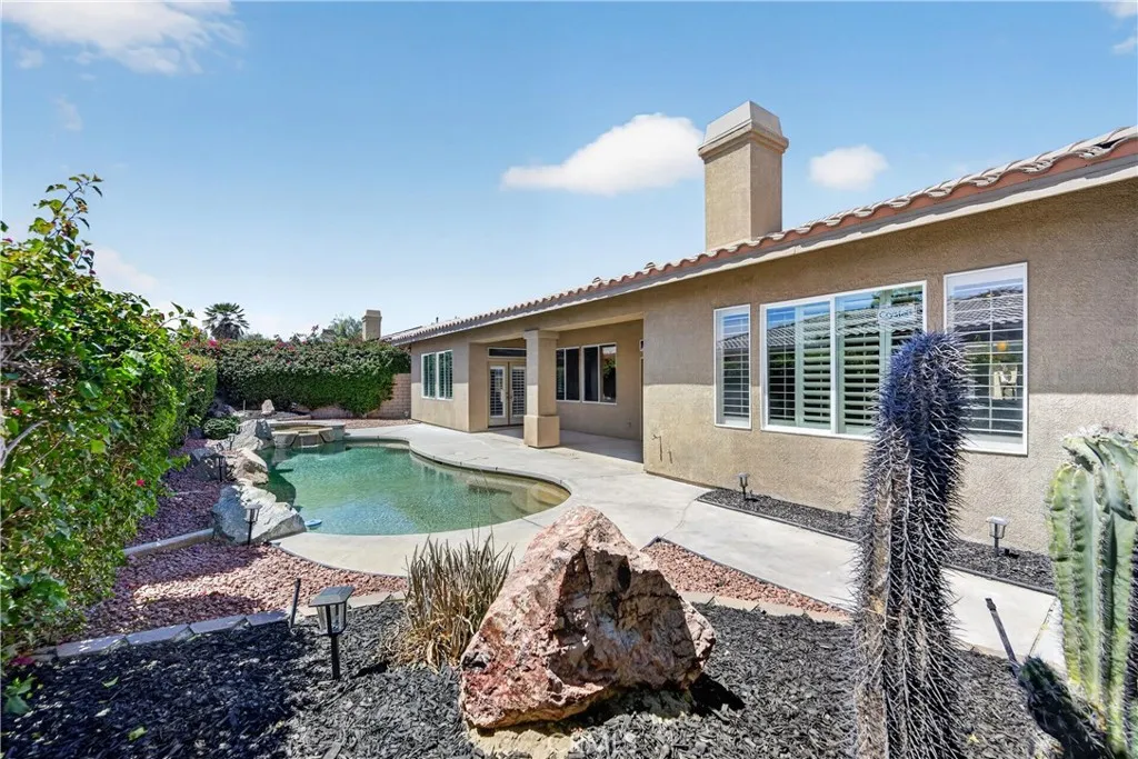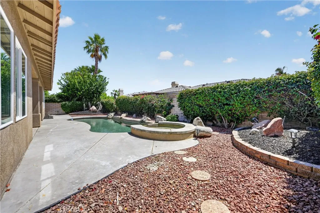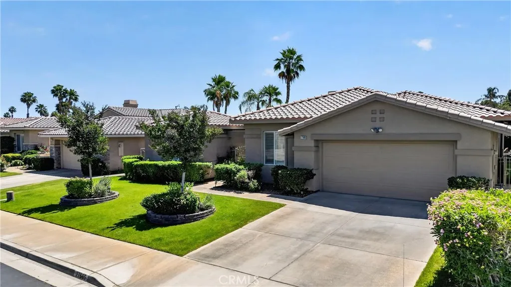Welcome to 77665 Marlowe Ct, a spacious and well-appointed home located in the highly desirable gated community of Whitehawk in Palm Desert. Offering approximately 2,900 sq ft of living space on a generous 10,454 sq ft lot, this 5-bedroom, 3.5-bathroom residence is the largest model in the community perfect for those seeking comfort, functionality, and resort-style living. Step inside to a bright, open-concept layout featuring tile flooring throughout the main living areas, with comfortable carpeting in the bedrooms. The kitchen has been thoughtfully updated with quartz countertops, ample cabinetry in its original finish, and a functional layout that opens to the family room with a cozy fireplace and direct access to the backyard. The spacious living and dining areas provide plenty of room for entertaining, while the primary suite offers a private retreat complete with a spa-like bathroom, soaking tub, separate shower, dual vanities, and a large walk-in closet. Each additional bedroom is generously sized, making this home ideal for families or guests. The backyard is designed for relaxation and enjoyment, featuring a sparkling pool and spa, covered patio, and ample space for outdoor gatherings. The detached casita adds flexibility with its own private entrance, full bathroom, and new carpet flooring perfect for a guest suite, home office, or gym. Located within a secure gated community, with easy convenience to shopping and freeway. residents enjoy low HOA dues that include cable, Wi-Fi, and common area maintenance, along with access to a community park and golf cart access to Woodhaven Country Club. A fantastic opportunity to own one of Whitehawk’s most spacious models with tasteful updates and endless potential in a prime Palm Desert location.