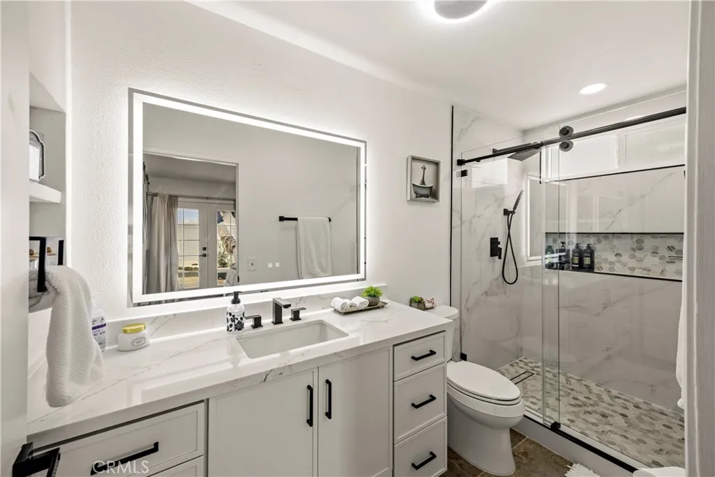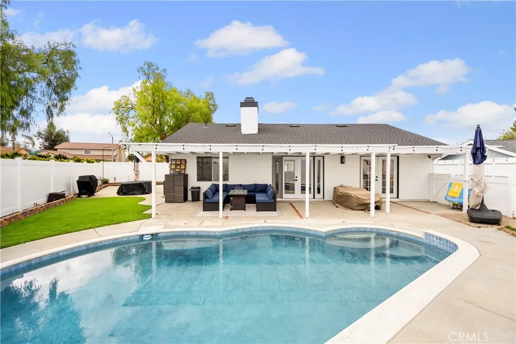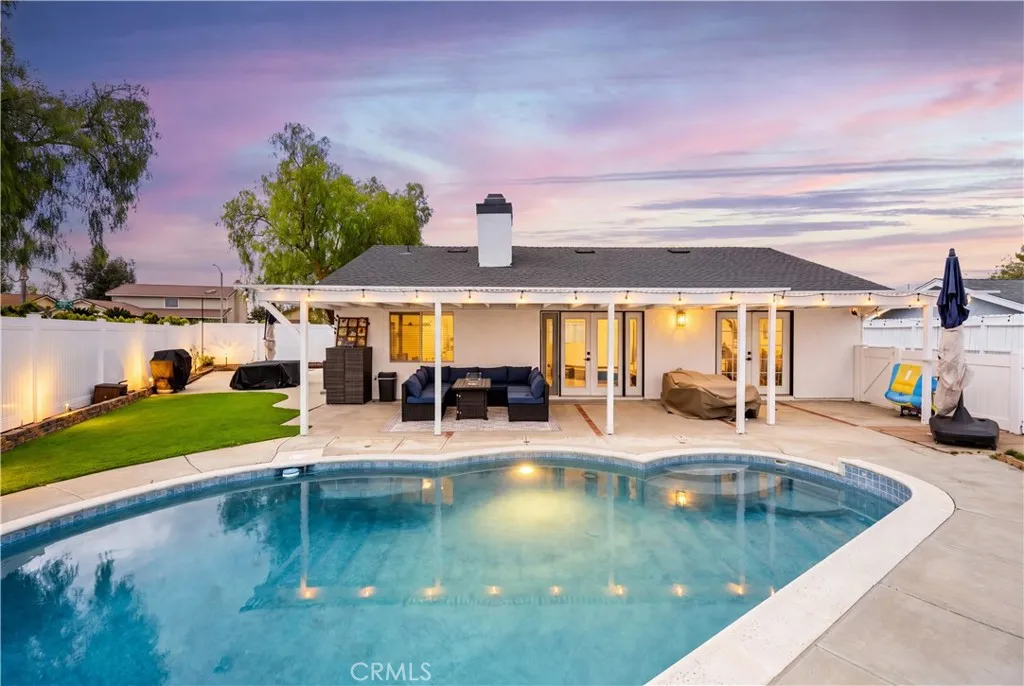 Completely remodeled Temecula pool home on a premium corner lot with RV, trailer, or future expanded parking potential! Welcome to this stunning turnkey single-story residence where modern upgrades, designer finishes, and thoughtful functionality come together in one of Temecula’s most desirable communities. Situated on an expansive corner lot, this beautifully renovated home offers exceptional curb appeal, added privacy, and incredible flexibility for buyers seeking extra parking, recreational vehicle space, or future customization opportunities. Step inside to a bright open-concept floorplan featuring wide-plank flooring, recessed lighting, custom finishes, and an inviting living space centered around a stylish fireplace with oversized picture windows and French doors that seamlessly connect indoor and outdoor living. The fully remodeled chef-inspired kitchen showcases elegant quartz countertops, custom cabinetry, designer hardware, stainless steel appliances, and a sophisticated backsplash, all flowing effortlessly into the dining and entertaining areas. The spacious primary suite is a private retreat with direct backyard access, barn-style closet doors, and a beautifully upgraded spa-like bathroom. Additional bathrooms have also been tastefully remodeled with high-end finishes and custom detail. Outdoors, enjoy your own private backyard oasis complete with a sparkling pool, covered patio, lush landscaping, and ample concrete space for entertaining, relaxing, or creating additional parking for RVs, trailers, toys, or future possibilities. With its modern upgrades, resort-style yard, oversized corner lot, and prime Temecula location near award-winning schools, parks, shopping, dining, and Temecula’s renowned wine country, this home truly checks every box. Rarely does a fully renovated, move-in-ready pool home with this level of versatility become available.