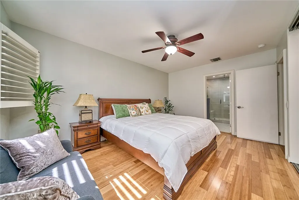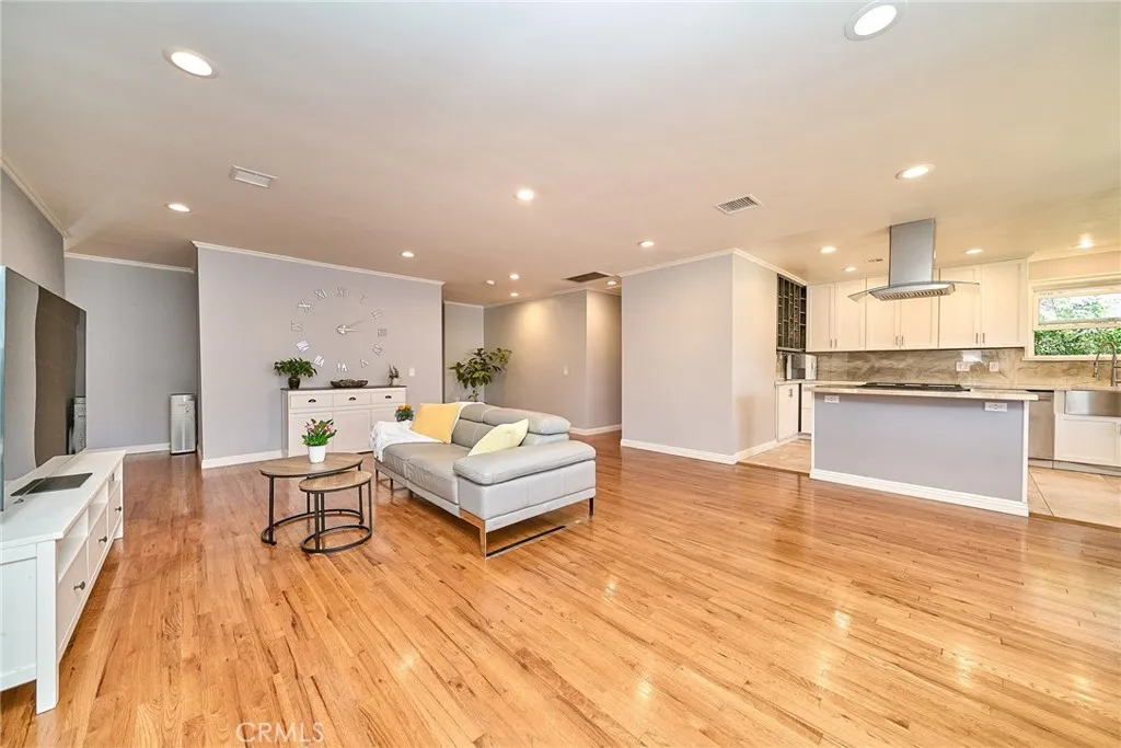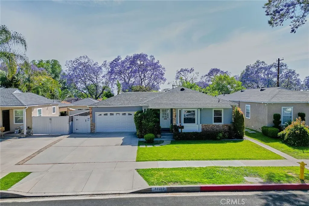 Experience the California dream in this beautiful 4-bedroom, 3-bath residence, set in a prestigious, peaceful neighborhood known for its friendly community and tree-lined streets. This home showcases a bright open floor plan with effortless flow between the living, dining, and kitchen and to the bedrooms. Elegant features include hardwood flooring, recessed lighting throughout, and a stylish chef’s kitchen complete with deep drawers, self-closing cabinetry, a farmhouse sink, and a generous island with a built-in range and suspended hood. Two bedrooms offer en-suite baths, providing both comfort and privacy. Additional improvements include copper plumbing, dual-pane windows, central heat and A/C, and a garage with 240V EV charging capability. A split-level design leads down to two bedrooms with backyard access, while windows frame serene views of the lush, beautifully landscaped yard. The backyard is a private retreat, with charming details, manicured hardscape, and an atmosphere of calm and relaxation. Further highlights include tall closets, remote-controlled lighting throughout the home, and ample parking in front of the garage. Surrounded by mature flowering trees and rich greenery, the home offers a rare and picturesque setting. Conveniently located just 5 minutes from the markets, this is a special opportunity to enjoy beauty, comfort, and everyday convenience in one exceptional home.