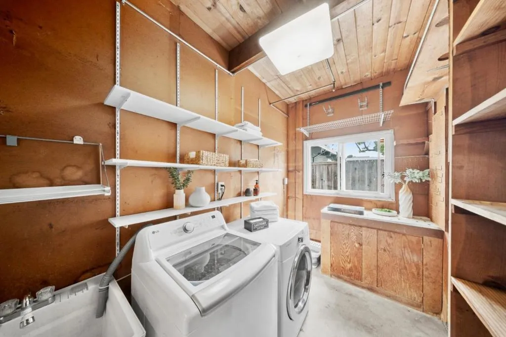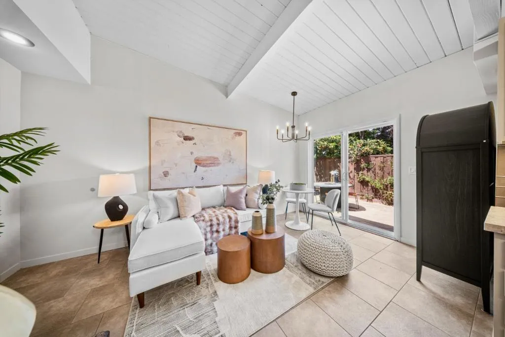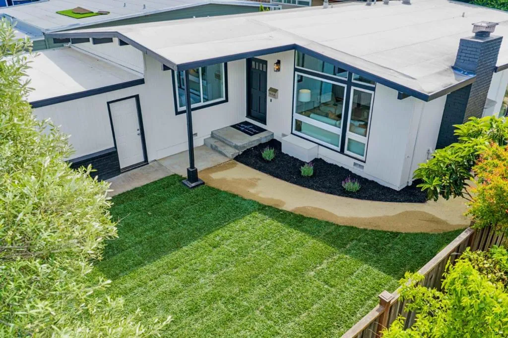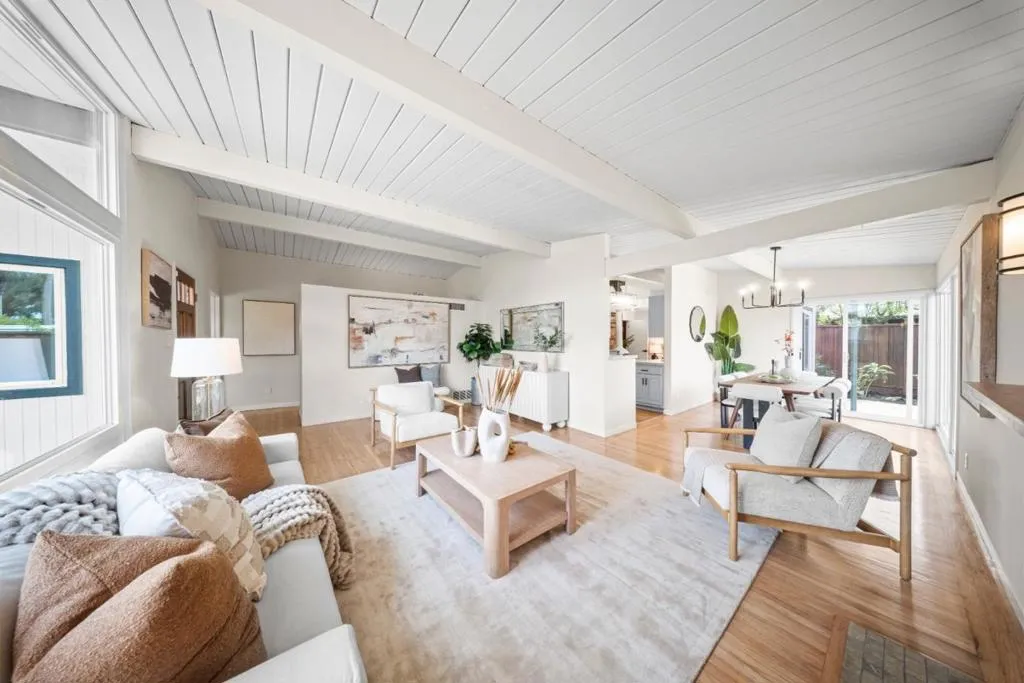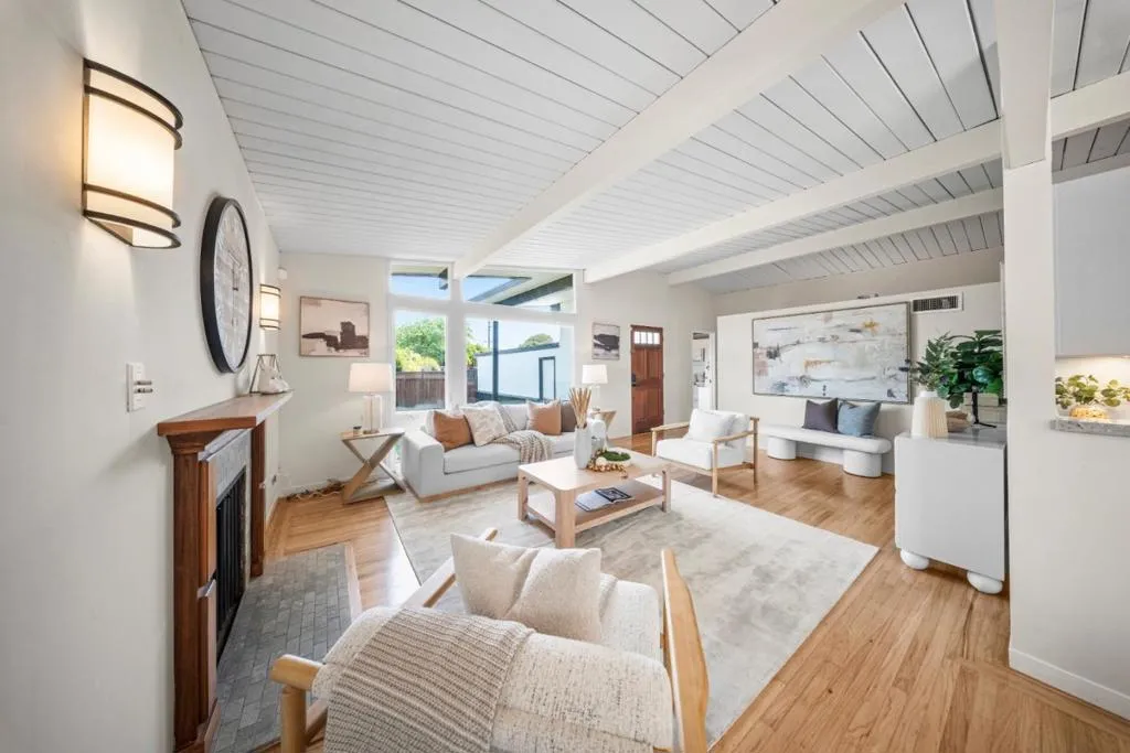 Eichler-inspired mid-century modern home in one of San Mateo's best-kept secrets, Parkside, with access to bay trails, lagoon, swimming, pickleball, soccer, baseball, golf, restaurants & shopping. This 3BD/2BA, ~1,460 SF residence blends timeless design with modern updates. A large front yard with lawn and olive tree creates an inviting inner sanctuary with clean, low-maintenance curb appeal, while vaulted ceilings and refinished hardwood floors enhance the light-filled, east-facing entry. The expansive living room features a wood-burning fireplace and flows into a dining area that comfortably seats six, with sliding doors opening to the rear patio & yard for seamless indoor-outdoor living. The adjacent chef's kitchen opens to a family room combo and features a gas range, pot filler, and ample workspace, plus a breakfast nook with backyard access. Three bedrooms, a hall bath, and a spacious primary suite offer an updated bath with walk-in shower and dual vanities. Additional highlights include a laundry room with sink, pet-friendly cat door/litter area, and 2-car garage with epoxy flooring. Slated for highly rated Aragon High School*, with easy freeway access, close to Bridgepointe, Parkside Plaza, downtown San Mateo, and centrally located between San Francisco / Silicon Valley.